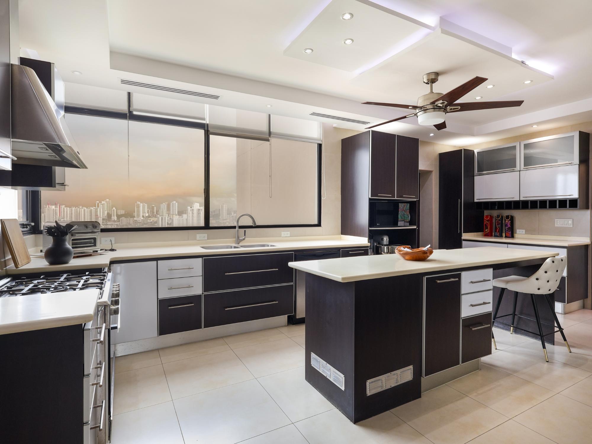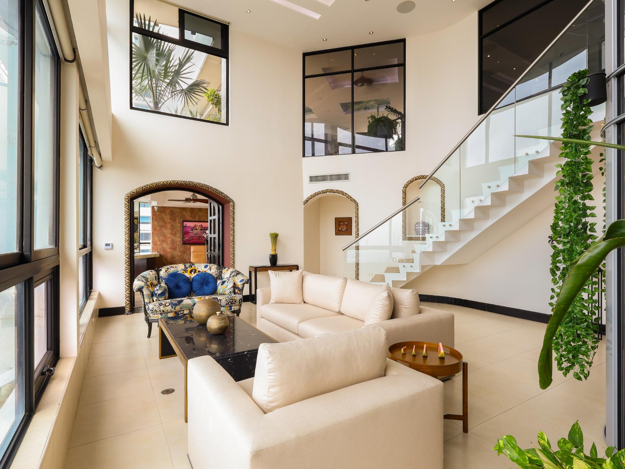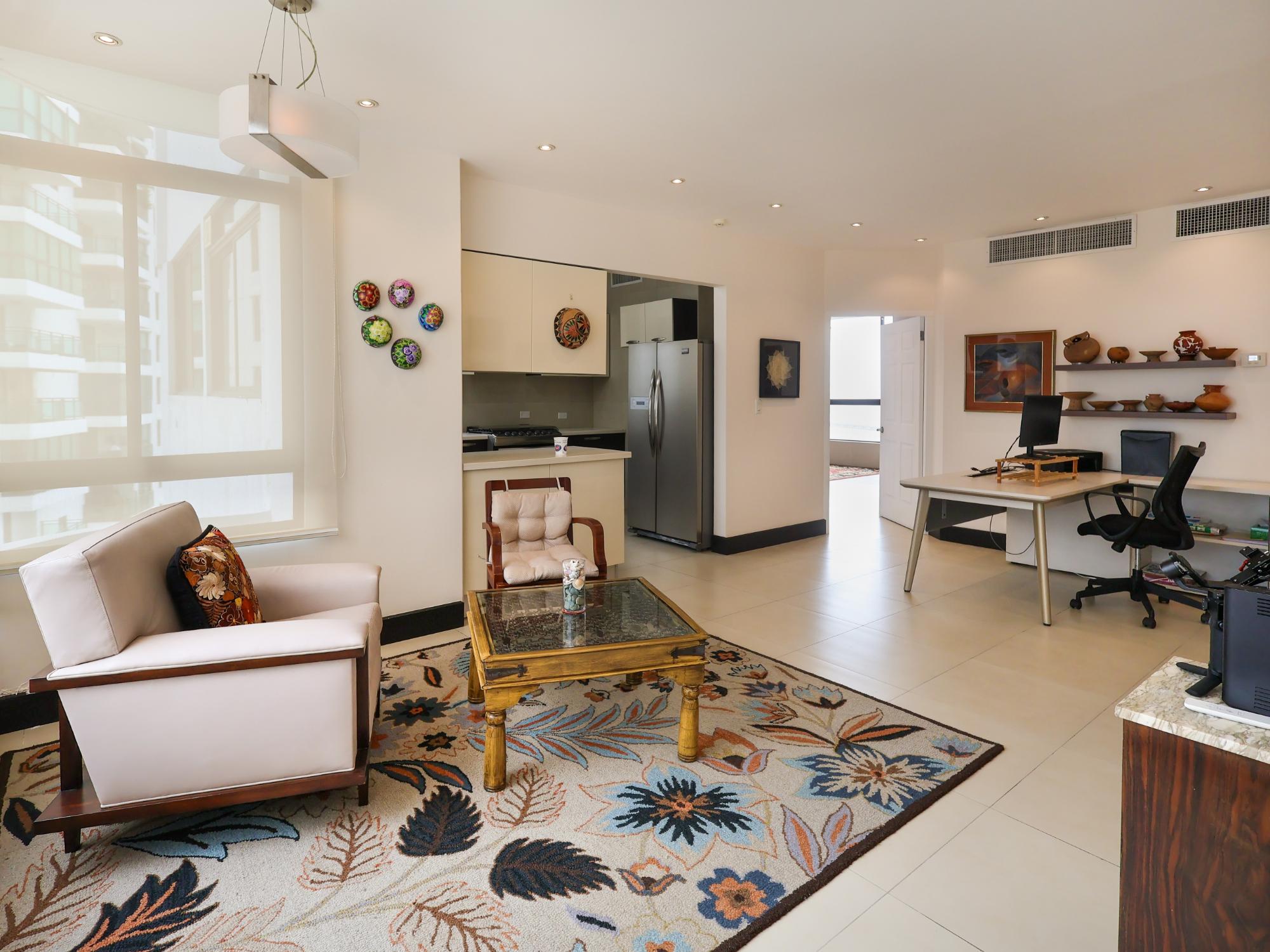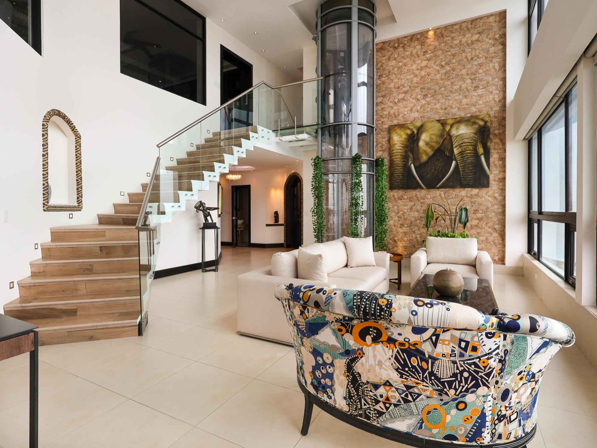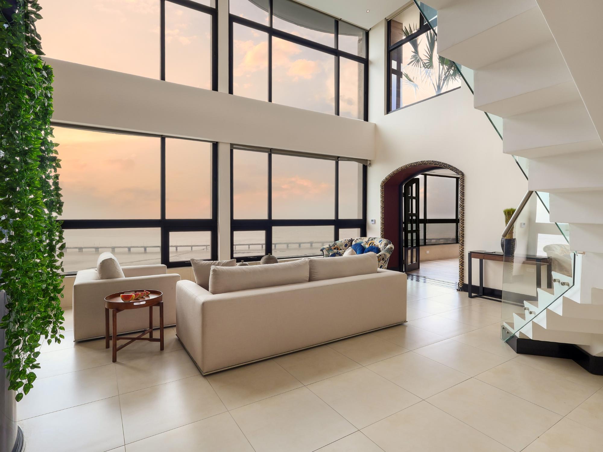 Two-level penthouse with direct ocean views plus a separate apartment on the same floor. Ideal for families with seniors or young children who want their own space without being far away. The penthouse is 398 m² and features 3 bedrooms with en-suite bathrooms, a modern kitchen, a den with a bathroom, a living-dining room with an internal elevator, a terrace with a bar and BBQ, a maid's quarters with bathroom, a laundry room, luxury finishes, private access, 4 parking spaces, and 2 storage units. The separate apartment measures 110.85 m² and includes 1 bedroom with an en-suite bathroom, an open kitchen, a living-dining room, a maid's quarters with bathroom, 2 parking spaces, and 1 storage unit. This apartment can be used for living, renting, as an office, or as a guest room. Located in Coco del Mar, close to everything. A versatile and exclusive property. A once-in-a-lifetime opportunity! Live in the Panamanian sky with the ocean at your feet.