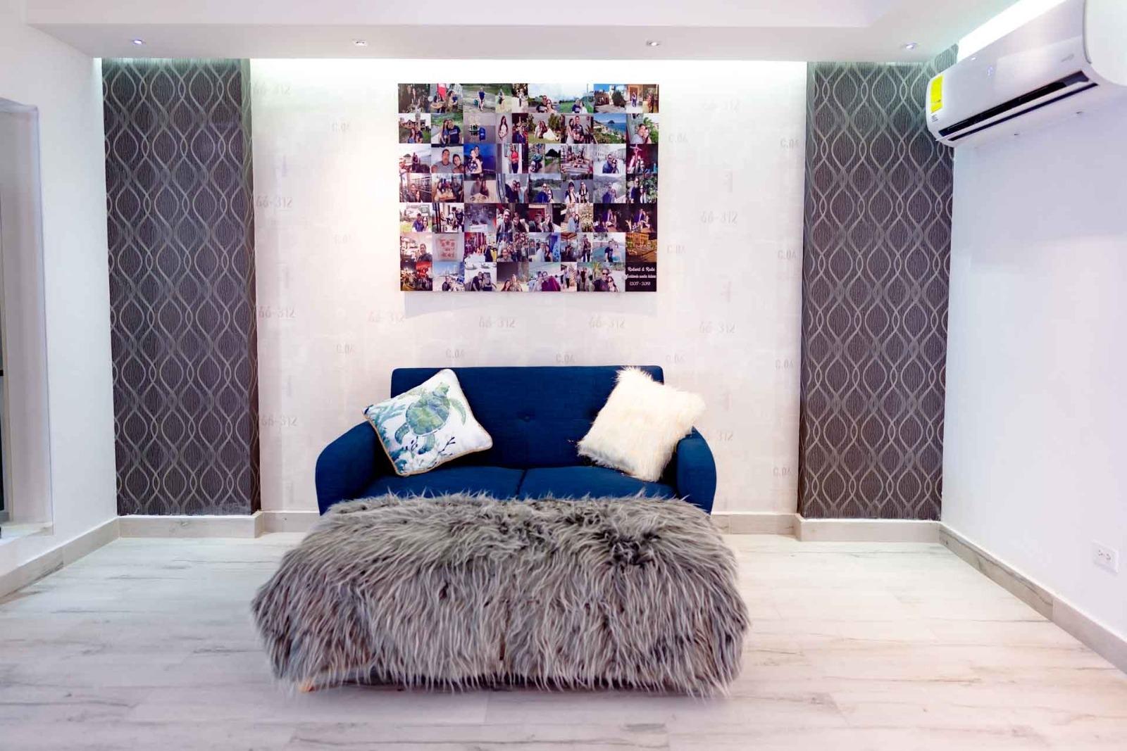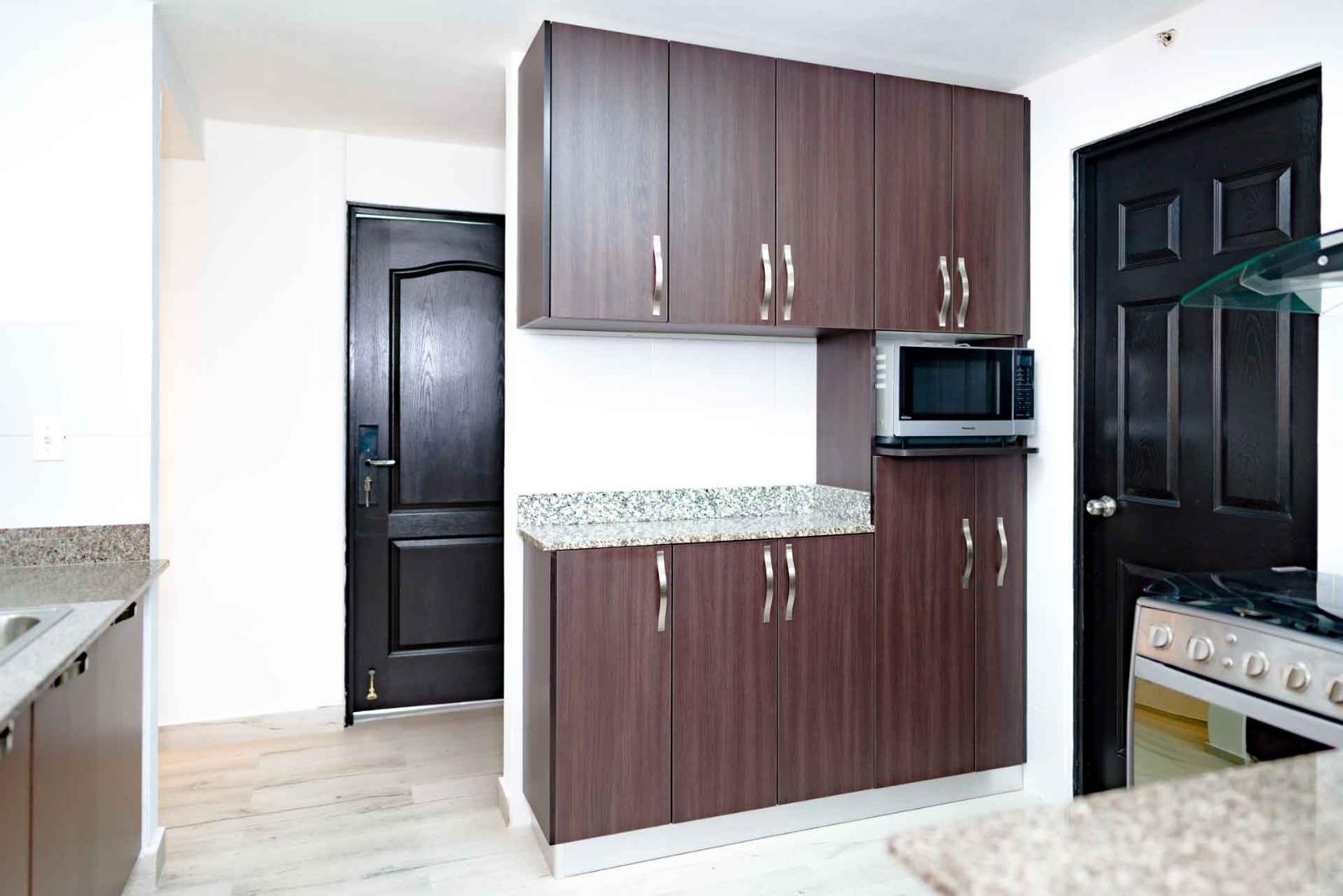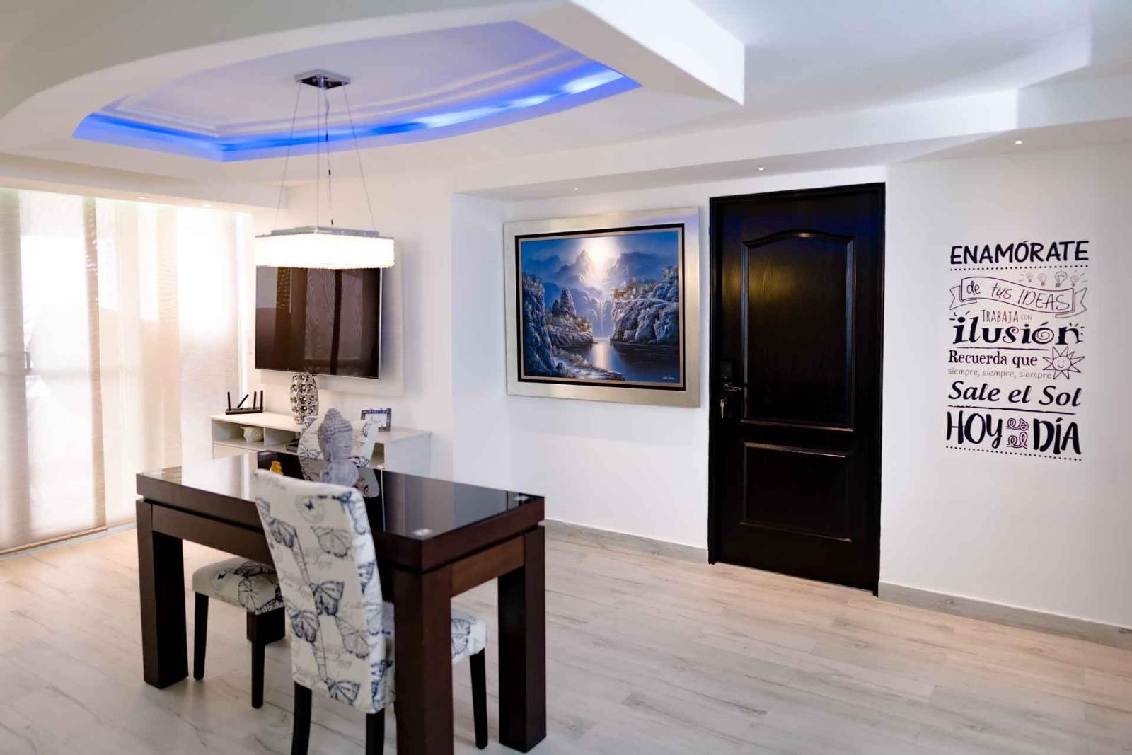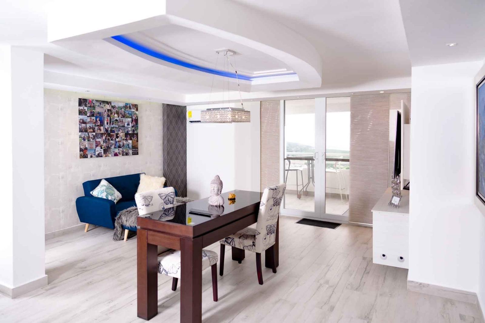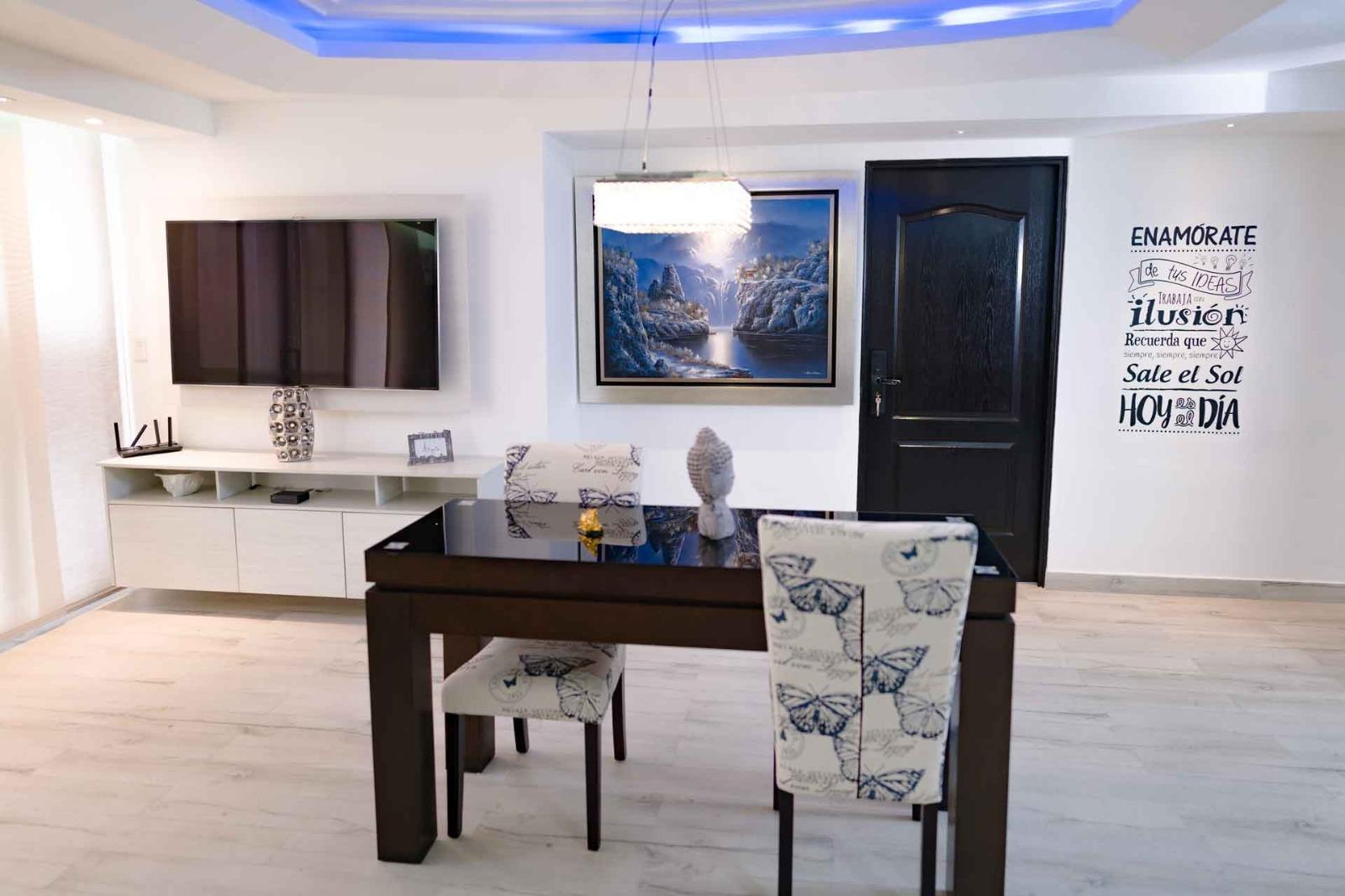 The Penthouse with ocean and city views located on Ernesto T Lefevre has 3 bedrooms, 2 and a half bathrooms, and 2 parking spaces. It has a common area with a pool, party room, and a gym. With finishes such as a false ceiling with lights, a security door, thermoacoustic windows, a hydromassage shower, and a tempered glass door. Sold with lamps and air conditioners. Close to Omar Park, supermarkets, banks, schools, restaurants, and access to Via España, Coco del Mar, and Costa del Este.