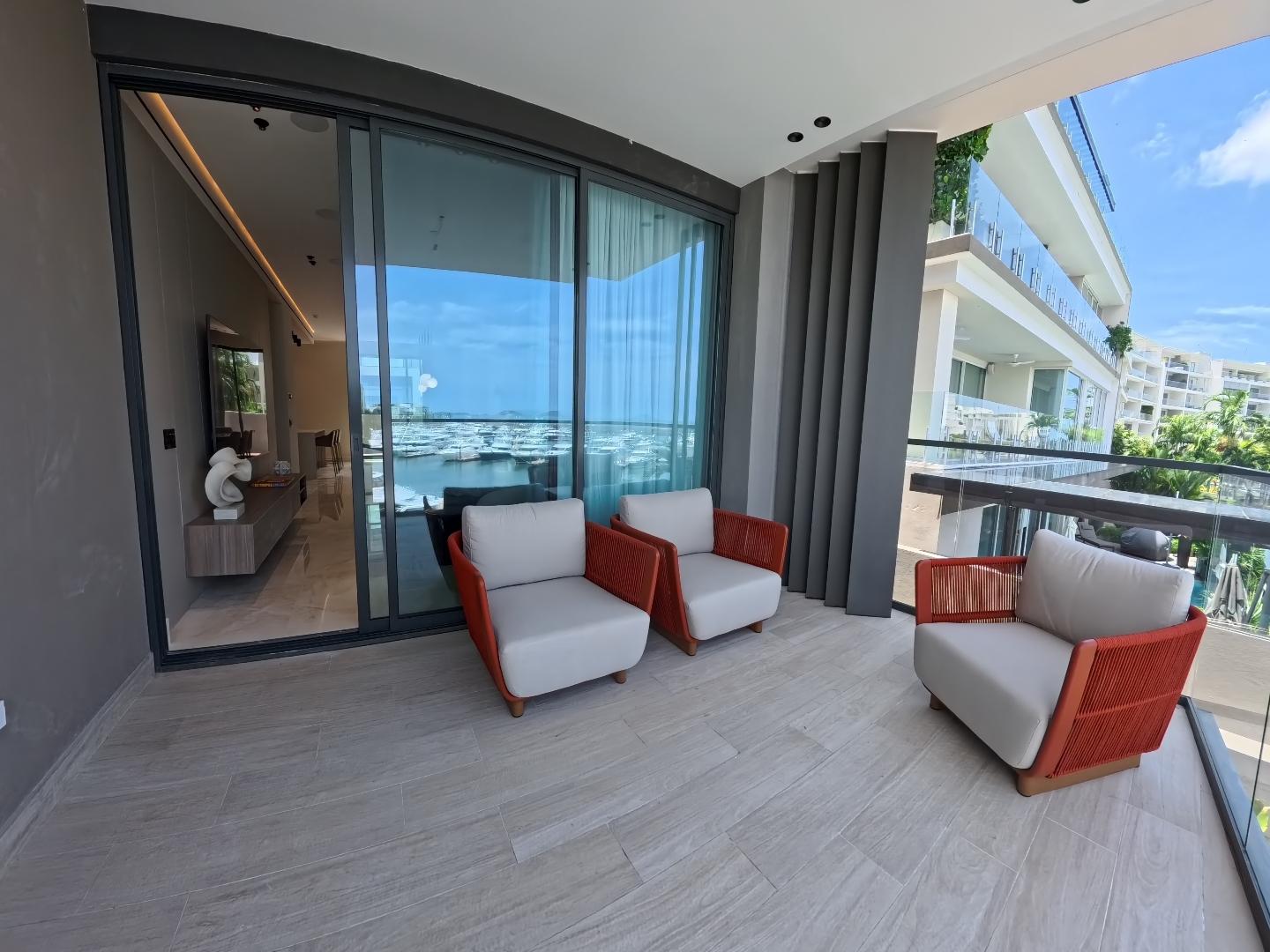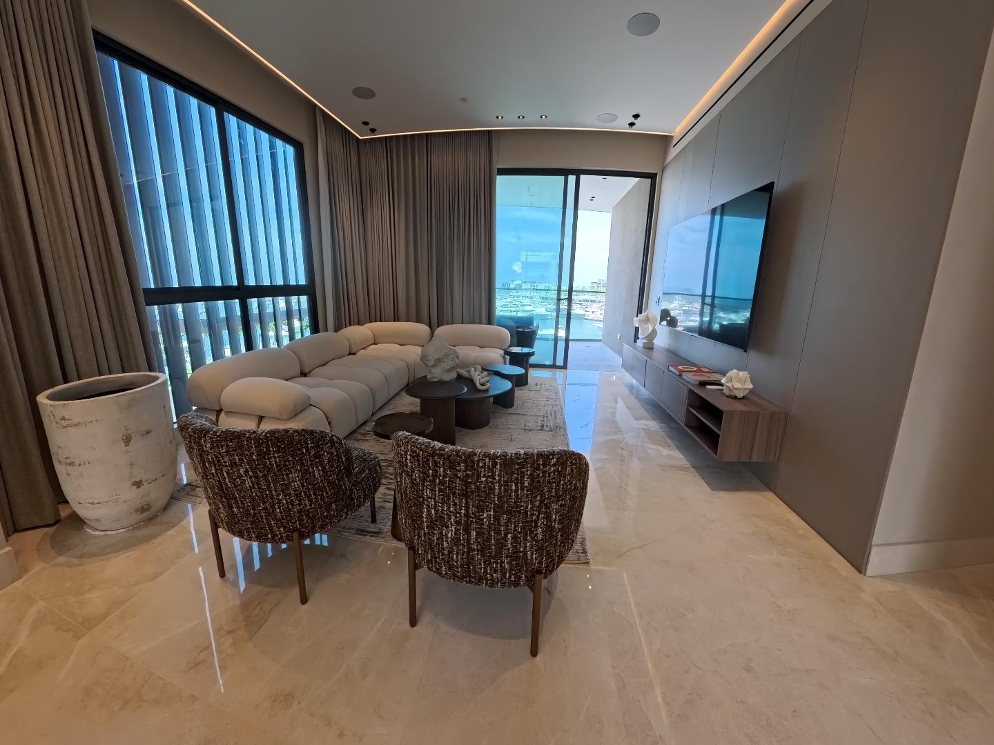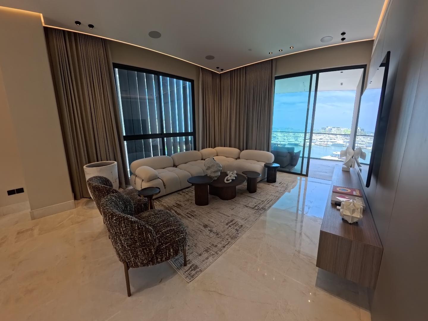 Este apartamento redefine el lujo, ofreciendo una privacidad inigualable, un diseño sofisticado y vistas espectaculares. Y además disfrute del uso de un bote Pursuit 36 (propiedad de PH Casa del Mar) ¡único en Panamá! •Apartamento de 172 m2 •2 recámaras tipo suite, cada una con baño en suite y vestidor. •2.5 baños. •2 estacionamientos •Cocina integrada •Área de lavandería y servicio. •Balcón amplio de 20 m² con vista frente a la marina, Terraza: de42 m² (zona común de uso exclusivo) •Sala de estar y comedor de concepto abierto. •Vistas: Todas las habitaciones, balcón, comedor ofrecen vistas impresionantes a la marina, al océano y al horizonte de la Ciudad de Panamá. •Diseño: George Moreno Partners (diseño arquitectónico) y José Manuel Balza (interiores). •Pisos de mármol y ventanales de piso a techo que maximizan la luz y las vistas. •Hogar Inteligente: Sistema de sonido integrado, cortinas eléctricas automatizadas, iluminación inteligente, aire acondicionado inteligente, tecnología de vanguardia para comodidad y sofisticación. •Apartamento totalmente equipado con mobiliario de lujo, línea blanca y electrodomésticos. AMENIDADES EXCLUSIVAS DE CASA DEL MAR •Acceso Directo a la Marina: Ubicación privilegiada frente a la marina. •Yate Privado a su Disposición: Se incluye el uso de un bote Pursuit 36 (propiedad de Casa del Mar) una vez al mes por apartamento para los residentes, una oferta excepcional y única en Panamá. •Rooftop con Piscina: Salón en la azotea con piscina tipo infinity y vistas espectaculares. •Área de Barbacoa, Bar & lounge, área de yoga, gimnasio, área, salón abierto.