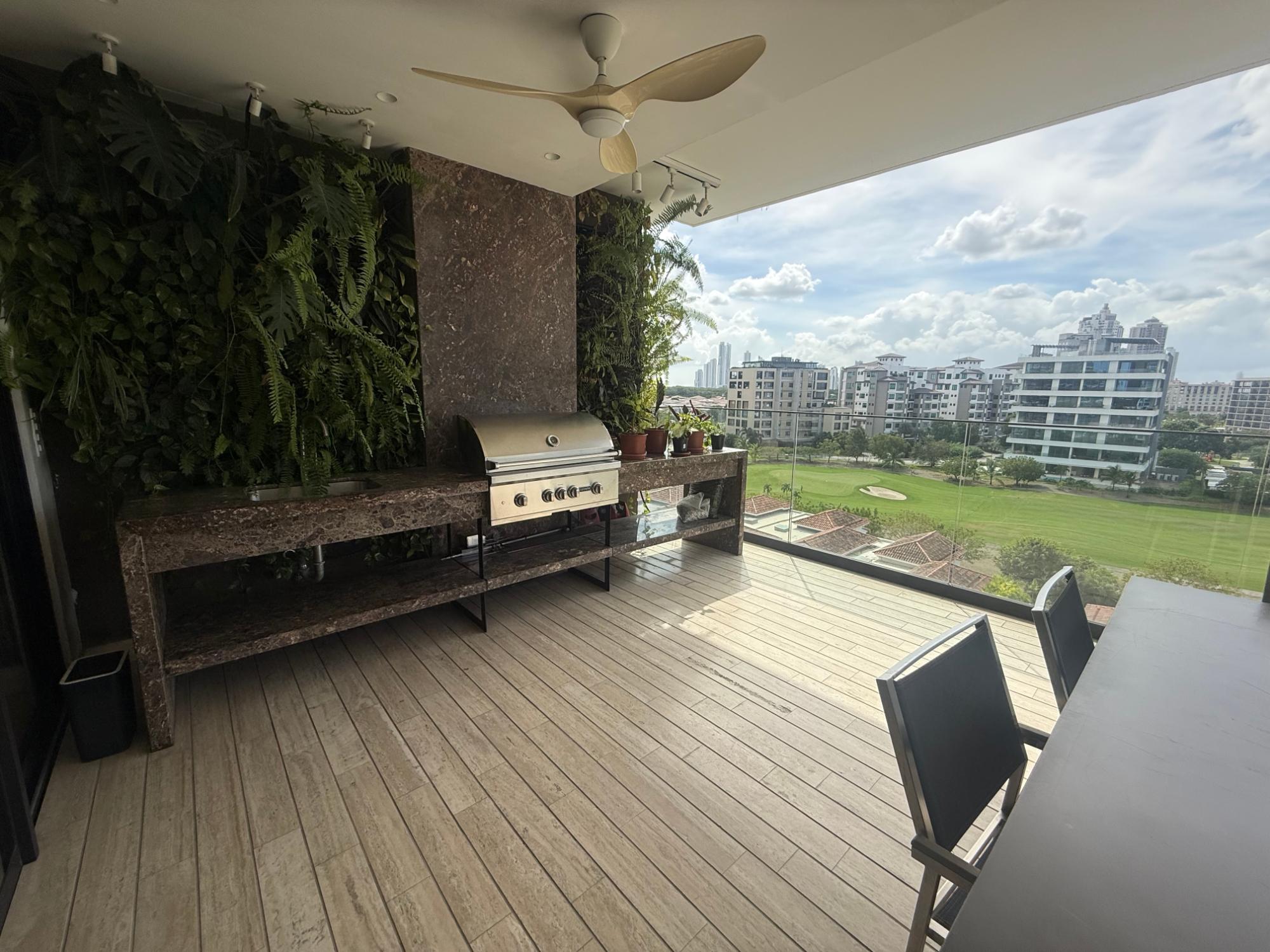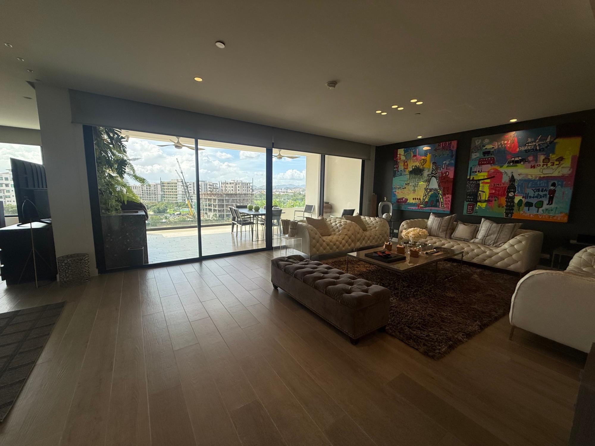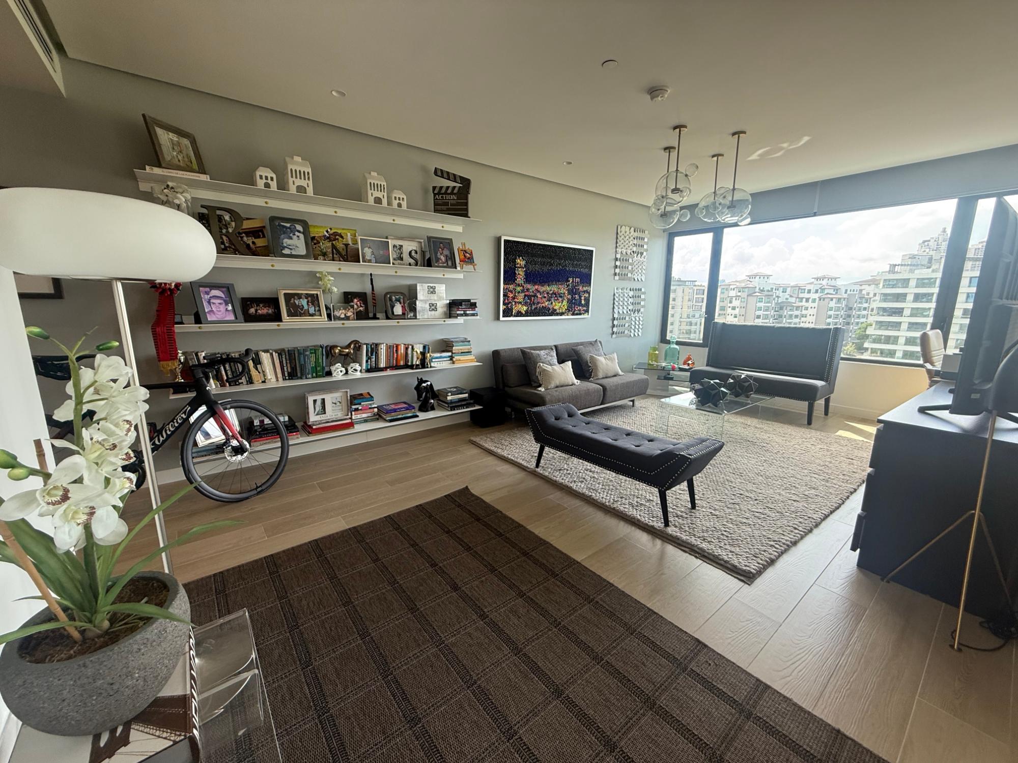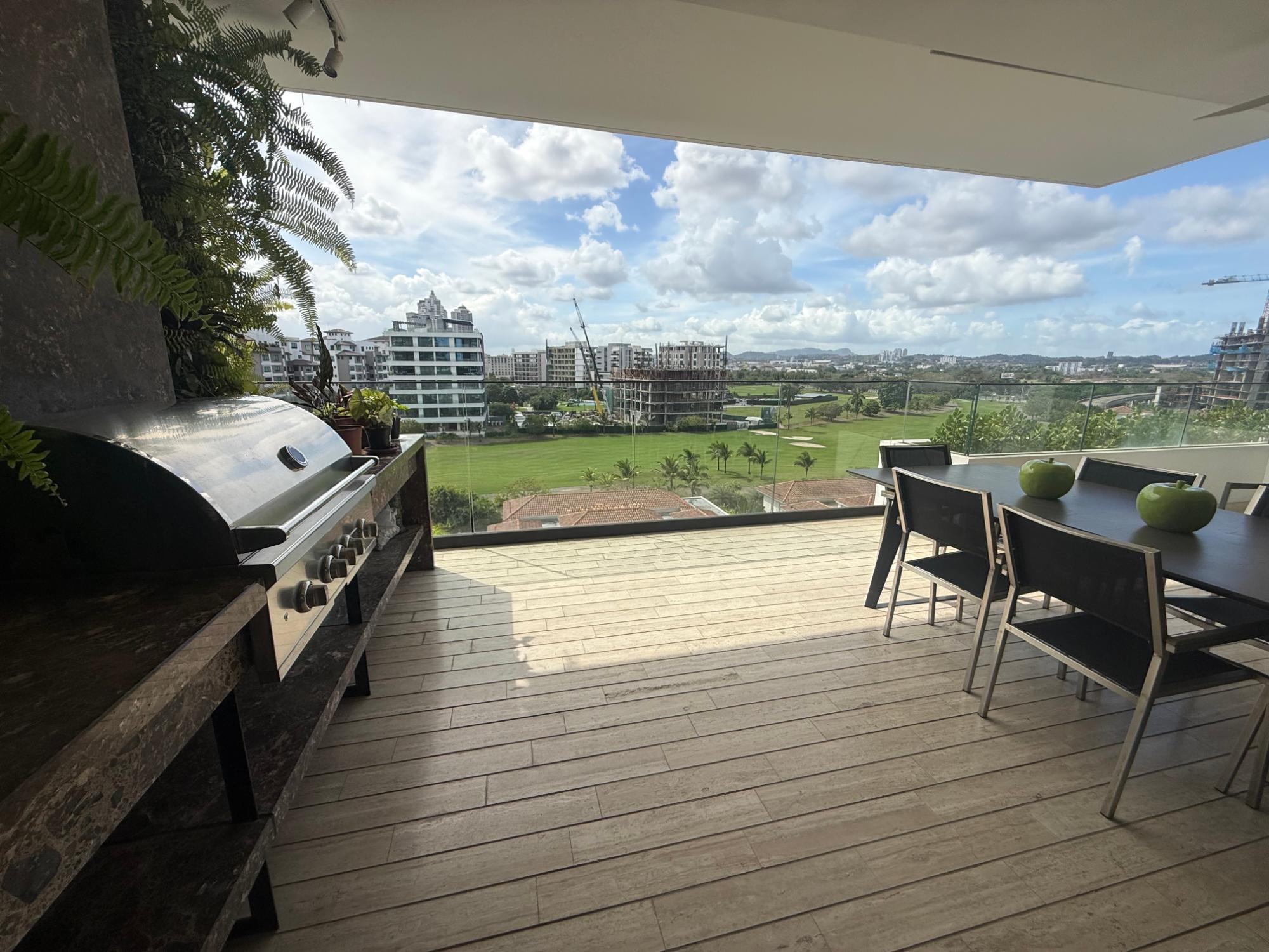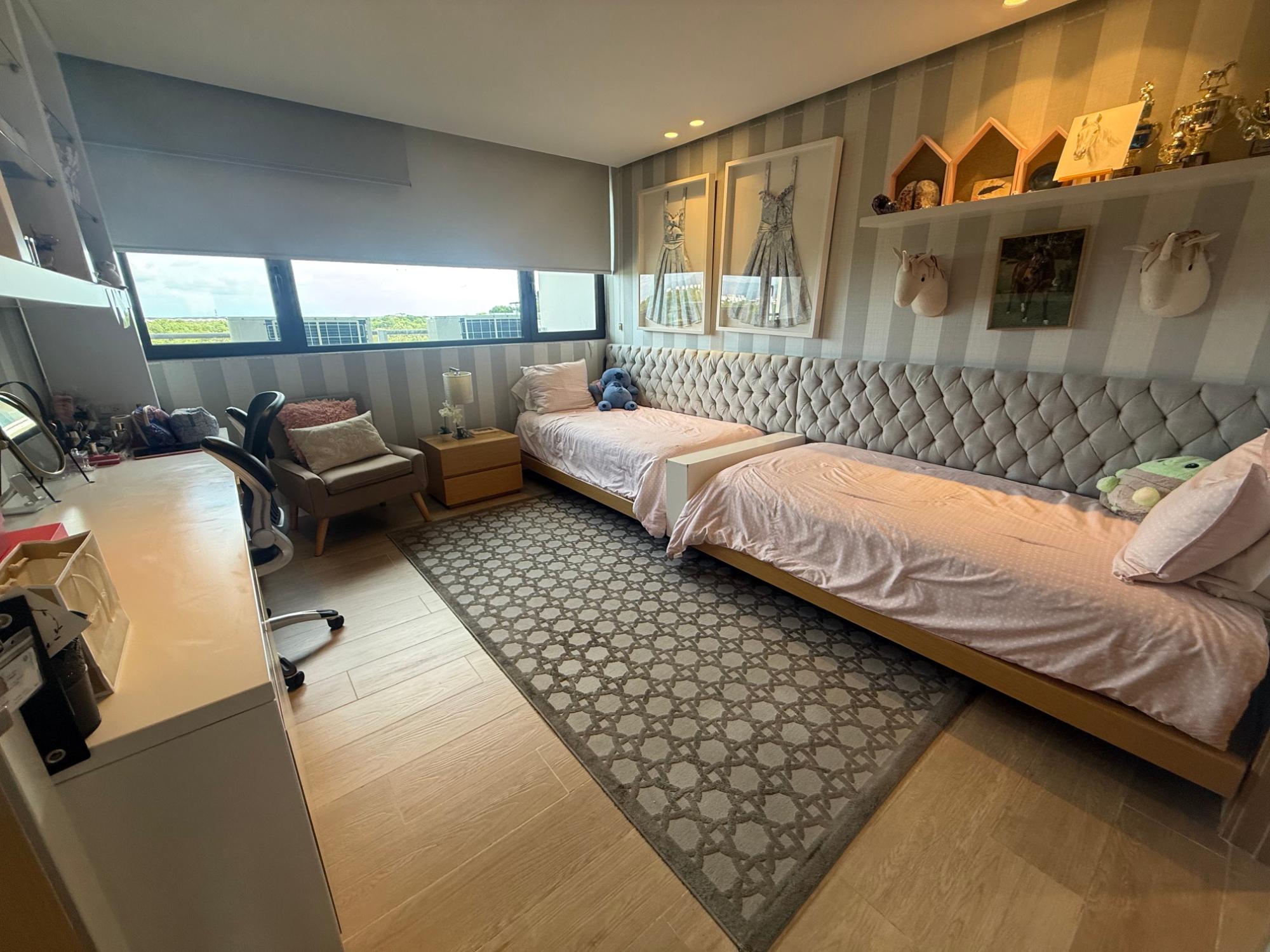 Exclusive apartment in PH Lantana, Crescent Lane Santa Maria, 409.72m2, 4 bedrooms, 4.5 bathrooms, balcony overlooking the golf course, living room, dining room, den, bar, guest bathroom, kitchen with island and breakfast bar, laundry room with service door, maid's quarters and bathroom, storage in the apartment, four (4) parking spaces, one (1) storage unit.