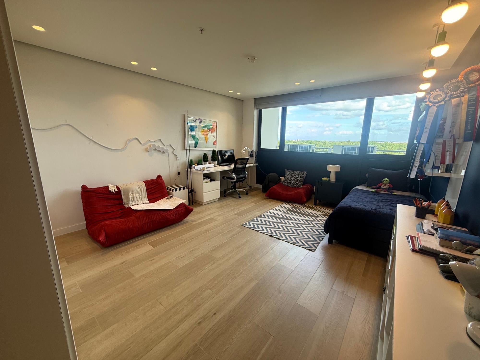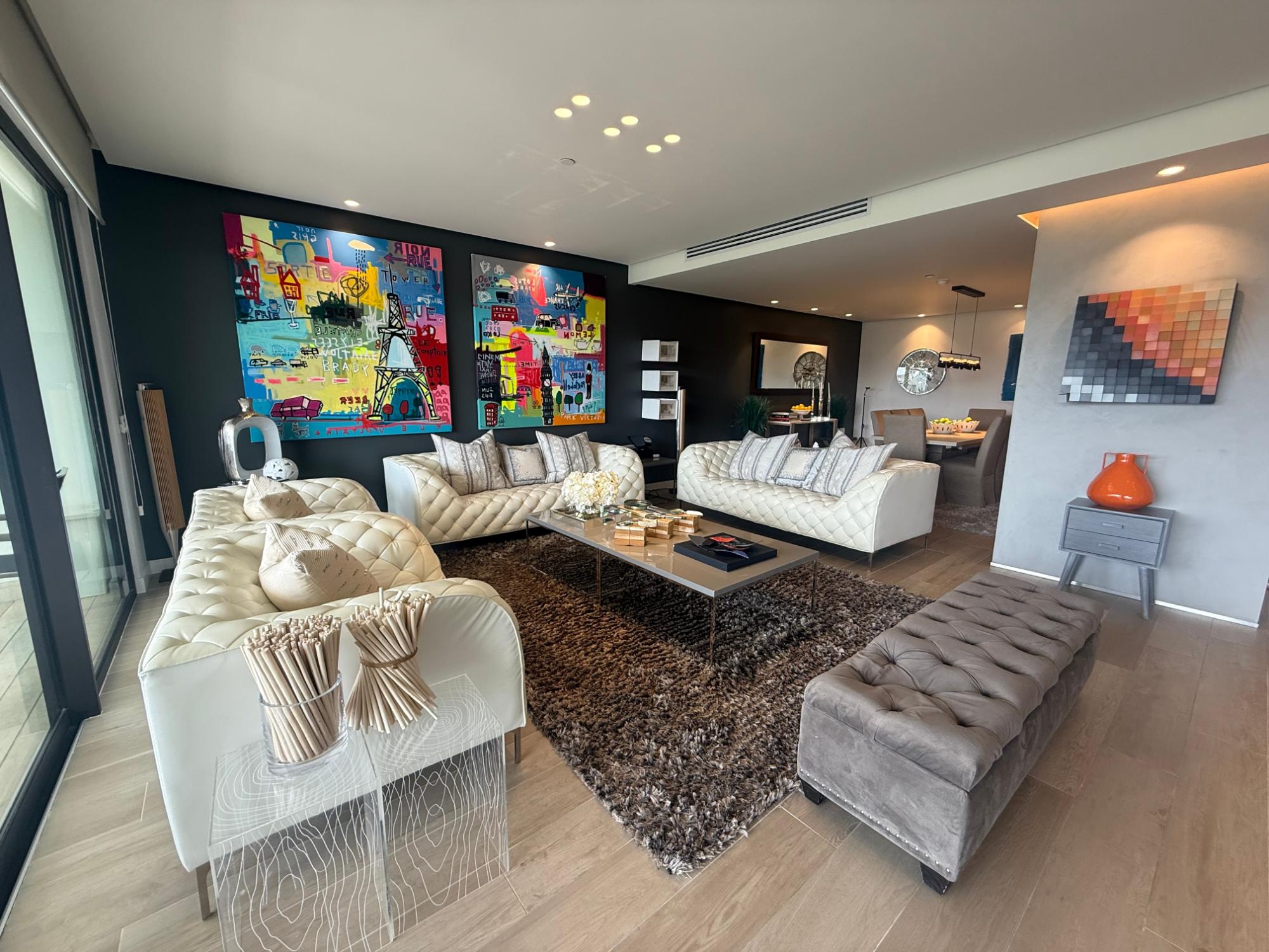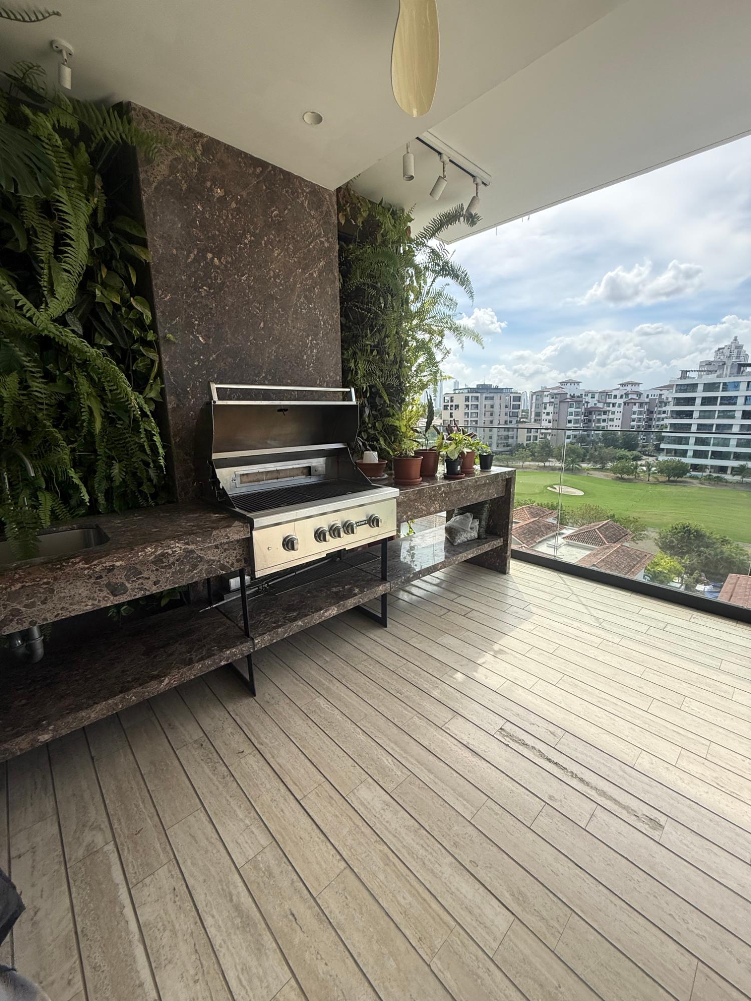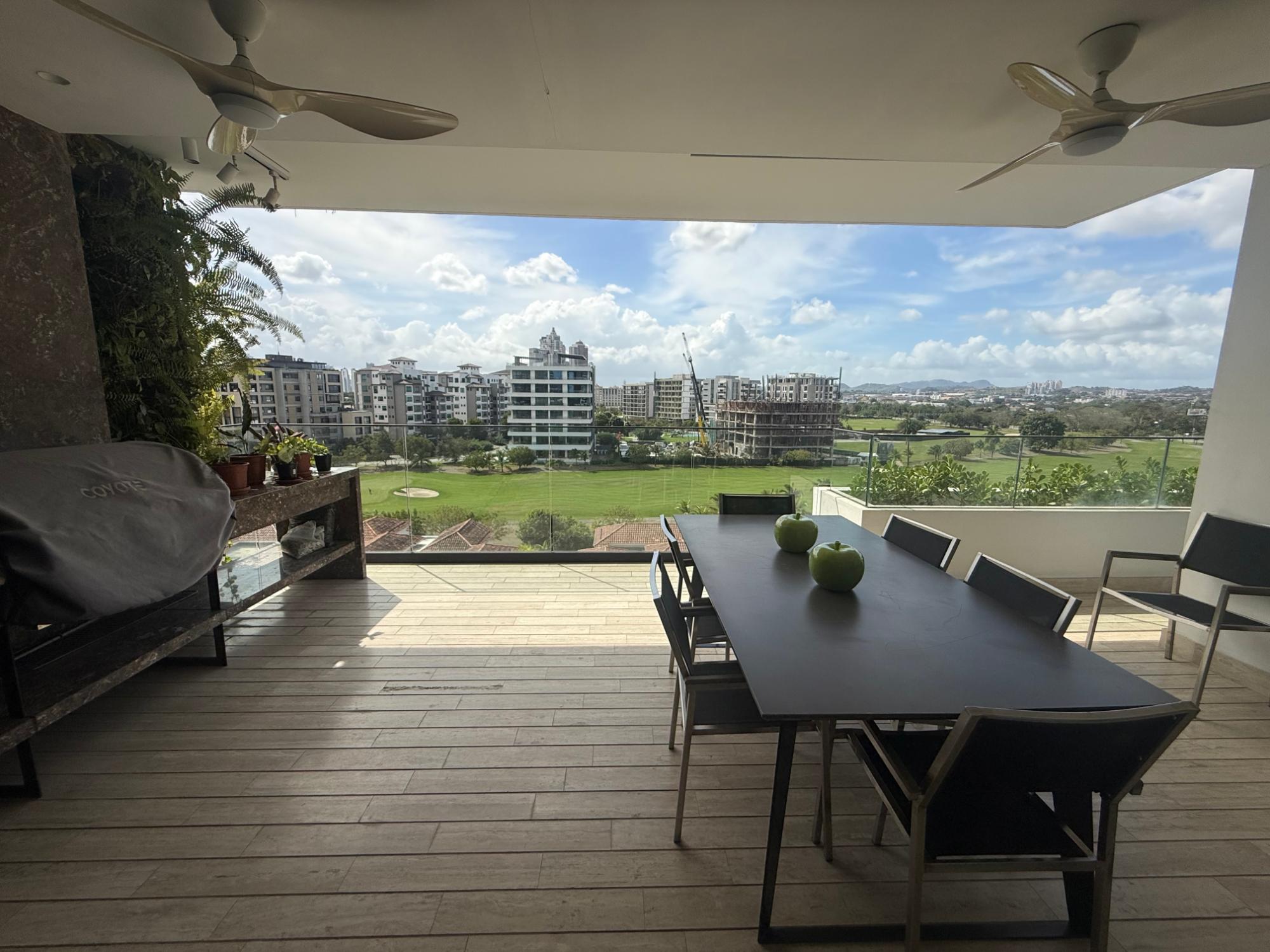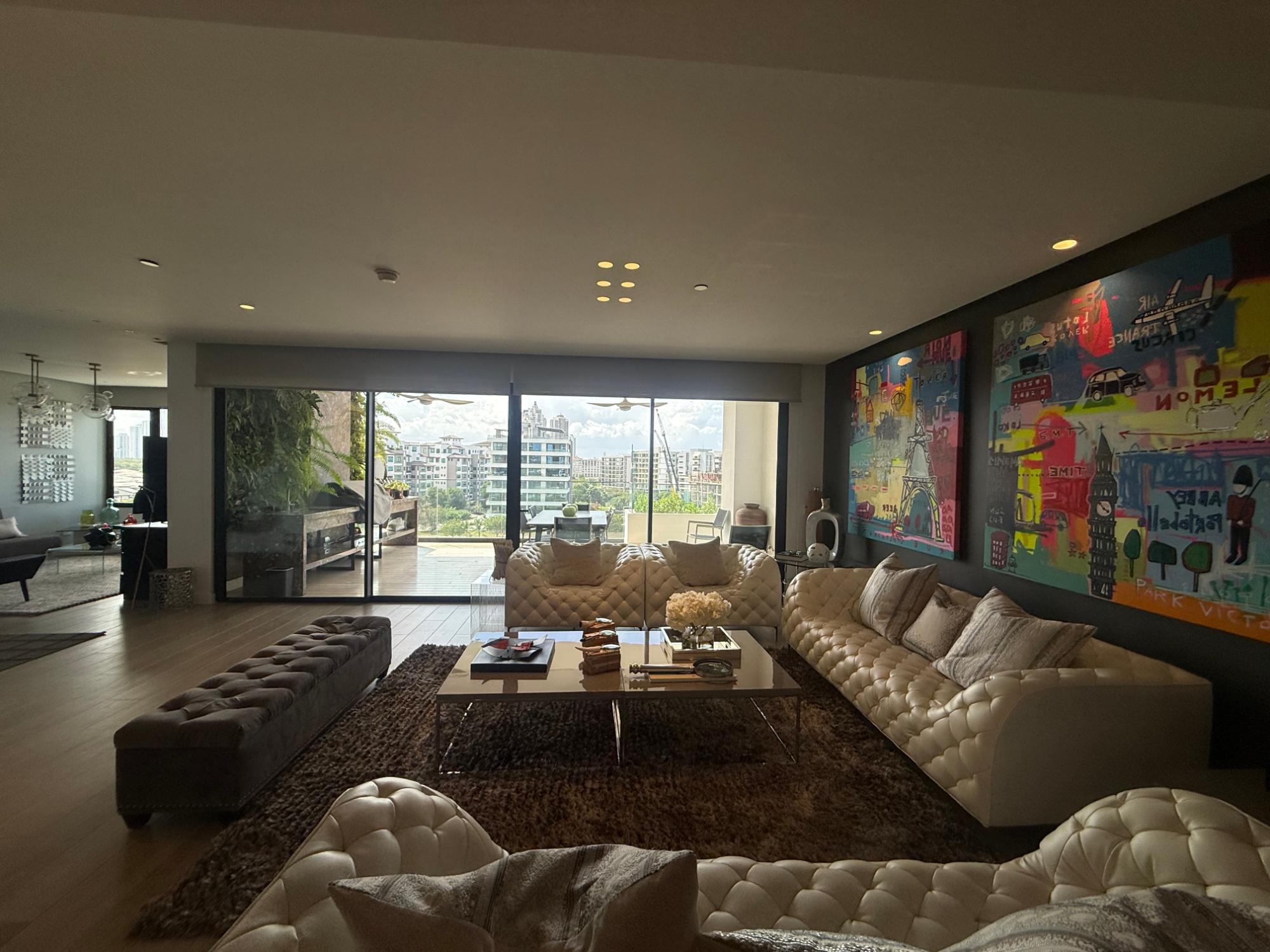 Exclusive apartment in PH Lantana, Crescent Lane Santa Maria, 409.72m2, 4 bedrooms, 4.5 bathrooms, balcony overlooking the golf course, living room, dining room, den, bar, guest bathroom, kitchen with island and breakfast bar, laundry room with service door, maid's quarters and bathroom, storage in the apartment, four (4) parking spaces, one (1) storage unit.