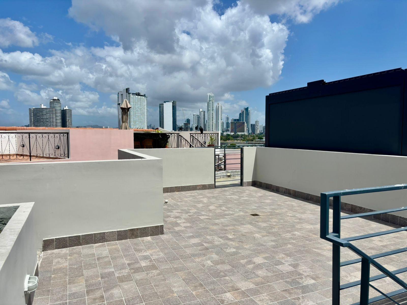Apartment for Rent in PH Plazuela de Alfaro, Casco Antiguo. Live in the historic and cultural heart of Panama's Casco Antiguo, steps from colonial plazas, top-tier restaurants, cafes, art galleries, and a vibrant waterfront urban scene. This exclusive apartment combines the charm of Casco Antiguo with modern amenities, ideal for executives and professionals from multinational companies seeking a unique, secure, and centrally located experience. Apartment Features: 1 bedroom, 1 bathroom, living room, open-plan kitchen with dishwasher, private rooftop terrace with city and ocean views, new appliances, furnished and equipped, inverter air conditioners. Building Amenities: Swimming pool with panoramic city and ocean views, BBQ area, ground floor with cafes, pizzeria, art gallery, and boutique shops. Benefits of Living in Casco Antiguo: Enjoy a walkable lifestyle surrounded by history, heritage architecture, and constant cultural activities. Strategic location with easy access to the financial center, the Cinta Costera (Coastal Strip), and main city thoroughfares, combining tranquility, security, and entertainment in one place.