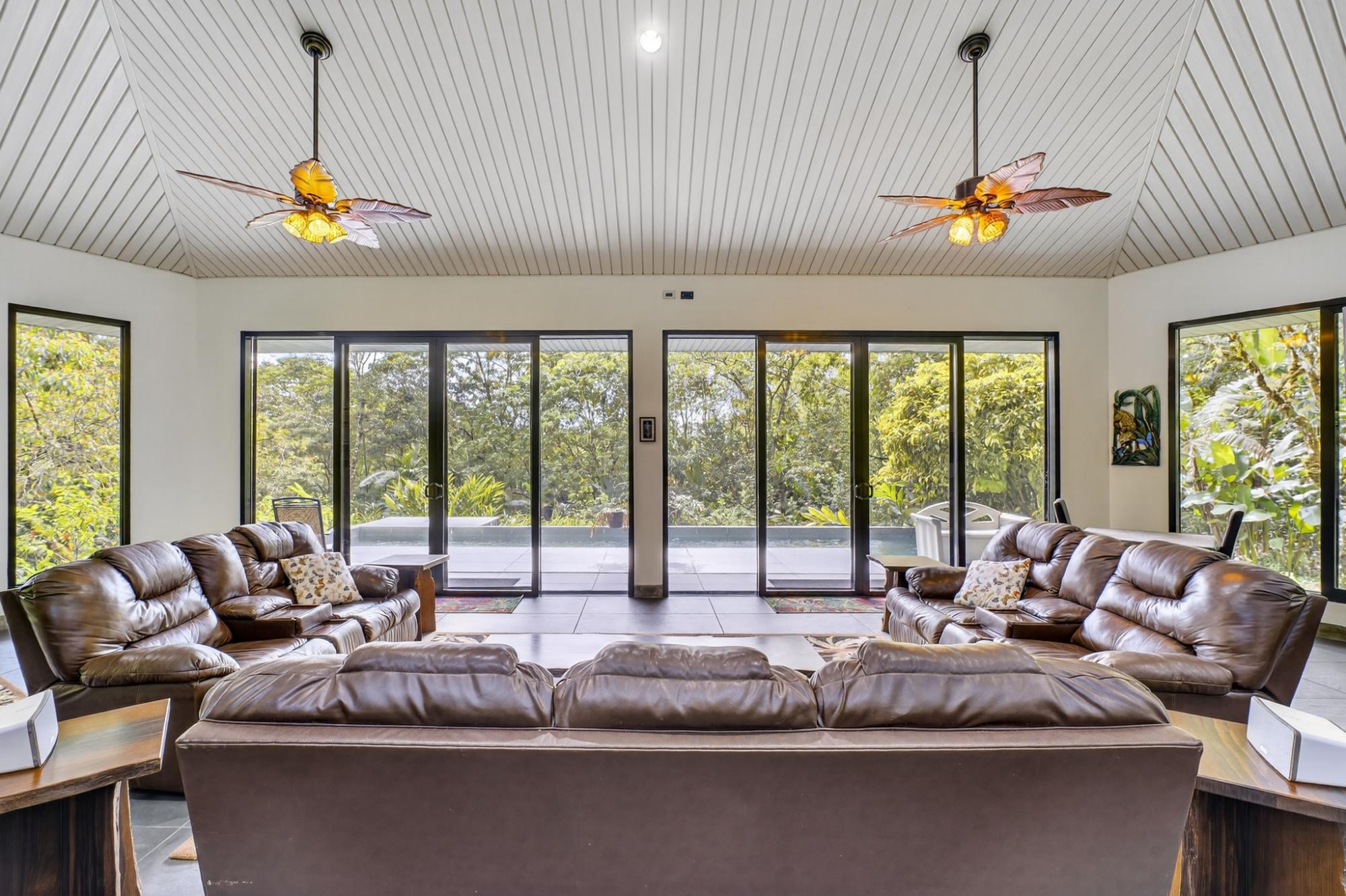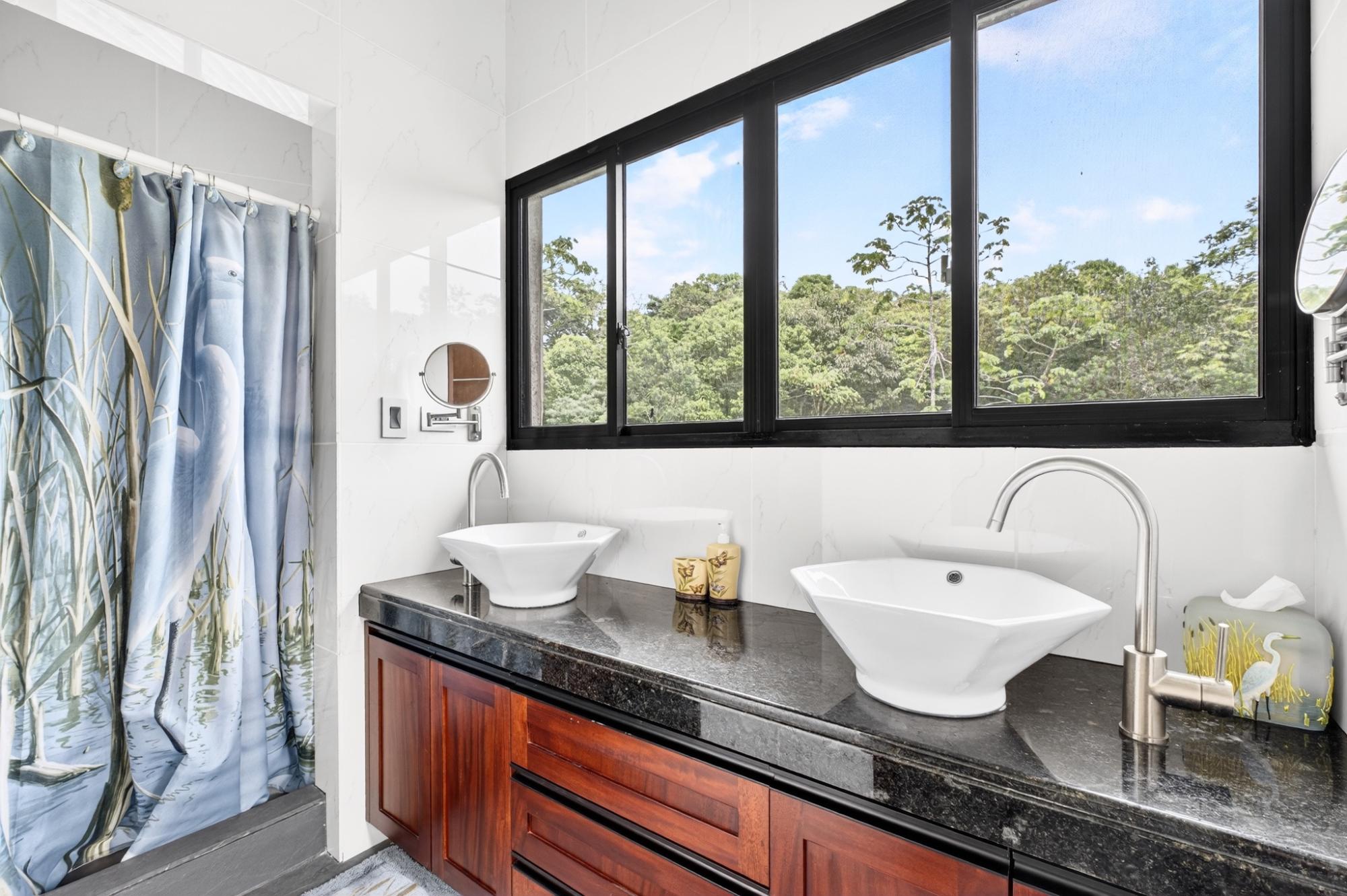 Nature Lover's Paradise. Ideally located between Boquete, David, and Volcán, this private estate offers a contemporary 3B/3B home with pool surrounded by extraordinary biodiversity. Enjoy 2.5 miles of nature trails, a waterfall, tilapia pond, and approx. 1,820 meters of river and stream frontage. The property is a documented haven for 341+ bird species and 537+ butterfly species. The home features large windows for natural light and breezes, a wraparound covered terrace, ceiling fans, and low-maintenance design. Spacious kitchen with oversized fridge and freezer, double oven, and abundant cabinetry. Office with granite workspaces and floor-to-ceiling shelving. Master suite with double shower and oversized walk-in closet beside laundry. Garage with storage, sinks, and cooking space. Workshop, greenhouse, composting system, water tanks, filtration, and whole-house generator. Fruit trees and a perfect, temperate elevation complete this unique lifestyle property. *The adjoining finca is also available in addition to the finca in this listing. Inquire for details.