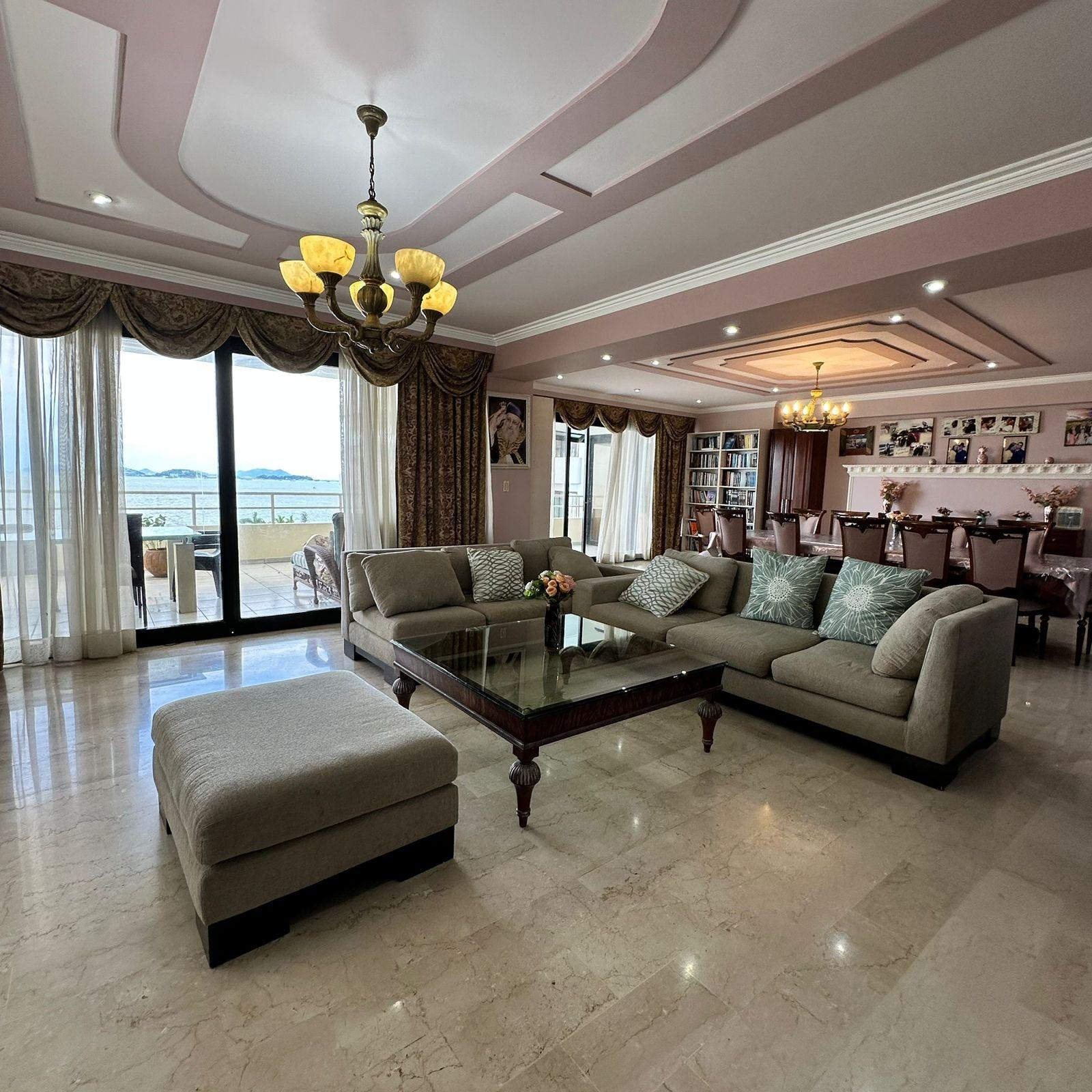 Exclusive and spacious 649 m² apartment in the heart of Punta Paitilla. This impressive apartment offers a sophisticated and comfortable lifestyle, with a privileged location in one of the most desirable areas of the city. It features four spacious bedrooms, each with its own private bathroom, including an elegant master bedroom with a large walk-in closet and bathroom. Enjoy a generous living and dining room ideal for entertaining, a cozy study, and a guest bathroom for added convenience. The apartment stands out for its beautiful L-shaped terrace with ocean views, as well as several additional terraces that allow for excellent ventilation and natural lighting. The spacious kitchen includes a breakfast area and is complemented by a maid's bedroom and bathroom. Additionally, the property has three parking spaces and a storage room. A perfect option for those seeking comfort, spaciousness, and unparalleled ocean views in one of the most exclusive areas of Panama.