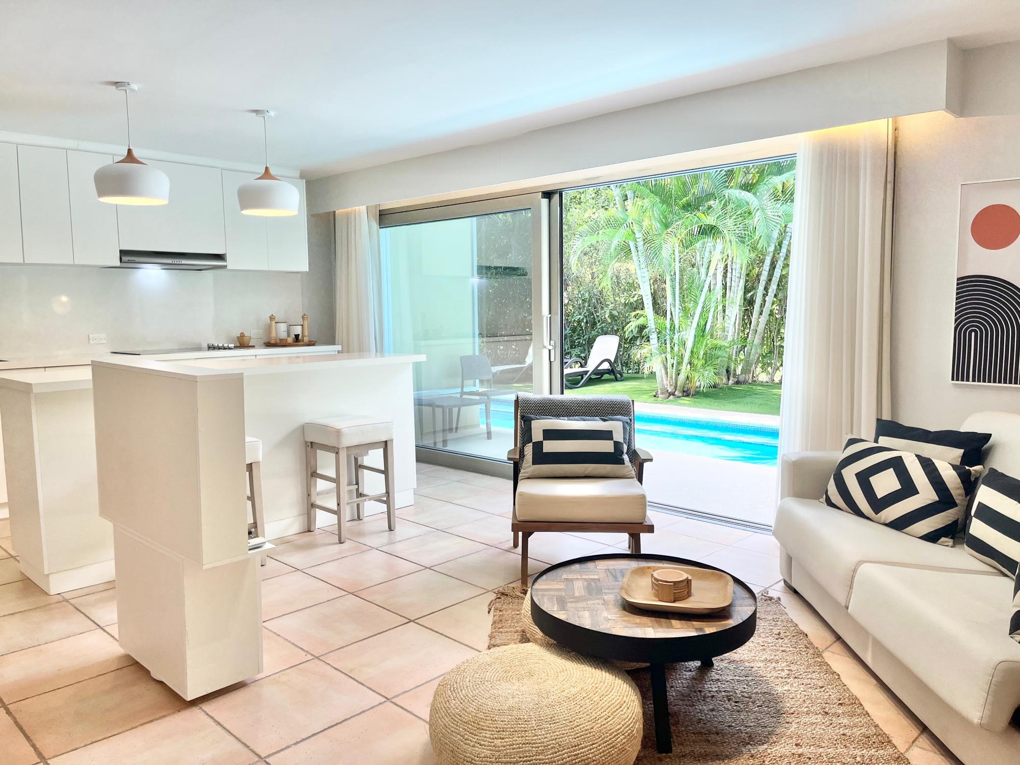Modern Beachside Living with Private Resort Perks! Welcome to Unit 1121, a rare and beautifully renovated swim-up suite nestled in the exclusive Coronado Luxury Suites & Club—a peaceful coastal haven located just 1.5 hours from Panama City in the vibrant beach town of Playa Coronado. Whether you're looking for a private beach retreat, a vacation rental investment, or a comfortable home base for longer stays, this thoughtfully designed suite delivers an exceptional combination of modern luxury, privacy, and income potential. Exclusive Swim-Up Access & Thoughtful Design. Step directly from your private terrace into a semi-private swim-up pool, shared with only a select few units—an incredibly rare feature that elevates your experience of resort-style living. Inside, the suite boasts a bright, open-concept layout with expansive sliding doors that seamlessly blend indoor and outdoor spaces. Key features include: Fully equipped kitchen featuring white quartz countertops, modern appliances & all essentials for short or extended stays, King-size bedroom with generous built-in storage, Renovated dual-access bathroom (accessible from both the bedroom and main living area—ideal for hosting family or friends), Contemporary Open Concept Living/Breakfast Bar/Kitchen area that flows effortlessly into the outdoor terrace and poolside lounge. Resort-Style Amenities for Every Lifestyle.