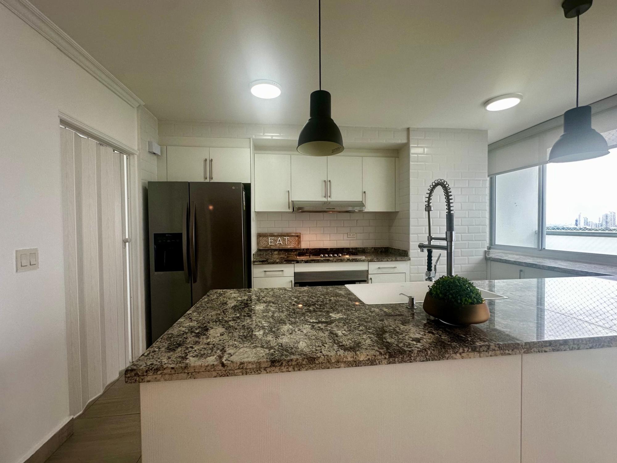 Modern Apartment for Sale – San Francisco Live in style and comfort in one of the city's most complete buildings! This beautiful 124 m² apartment is located steps from ATLAPA and close to supermarkets, restaurants, pharmacies, and Omar Park, making it ideal for living or investing. Layout: • 2 spacious bedrooms • 2 full bathrooms • Walk-in closet in master bedroom • Remodeled kitchen with luxury cabinets and granite countertops • Side-by-side refrigerator, 36" built-in stove with oven, extractor fan, and farmhouse sink • New 24" automatic electric dishwasher • Laundry area with laundry center (gas dryer) • Gas water heater • Balcony with city view • 2 private parking spaces • 10 m² storage space Comfort and technology: • Low-consumption LED lighting • Inverter air conditioners in all areas • Ceiling fans • Fire alarm installed Building amenities: • Adult and children's swimming pool • Fully equipped gym • Event room and rooftop with pergolas and bar • Children's play area • Terrace with deck and bathrooms • Modern lobby with waiting room • 3 high-speed elevators • Parking for visitors, disabled guests, bicycles, and motorcycles • Security and surveillance booth 24/7 security with cameras • Fully equipped power plant • Water and gas reserve tanks. Prime location in San Francisco with quick access to key points in the city. A unique option that combines security, comfort, and excellent connectivity. Available for sale. Contact us for more information or to schedule a viewing.