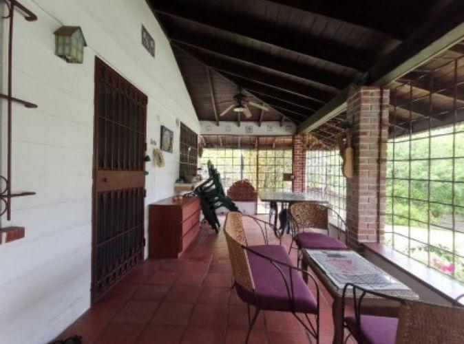 Ground floor built in 1977. 2 bedrooms, full kitchen with overhead cabinets (20249, living/dining area. Full bathroom with water heater, tiles in bathroom and kitchen. Covered outdoor terrace with iron fencing, as well as all windows. Upper floor (2000) single bedroom, internal staircase, full bathroom, French windows with lattices and iron fences. Tile roof over wood and asphalt shingles. Covered open garage. Caretaker's room and pump and storage room. At the entrance to the property, an enclosed gazebo with windows and fences. Well water, electricity, plumbing, septic tank.