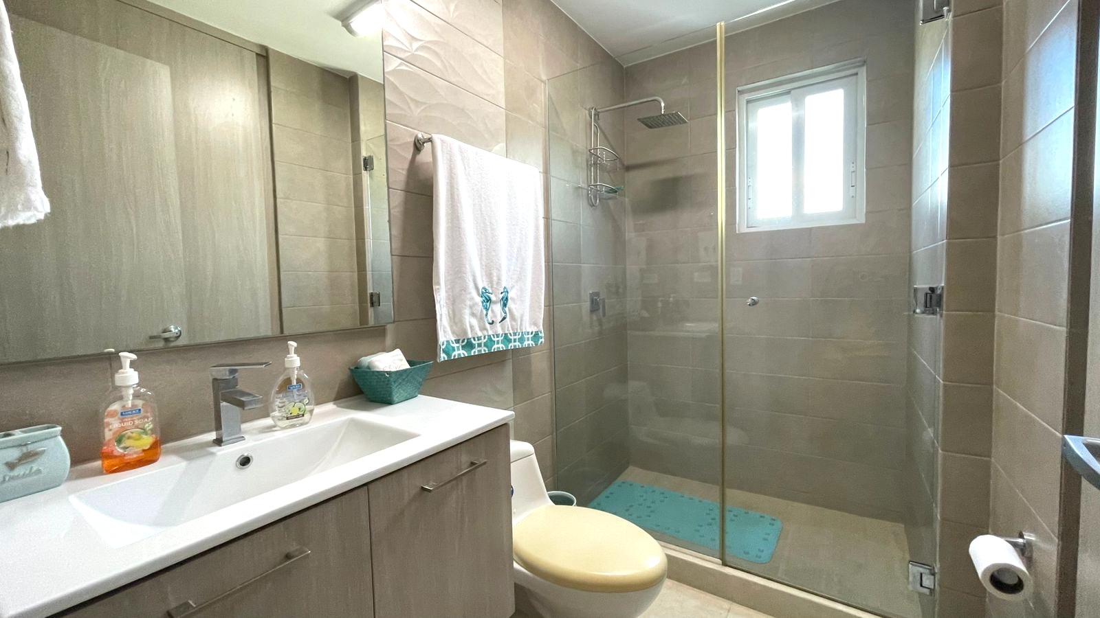 The apartment is in excellent condition, featuring three spacious bedrooms, each with its own bathroom, a maid's quarters with bathroom, an open kitchen, a living/dining room, a laundry area, and a balcony terrace. The apartment is finely furnished, with five Panasonic inverter split air conditioners, and the price includes all appliances, curtains, and furniture. Bijao Beach Club & Residences is a residential, vacation, and tourist complex located on Panama's Pacific coast. It offers a mix of apartments, houses, and villas, along with exclusive access to beaches, golf courses, swimming pools, and various recreational facilities. It is a popular destination for both residents and visitors seeking a beach setting with high-end services and amenities.