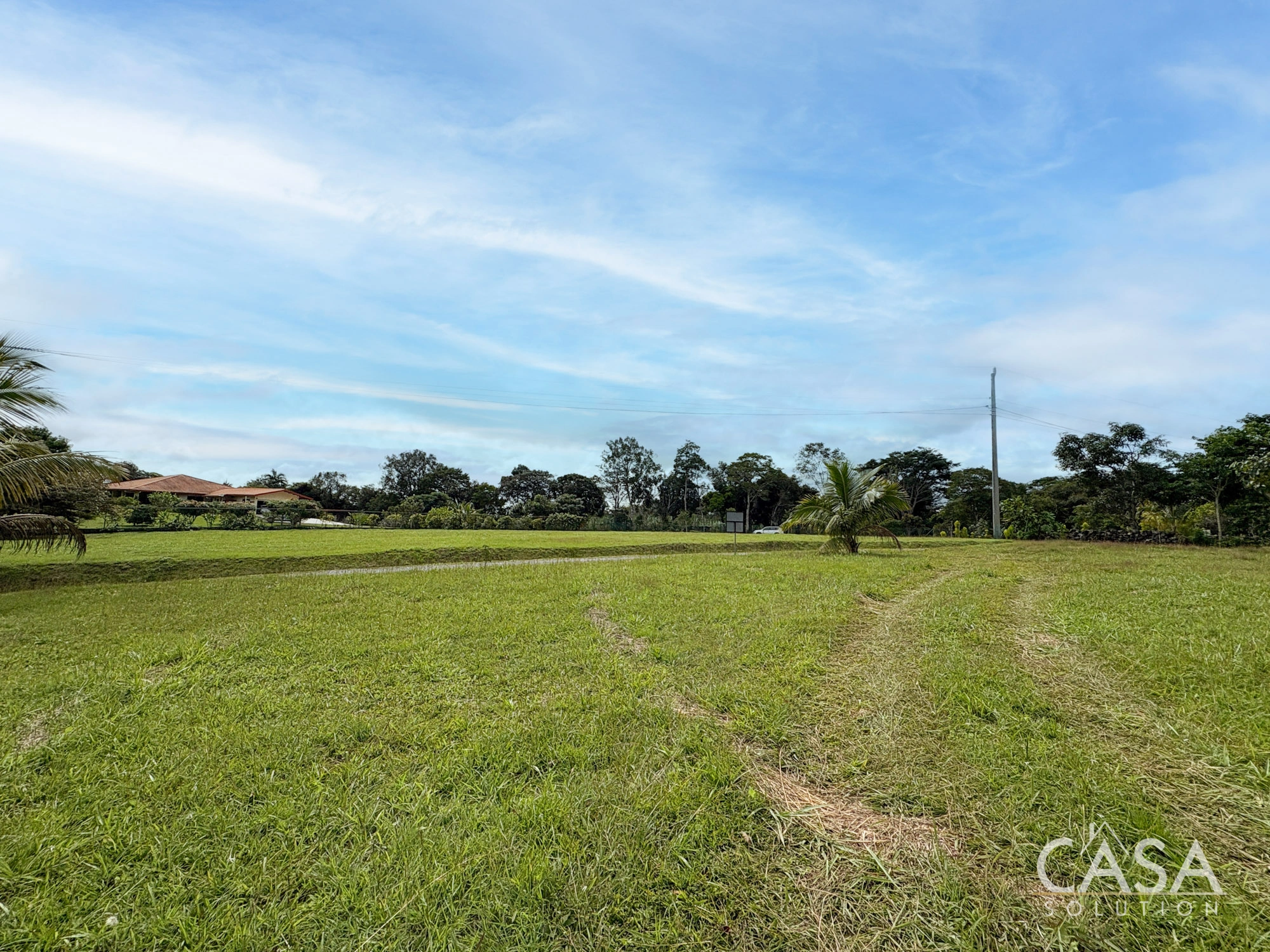 The topography is mostly flat and open, making it easy to build, with some trees providing natural shade and a gentle slope at the back of the property that creates a small backdrop and added privacy.