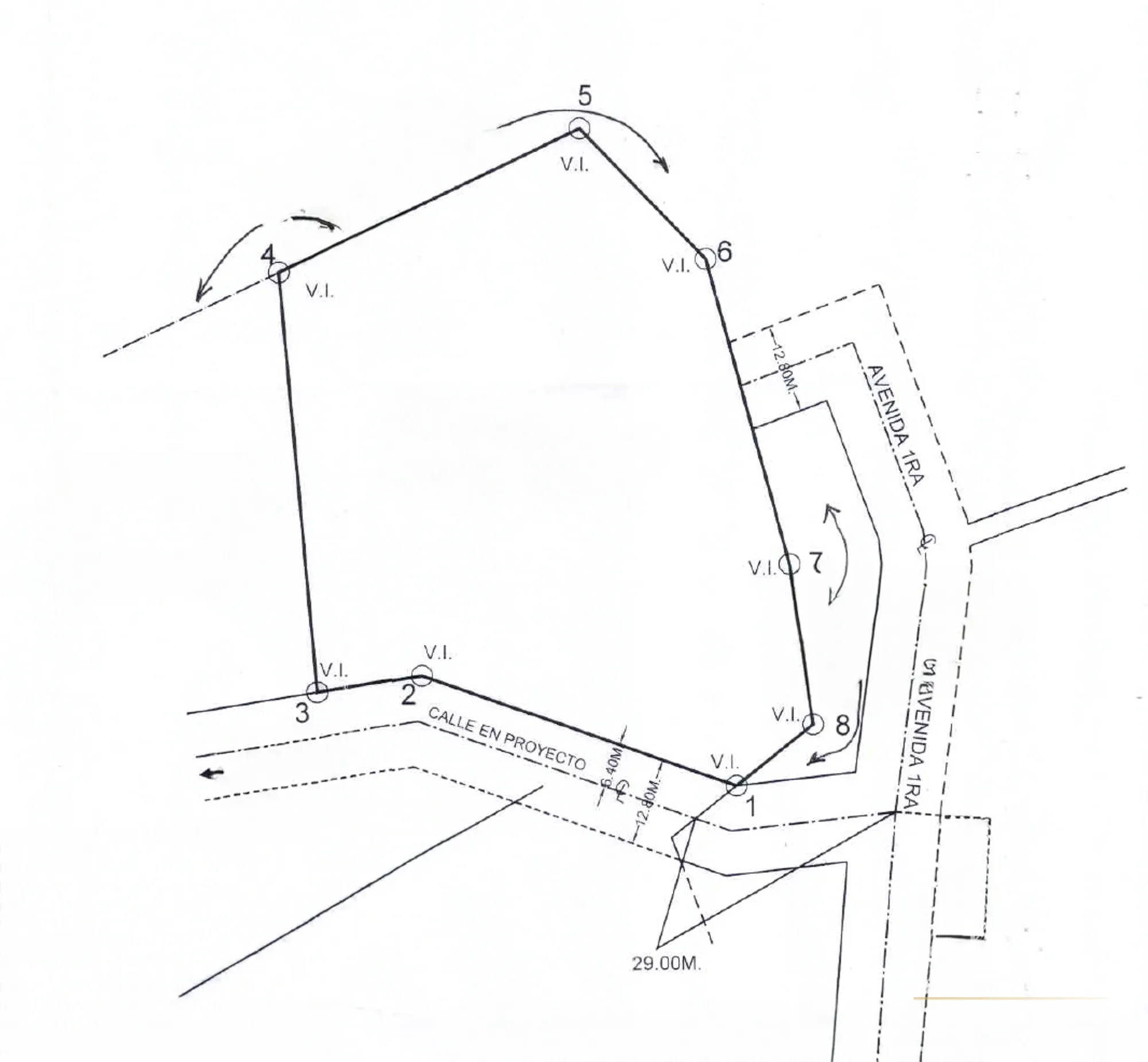 The property includes direct frontage along Avenida 1ra, clearly defining access to the lot and its connection to an existing roadway. The boundaries appear clearly marked, providing clarity on the layout and limits of the property.