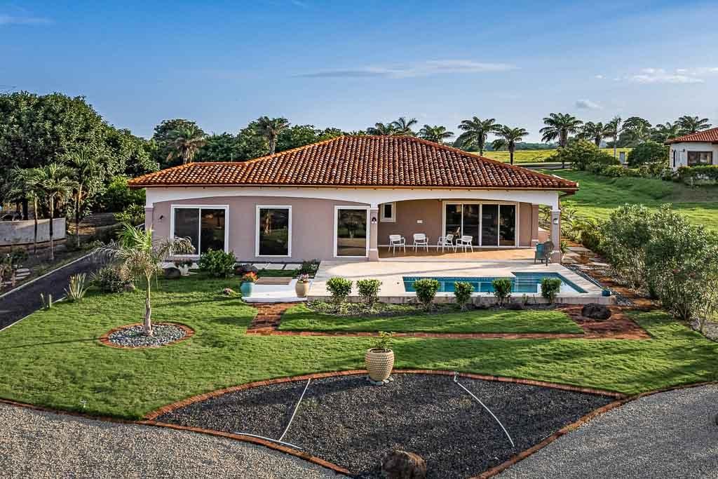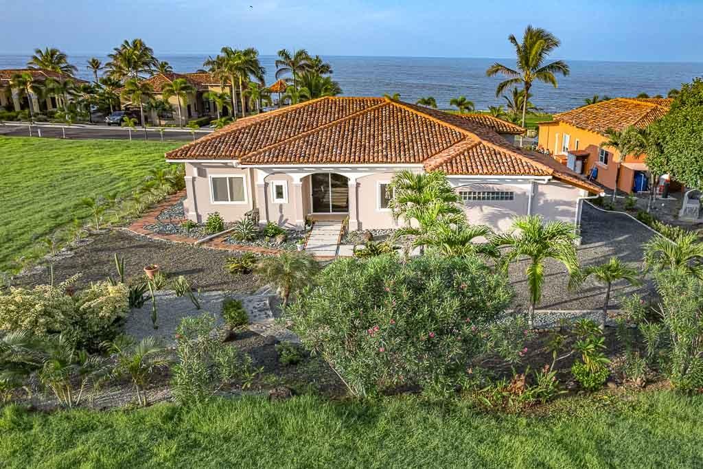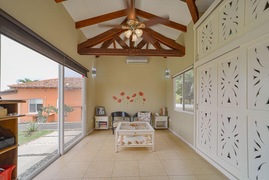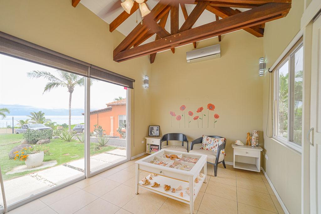 Sound of the Sea in Pedasí combines modern comfort with a laid-back coastal lifestyle. Designed with open spaces and vaulted ceilings featuring exposed wood beams, the home feels spacious and bright throughout. Large glass doors connect the indoor living area to the pool terrace and garden, perfect for relaxing or entertaining with a view of the ocean just beyond. Inside, the villa offers a practical layout with two bedrooms plus a dedicated reading room, ideal for work or quiet time. The master suite features custom closets, a stylish ensuite bathroom, and direct access to the pool area. The kitchen is fully equipped with granite countertops, quality appliances, and a generous island for casual dining. A separate sunroom with floor-to-ceiling windows adds a tranquil spot to enjoy the garden scenery. The home offers a total construction area of 280 m² (171 m² interior and 109 m² exterior) on a 1,260m² lot. There are 2.5 bathrooms and the property benefits from a tax exoneration until 2034. The monthly HOA fee is $176.46, providing well-maintained common areas and peace of mind. Additional features include a functional laundry room, high-ceiling garage, and mature landscaping with native plants and stone paths. This move-in ready villa is perfect as a serene coastal retreat or a full-time residence in one of Panama’s most charming beach communities. Contact us today for more information or to schedule a showing.