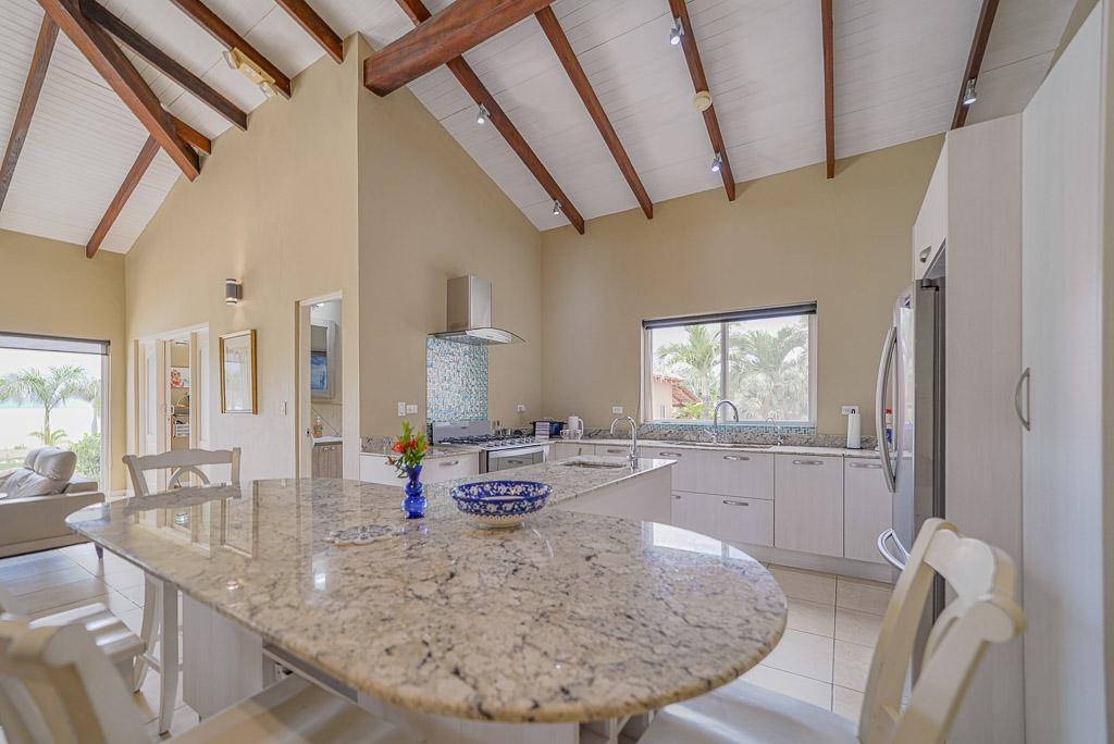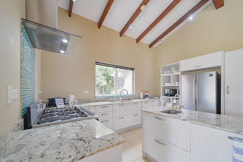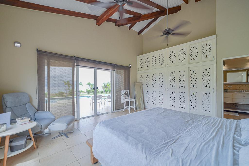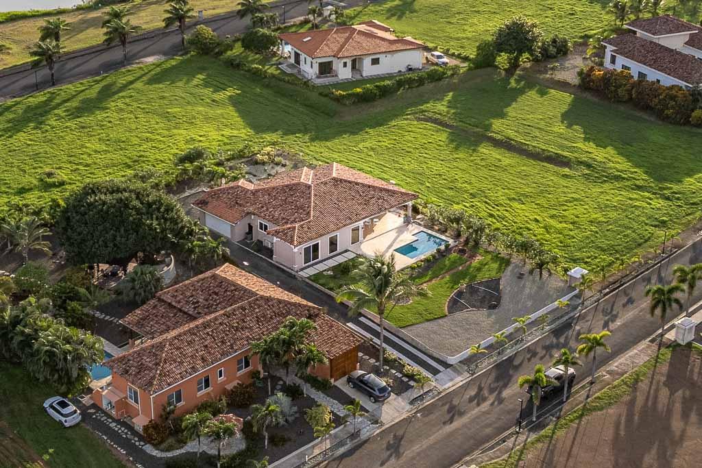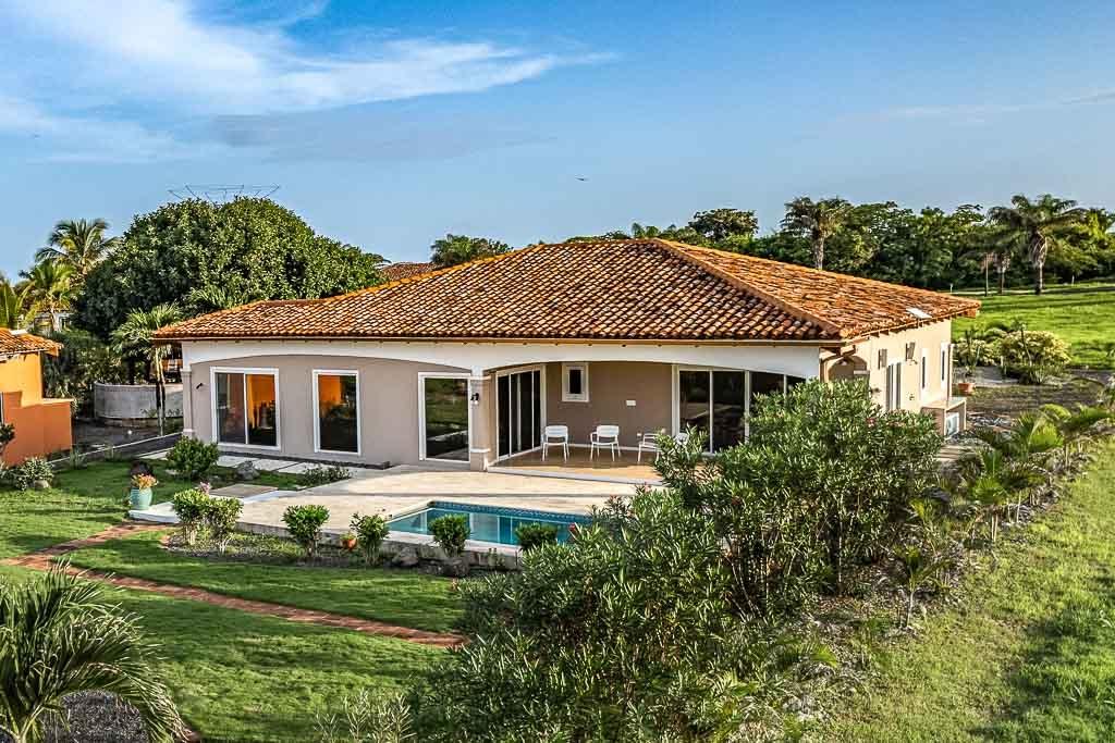 Sound of the Sea in Pedasí combines modern comfort with a laid-back coastal lifestyle. Designed with open spaces and vaulted ceilings featuring exposed wood beams, the home feels spacious and bright throughout. Large glass doors connect the indoor living area to the pool terrace and garden, perfect for relaxing or entertaining with a view of the ocean just beyond. Inside, the villa offers a practical layout with two bedrooms plus a dedicated reading room, ideal for work or quiet time. The master suite features custom closets, a stylish ensuite bathroom, and direct access to the pool area. The kitchen is fully equipped with granite countertops, quality appliances, and a generous island for casual dining. A separate sunroom with floor-to-ceiling windows adds a tranquil spot to enjoy the garden scenery. The home offers a total construction area of 280 m² (171 m² interior and 109 m² exterior) on a 1,260m² lot. There are 2.5 bathrooms and the property benefits from a tax exoneration until 2034. The monthly HOA fee is $176.46, providing well-maintained common areas and peace of mind. Additional features include a functional laundry room, high-ceiling garage, and mature landscaping with native plants and stone paths. This move-in ready villa is perfect as a serene coastal retreat or a full-time residence in one of Panama’s most charming beach communities. Contact us today for more information or to schedule a showing.