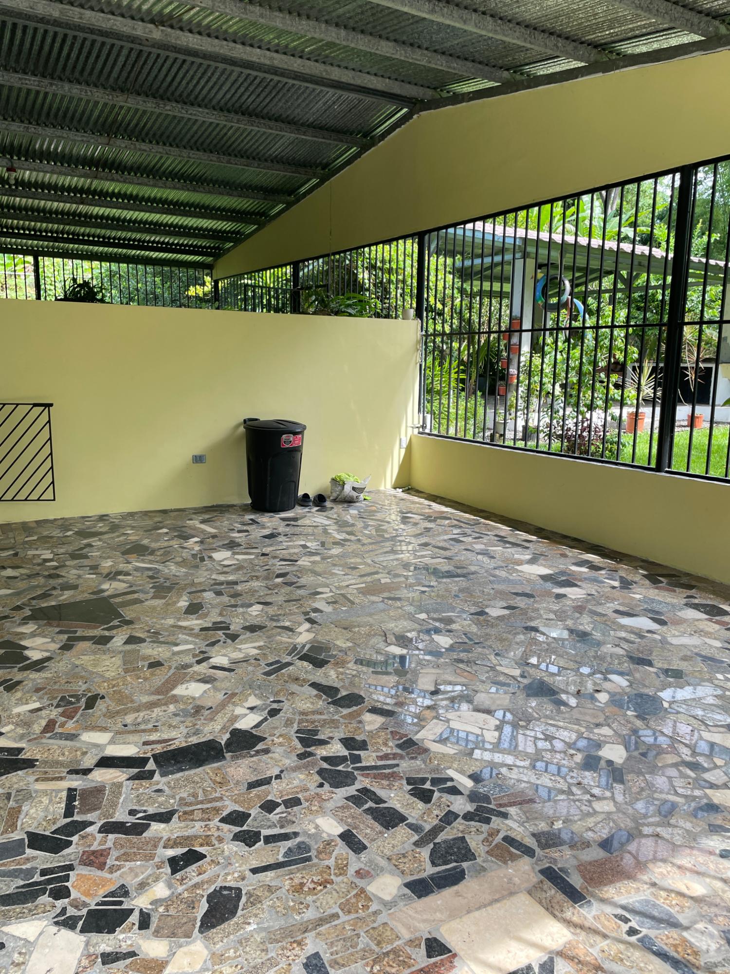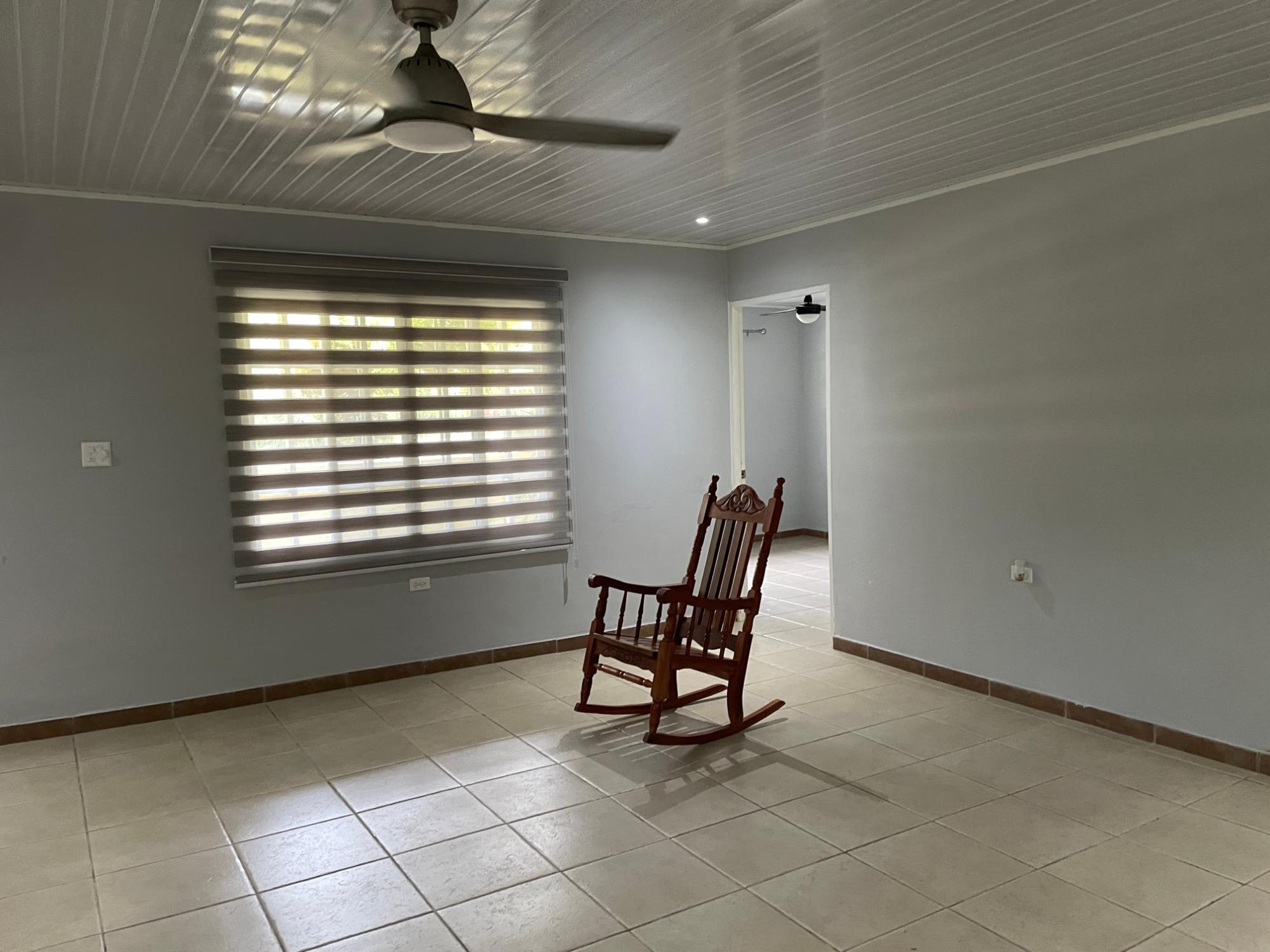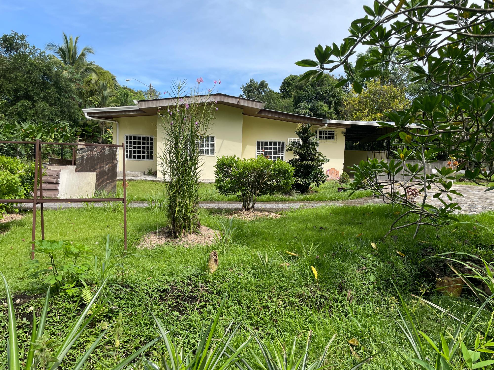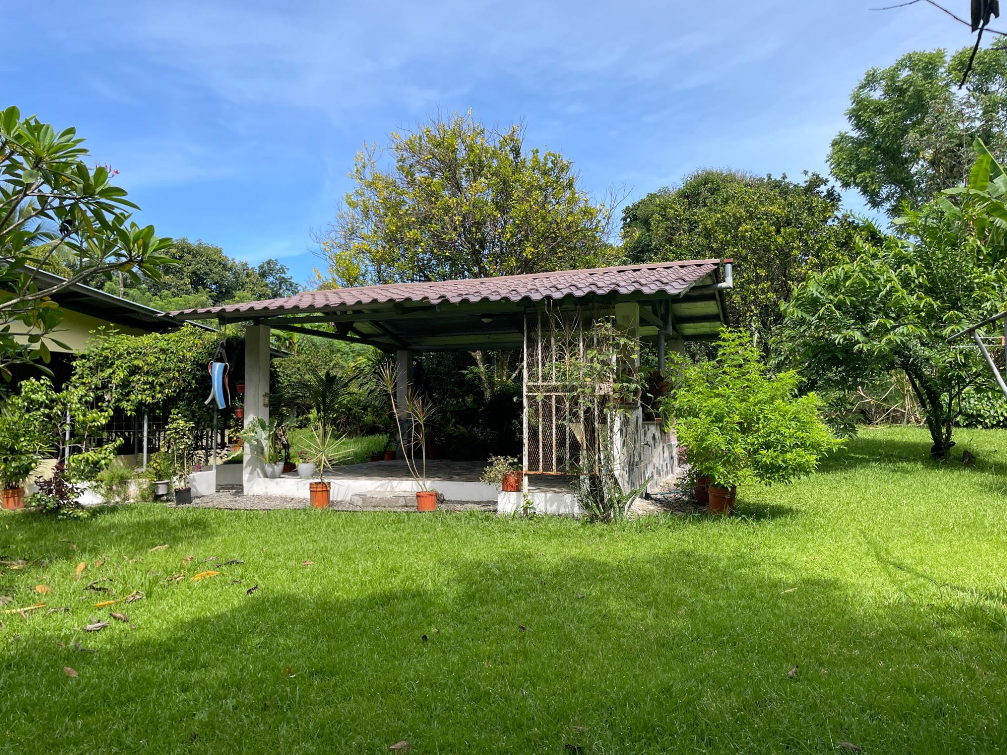 Are you looking for a large lot, a spacious house with terrace and easy access to the highway? Here you are! Just 20 minutes on the nearby Interamerican Highway to David, the second-largest town in Panama, and 5 minutes to shopping and restaurants in Bugaba, this recently renovated house offers you the best of both worlds: Accessibility and privacy. Recently renovated (including a new electrical 200-W system), the house has two large, air-conditioned bedrooms which share a Jack and Jill bathroom, another smaller bedroom which can also be used as an office, a main sitting/dining room and a large kitchen with a pass-through hatch to the main room. The kitchen has not yet been installed, so that the new owners have the entire gamut to choose their own dream kitchen from. You will probably spend most of your time on the large outdoor terrace overlooking the generous gardens. The generous grounds offer fruit trees, flowers and walkways as well as a private well in addition to the public water supply. And if you want even more space: the lot next door is 1200 m2 and also available for $ 45,000. Your car will be protected from the sun and rain in its carport and the entire property is safely fenced.