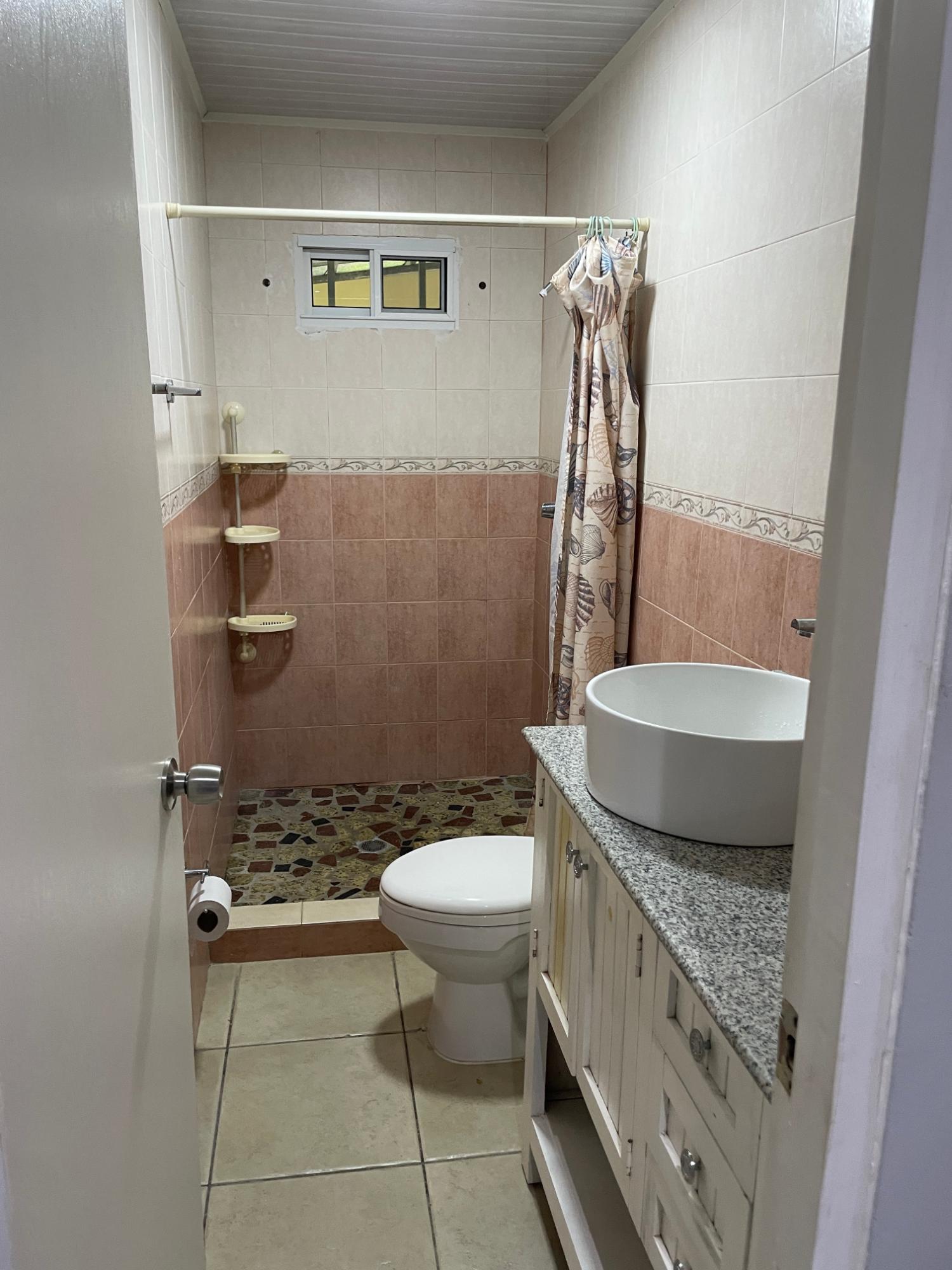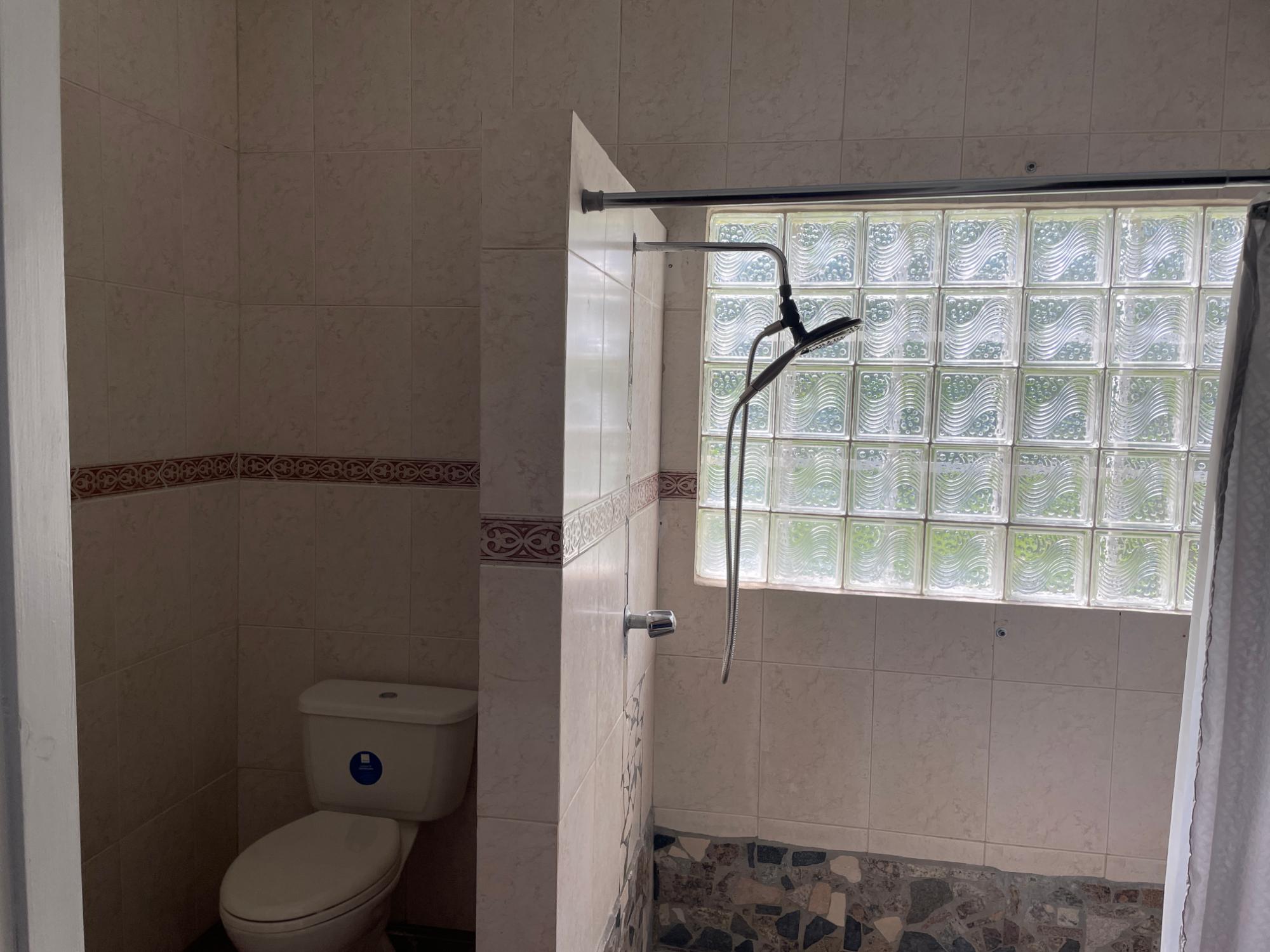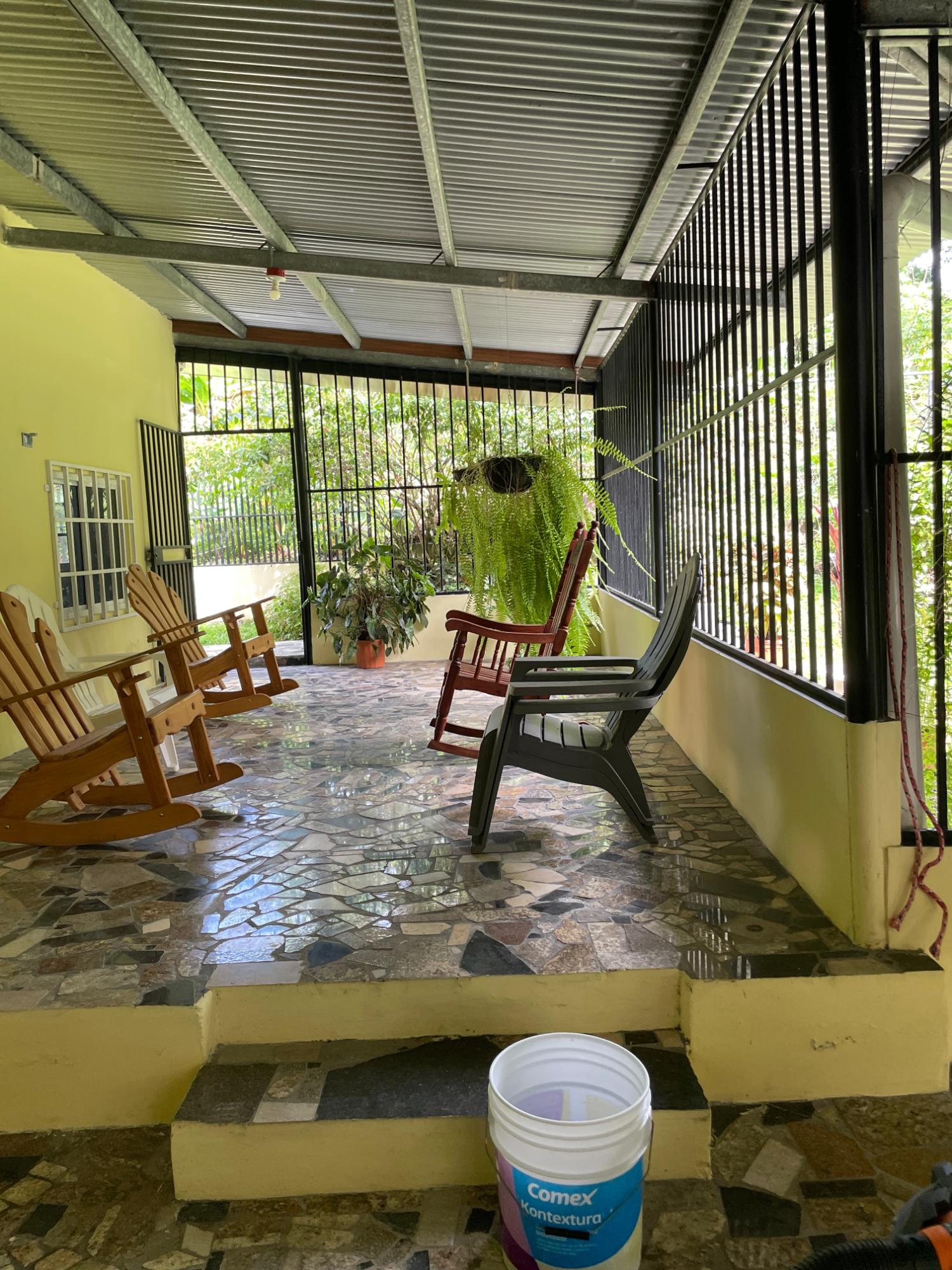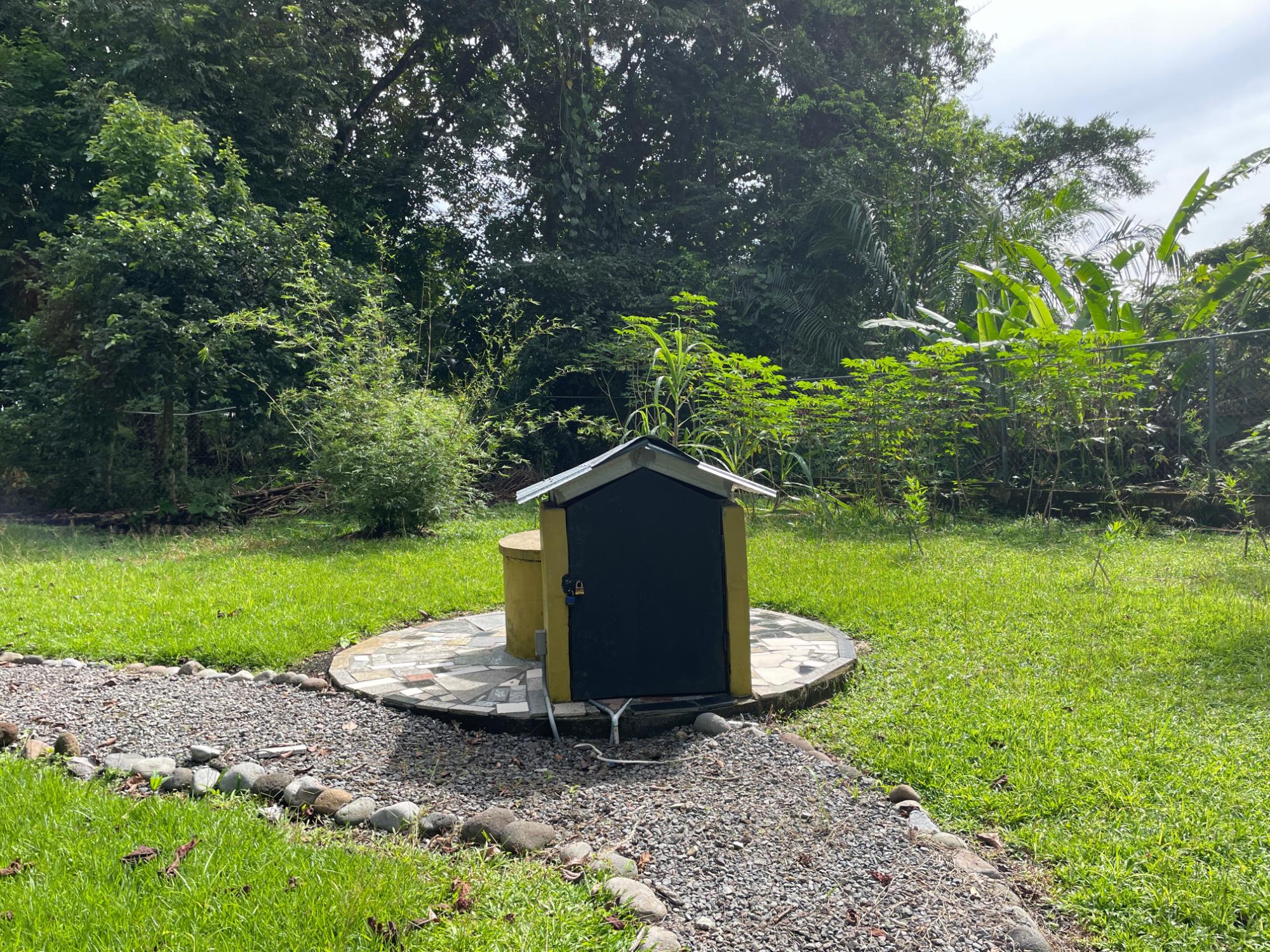 Are you looking for a large lot, a spacious house with terrace and easy access to the highway? Here you are! Just 20 minutes on the nearby Interamerican Highway to David, the second-largest town in Panama, and 5 minutes to shopping and restaurants in Bugaba, this recently renovated house offers you the best of both worlds: Accessibility and privacy. Recently renovated (including a new electrical 200-W system), the house has two large, air-conditioned bedrooms which share a Jack and Jill bathroom, another smaller bedroom which can also be used as an office, a main sitting/dining room and a large kitchen with a pass-through hatch to the main room. The kitchen has not yet been installed, so that the new owners have the entire gamut to choose their own dream kitchen from. You will probably spend most of your time on the large outdoor terrace overlooking the generous gardens. The generous grounds offer fruit trees, flowers and walkways as well as a private well in addition to the public water supply. And if you want even more space: the lot next door is 1200 m2 and also available for $ 45,000. Your car will be protected from the sun and rain in its carport and the entire property is safely fenced.