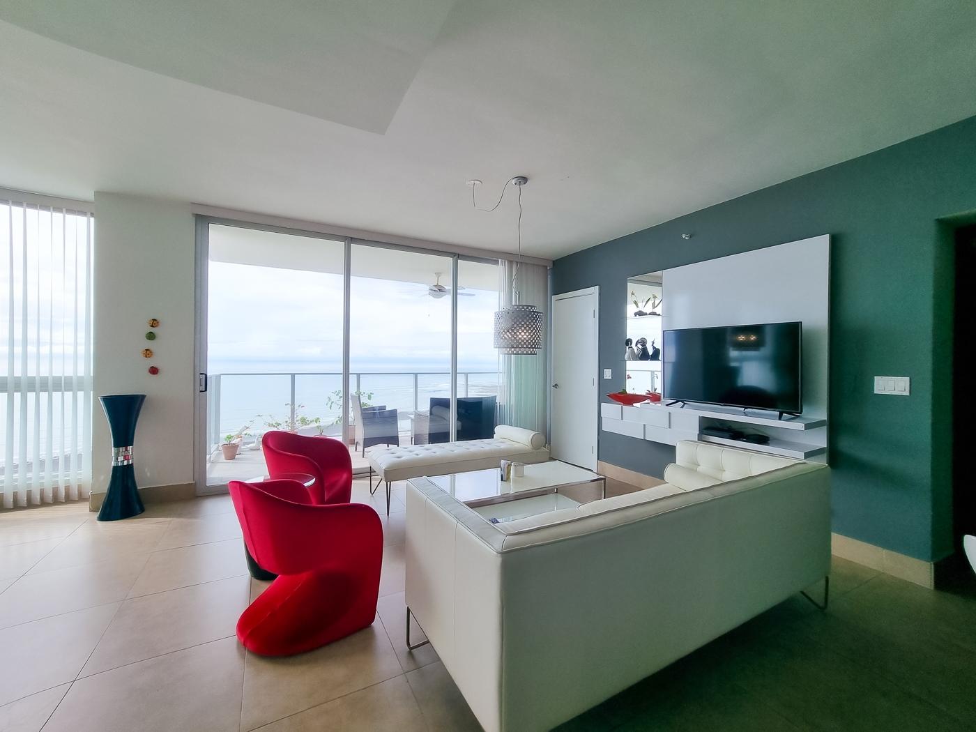 Luxurious Beachfront Apartment with Panoramic Ocean Views Dreaming of waking up to the sound of waves and stunning ocean views? Welcome to PH Riomar, one of the most prestigious and sought-after beachfront communities in West Panama. This beautifully appointed 2-bedroom, 2-bathroom apartment offers breathtaking views of both the Pacific Ocean and the surrounding mountains. Fully furnished and exquisitely decorated, it's move-in ready — just unpack your suitcase and embrace your new tropical lifestyle. Enjoy resort-style amenities, secure gated access, and direct beach access within this upscale community. Located in San Carlos, just 90 minutes from Panama City, 10 minutes from Coronado — your hub for shopping, dining, and banking — and only a short drive from Rio Hato International Airport, with direct flights to Canada. This is more than a home — it's a beachfront escape you'll never want to leave.
