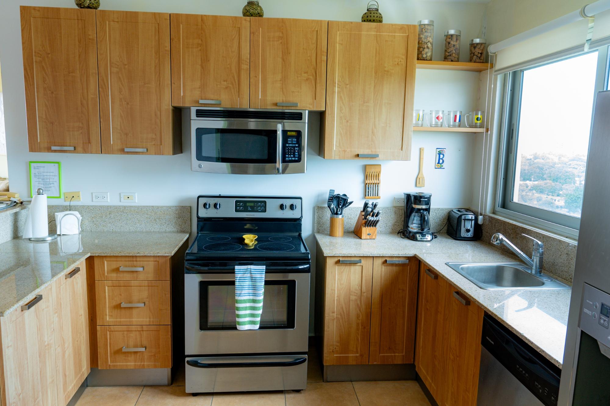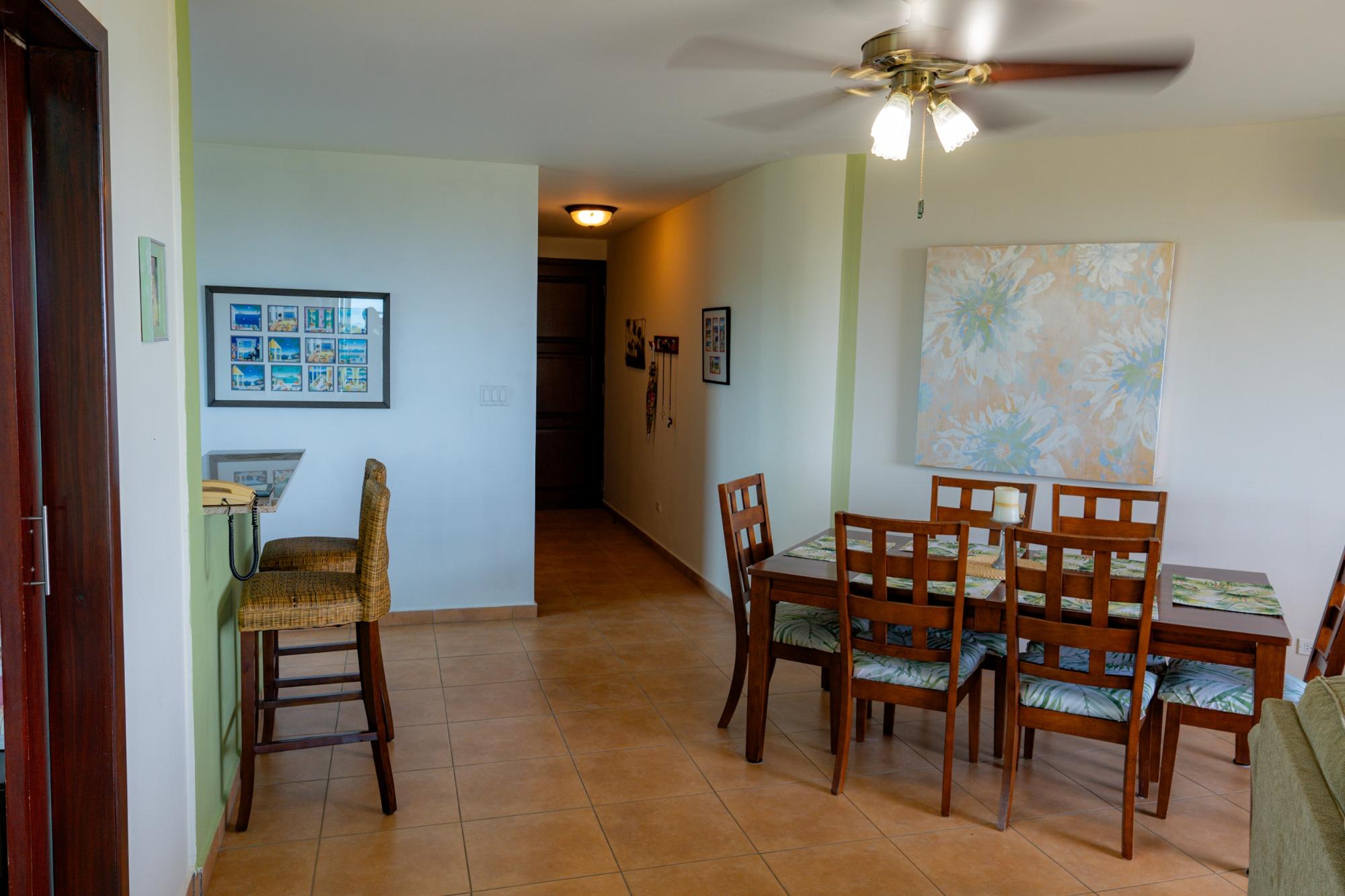 Experience luxury living at its finest in this beautifully decorated condo located in the prestigious Coronado Golf Tower. Unit 13A offers a perfect blend of comfort, style, and breathtaking views, making it an ideal residence or vacation home. Interior Features: Spacious and inviting, with comfortable seating and a dining table for six. Enjoy ceiling fans, a smart TV, with slider doors opening to the balcony for additional space and fresh air with stunning views of the Pacific Ocean and the golf course below. Experience the sunrise to the south-east view. The Master Bedroom Features a king-sized bed, a flat-screen TV, a reading chair, a writing desk, a walk-in closet, and an en-suite bathroom with a Jacuzzi tub and a walk-in shower. Second Bedroom is Equipped with a queen bed and easy access to the guest full bathroom includes a shower. Kitchen is Fully equipped with granite counters, an electric stove with an oven, a built-in microwave, a complete set of cooking utensils, serving dishes, cups, glasses, and utensils, a stainless-steel double door refrigerator with a water dispenser, a dishwasher, and other lifestyle amenities. The views to the west are a site for sunset views. This Dining Area Comfortably seats six, with two additional bar stools at the counter.