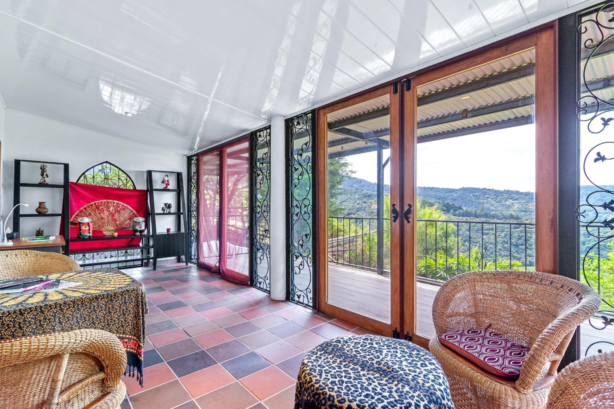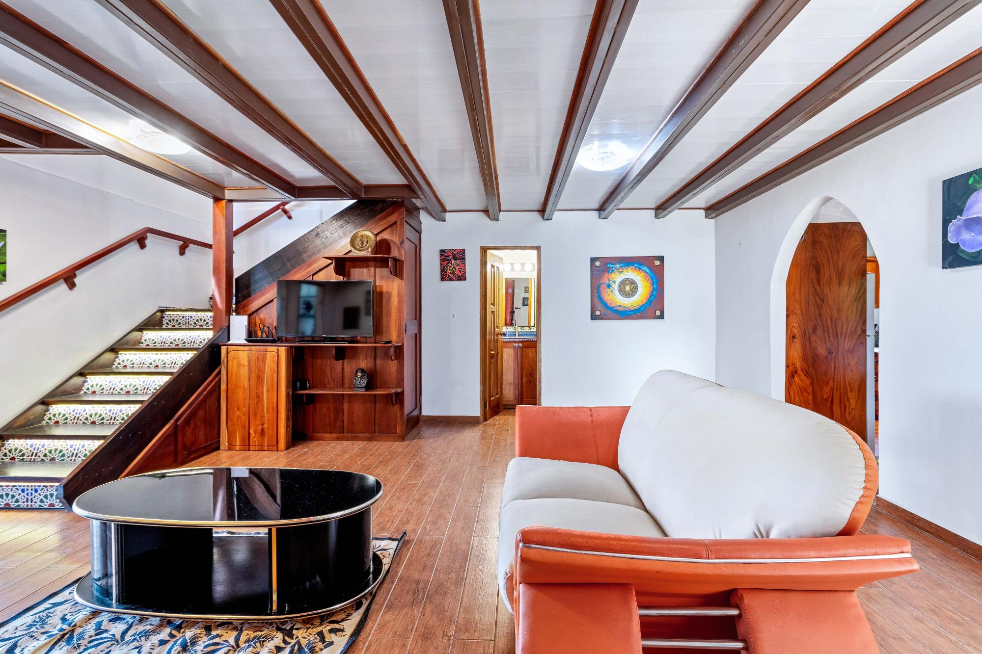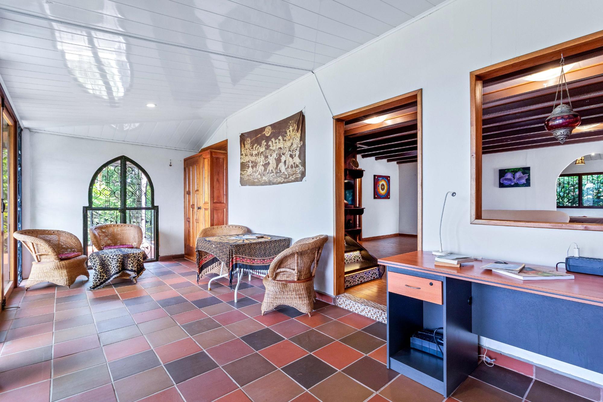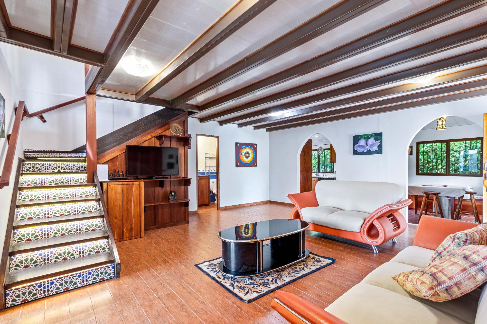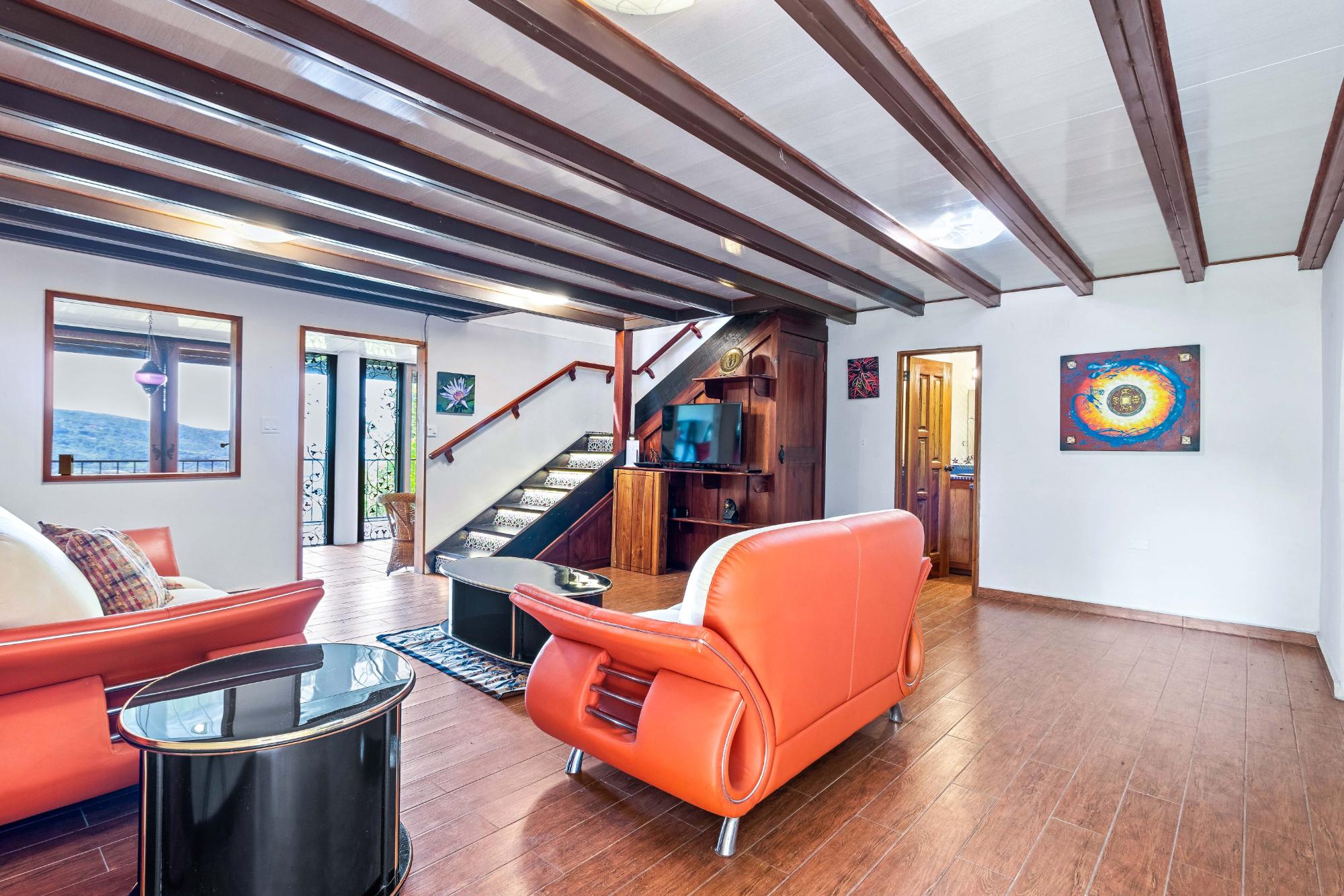 Welcome to your dream escape in the heart of Volcancito, Boquete, Panama! This exotic property offers a perfect blend of comfort and nature, providing an enchanting lifestyle amidst breathtaking scenery. With panoramic views stretching from the sparkling Pacific Ocean to the Caldera River and the towering Volcán Barú, this home is truly a slice of paradise. Step inside this thoughtfully designed 2-bedroom, 3-bath sanctuary where exotic meets modern comfort. The custom kitchen that was meticulously crafted to utilize every inch of space efficiently. The living area flows effortlessly into a sunlit sunroom that invites you to soak up the beauty of your surroundings year-round—perfect for enjoying morning coffee or evening gatherings while taking in stunning sunsets. Retreat to the loft style master bedroom suite complete with a private deck where you can unwind as you star gaze on a clear night. Below the main house lies an expansive area bursting with potential! Whether you're dreaming of a vibrant dance studio or a workshop for all your DIY projects, this space is adaptable to fit your lifestyle. Its layout encourages imagination – consider converting it into a cozy rental unit for guests seeking their own slice of paradise! This incredible lower level features a well-appointed bathroom with laundry for convenience and privacy. Set on nearly an acre of lush private land, this enchanting property offers a unique blend of serenity, privacy and opportunity. Whether you seek a tranquil retreat or an investment with potential rental income, this home is designed to cater to your every desire.