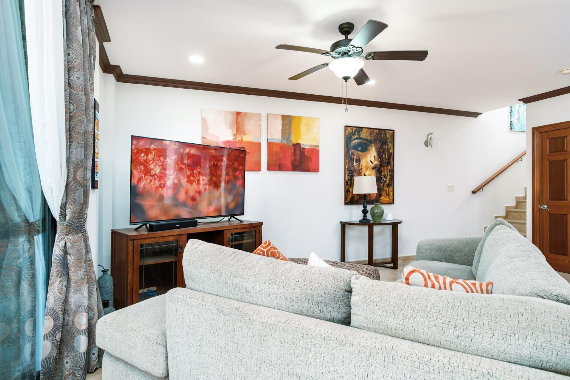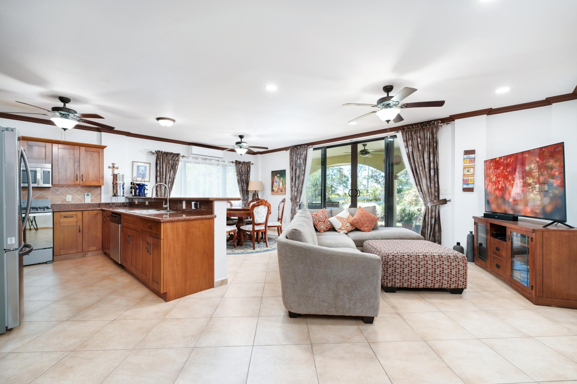 Experience the best of Boquete living in this beautifully furnished two-story residence, ideally situated in the sought-after Boquete Canyon Village—just minutes from the heart of town. Freshly painted, boasting brand-new appliances, and featuring custom security screens throughout, this home welcomes you with a bright, airy layout. The main floor includes a cozy living room that opens onto a lovely covered terrace—perfect for savouring your morning coffee—along with a modern kitchen and convenient adjacent laundry room. Each bedroom offers its own ensuite bath, and the master bedroom showcases a newly installed custom closet system. Additional highlights include a two-piece powder room, covered carport, backup water tank, and water filtration system. Enjoy a warm, neighbourly atmosphere and, with a small monthly fee, gain access to the community clubhouse, which features a gorgeous pool and a well-equipped gym. Don’t miss your chance to experience both comfort and convenience in one of Boquete’s premier gated communities!