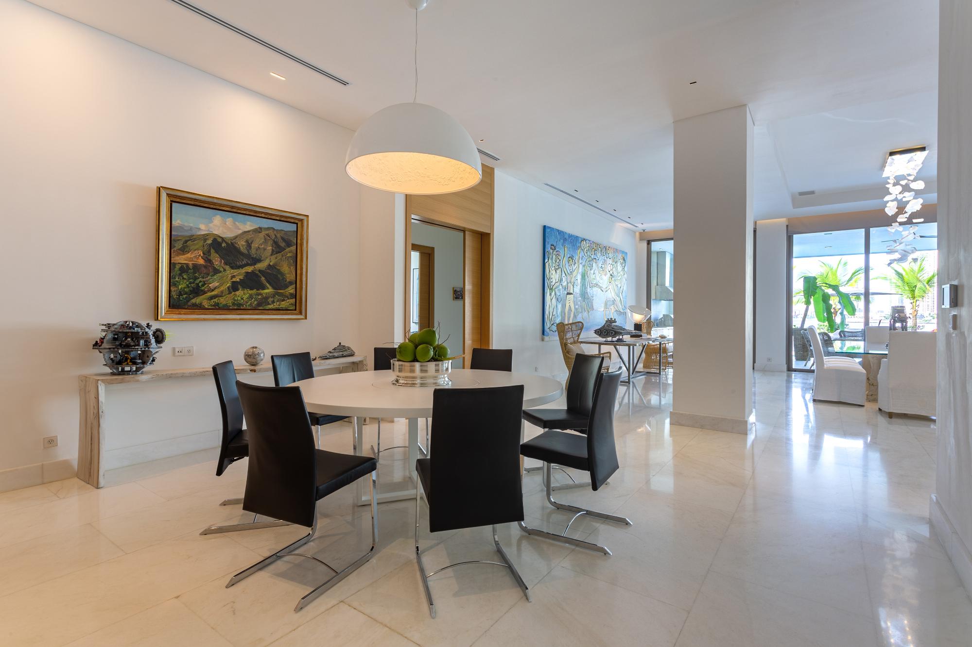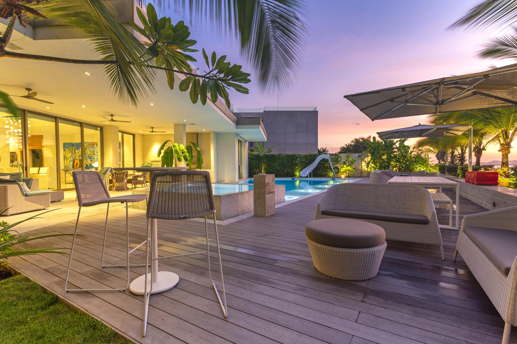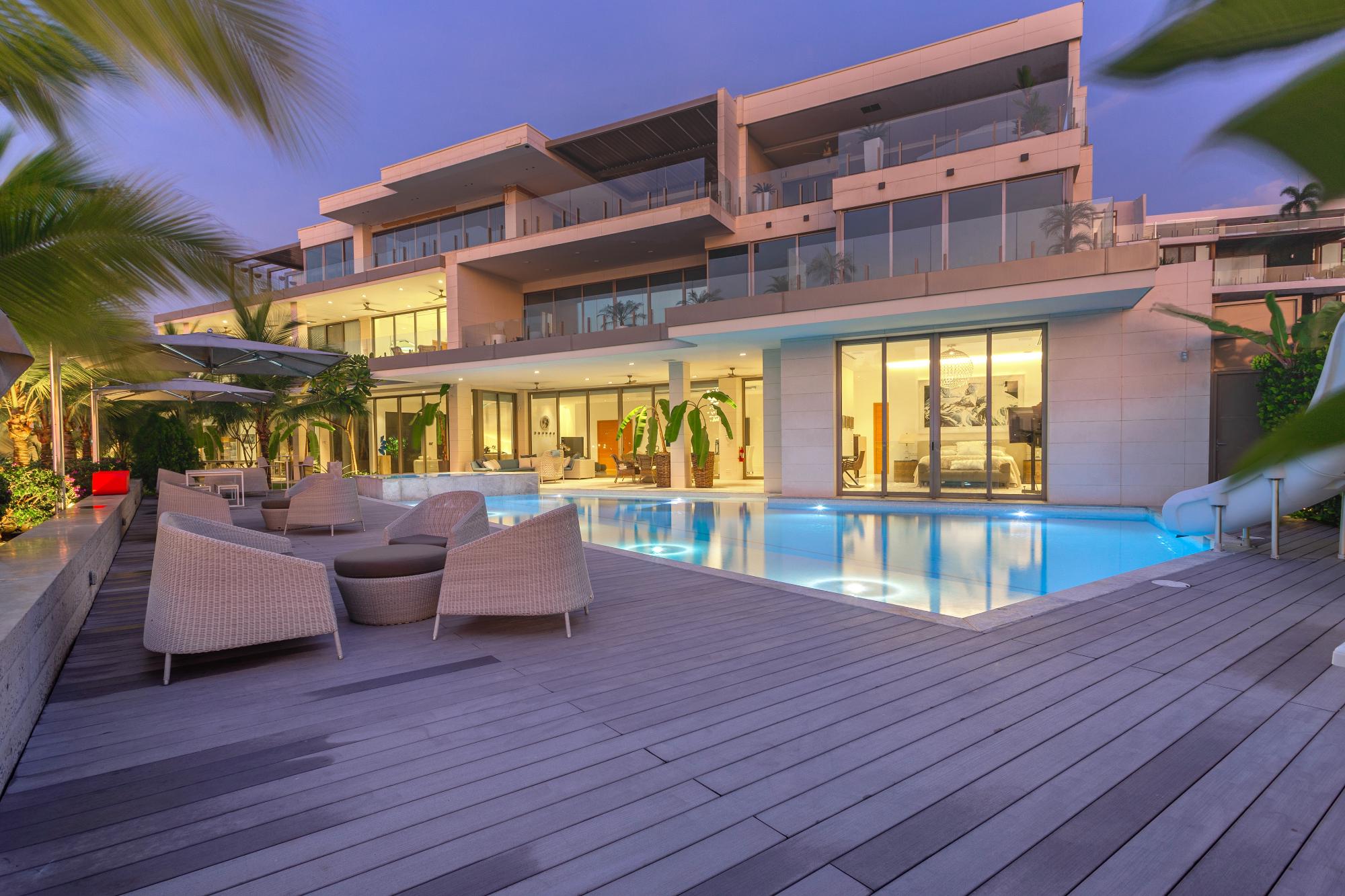 Illuminated by the infinite shimmer of the sun, Summer House rises radiant where the ocean meets the islands. Located in Waterfront III—an exclusive custom development of only three residences—this architectural gem offers over 40 meters of direct ocean frontage in the prestigious Ocean Reef Islands I. Designed to inspire and entertain, the home redefines waterfront living with elegance, privacy, and a playful spirit. Its curved staircase-slide serves as a sculptural centerpiece, connecting expansive social areas with lush gardens, a pool and jacuzzi, outdoor kitchen, and shaded terraces that invite long afternoons and unforgettable gatherings. With 9 bedrooms and 10.5 bathrooms across two levels, including a stunning primary suite with private terrace and panoramic views of Panama Bay, every detail has been conceived with passion, precision, and finesse. Summer House seamlessly blends minimalism and warmth, luxury and livability. More than a home, it’s a statement of lifestyle—crafted for those who dream of an extraordinary place to live, celebrate, and connect. With a private marina nearby and the vibrant energy of Panama City just minutes away, this is island living at its most refined.