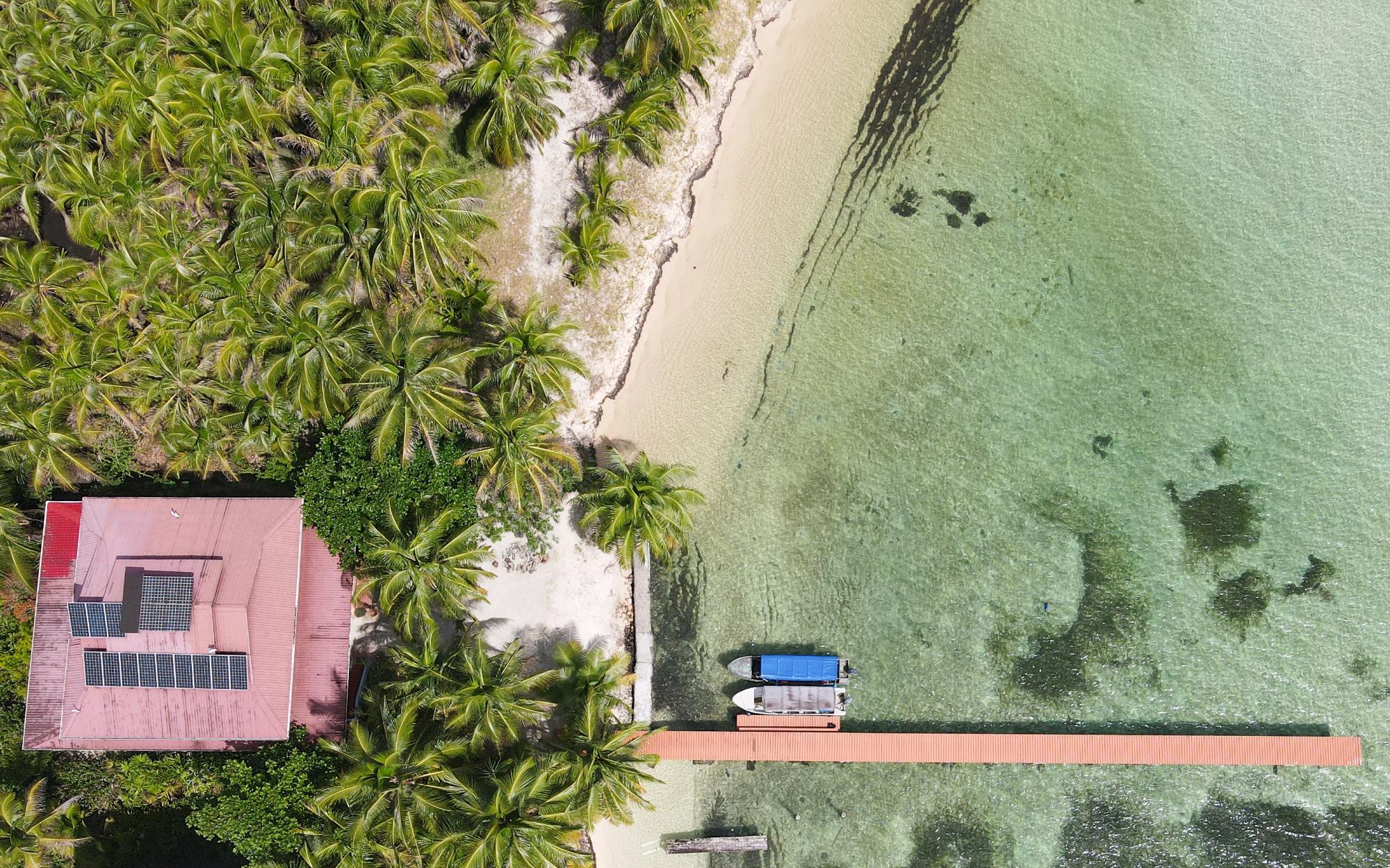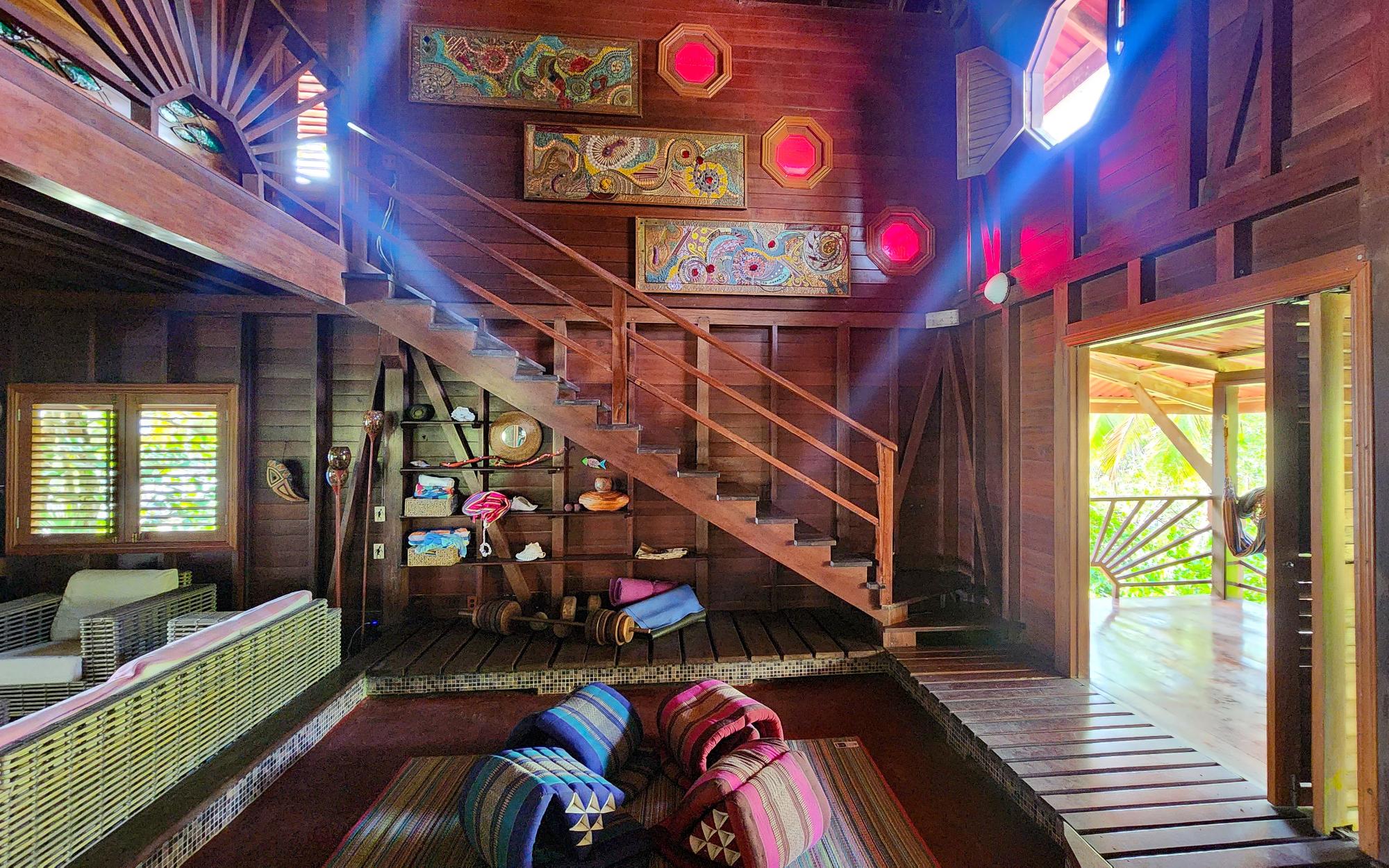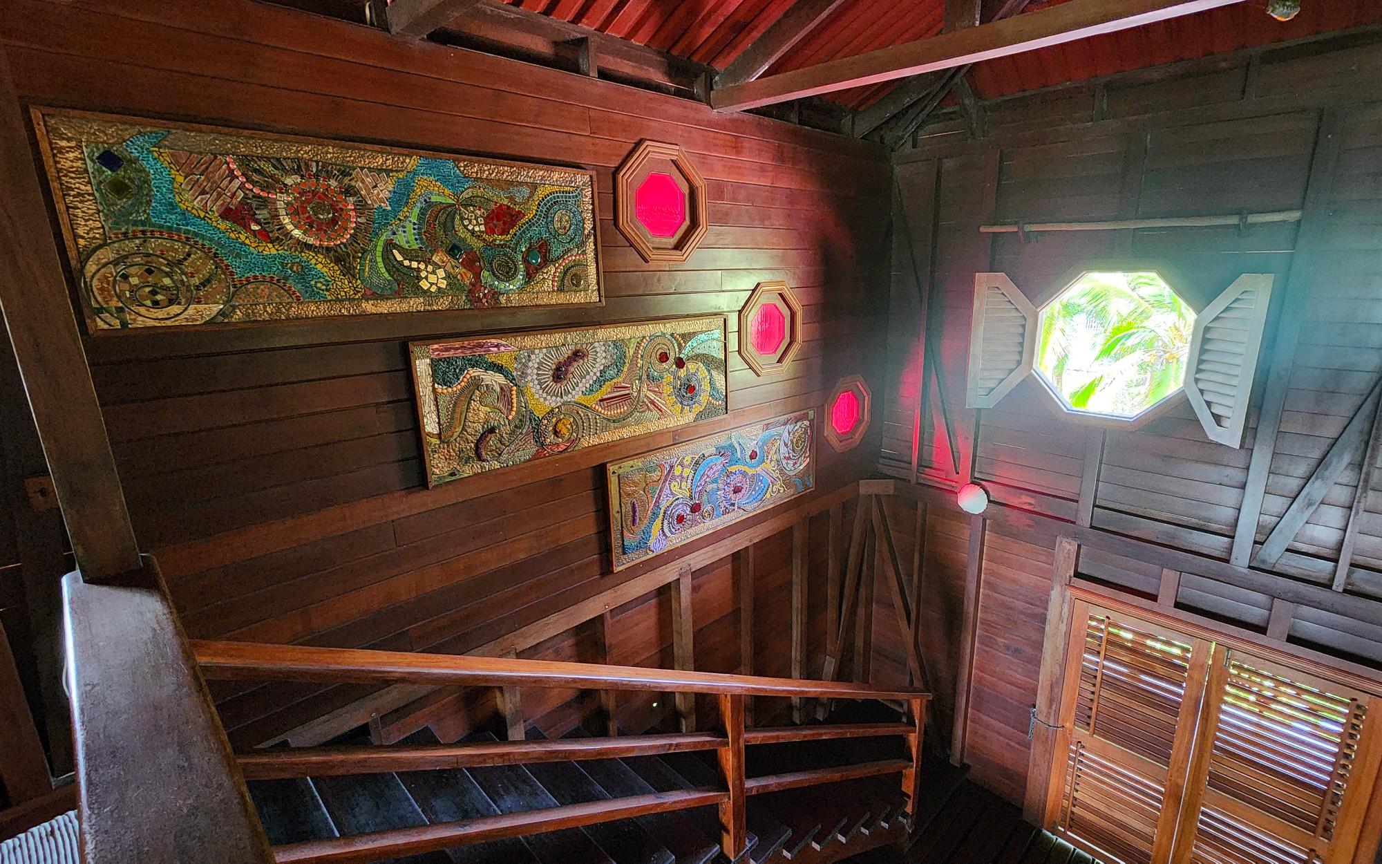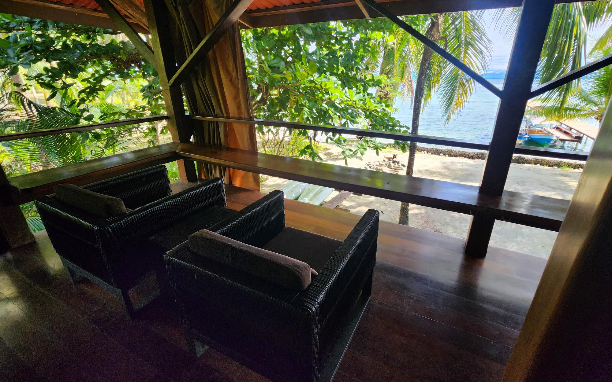 Masterfully crafted, this 3 story home is bejeweled with one of a kind mosaics which reflect glimmers of the Caribbean sun. Built in the traditional hardwoods of the region, the home is resistant to pests and salt and sun damage, providing a sturdy, lower maintenance, beachfront experience. Views of the Zapatillas islands and turquoise waters of the Archipelago can be seen from the outdoor living spaces of all 3 levels, beautifully orientated to the West for fiery sunsets. Sea breezes dance through the home all day thanks to the open air layout. The ground floor of the home has a large covered living space with a path that leads to the calm sea front, perfect for lazy swimming. There is a concrete storage area and a studio garden suite. The white sand beach, calm clear water, and a spectacular coral reef make this special home even more of a once in a lifetime opportunity. Everyone seems to dream of owning a beach, but most beaches in Bocas del Toro are not always accessible due to wave action, this property however offers a rare exception. Located on the leeward side of Isla Bastimentos, the waterfront is protected from the open ocean and swimable all year round. The best of both worlds meet right here, miles of sandy beach to wander and dock space to keep your boat.