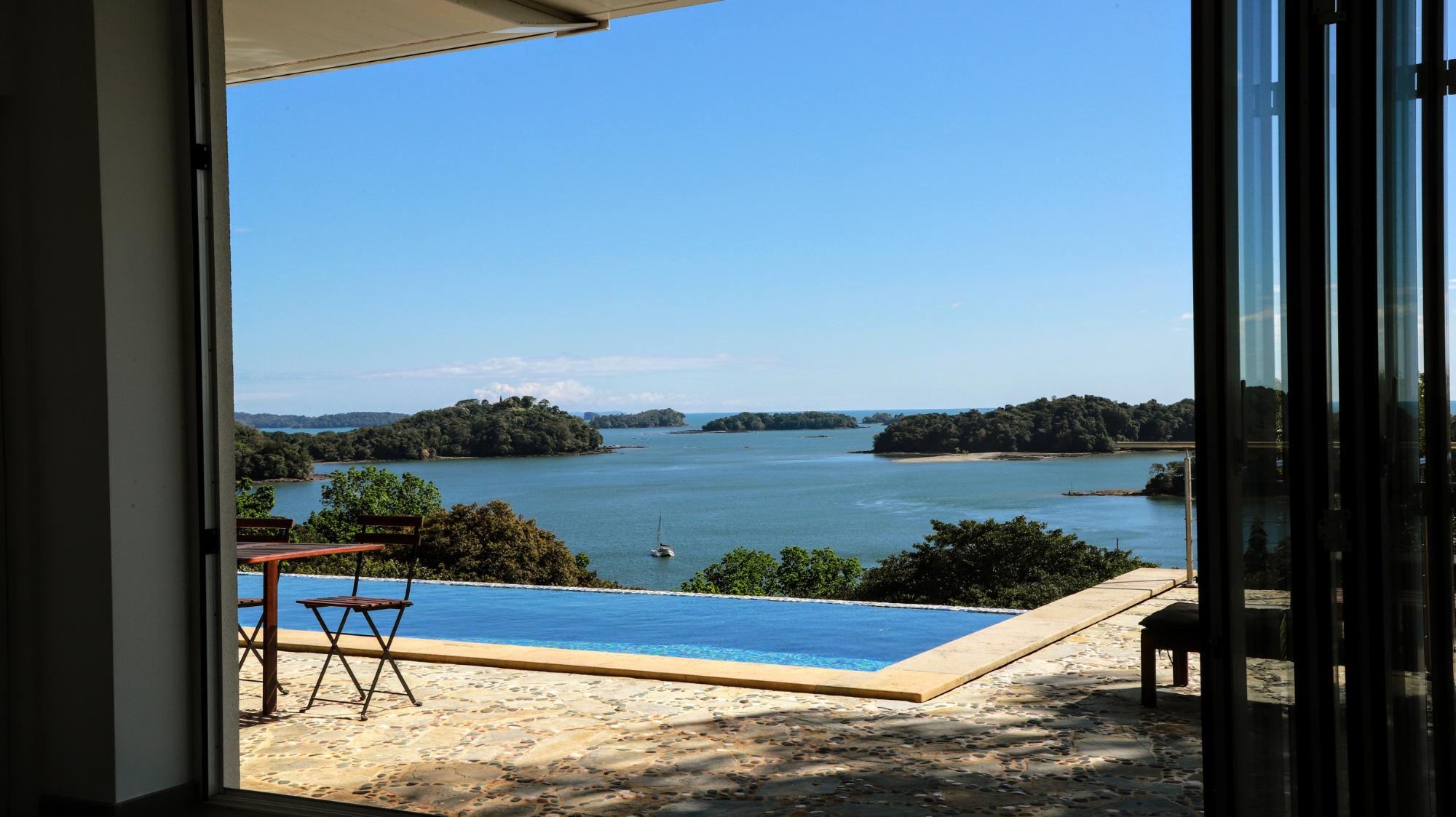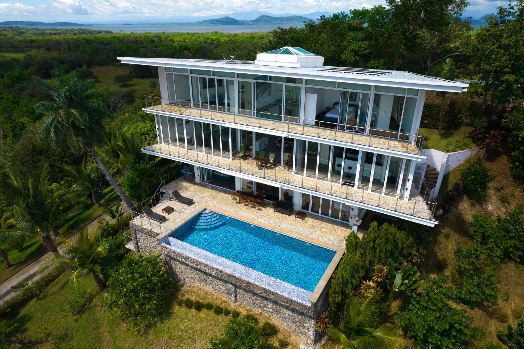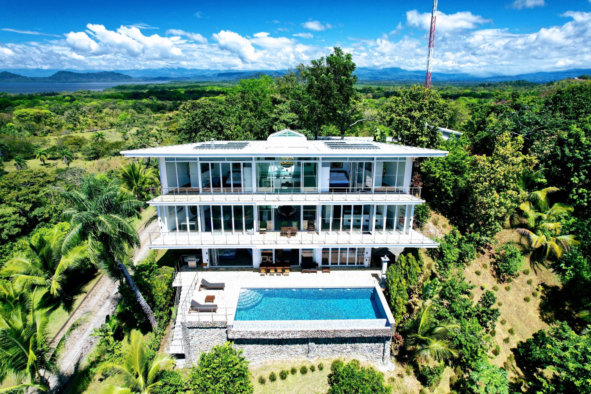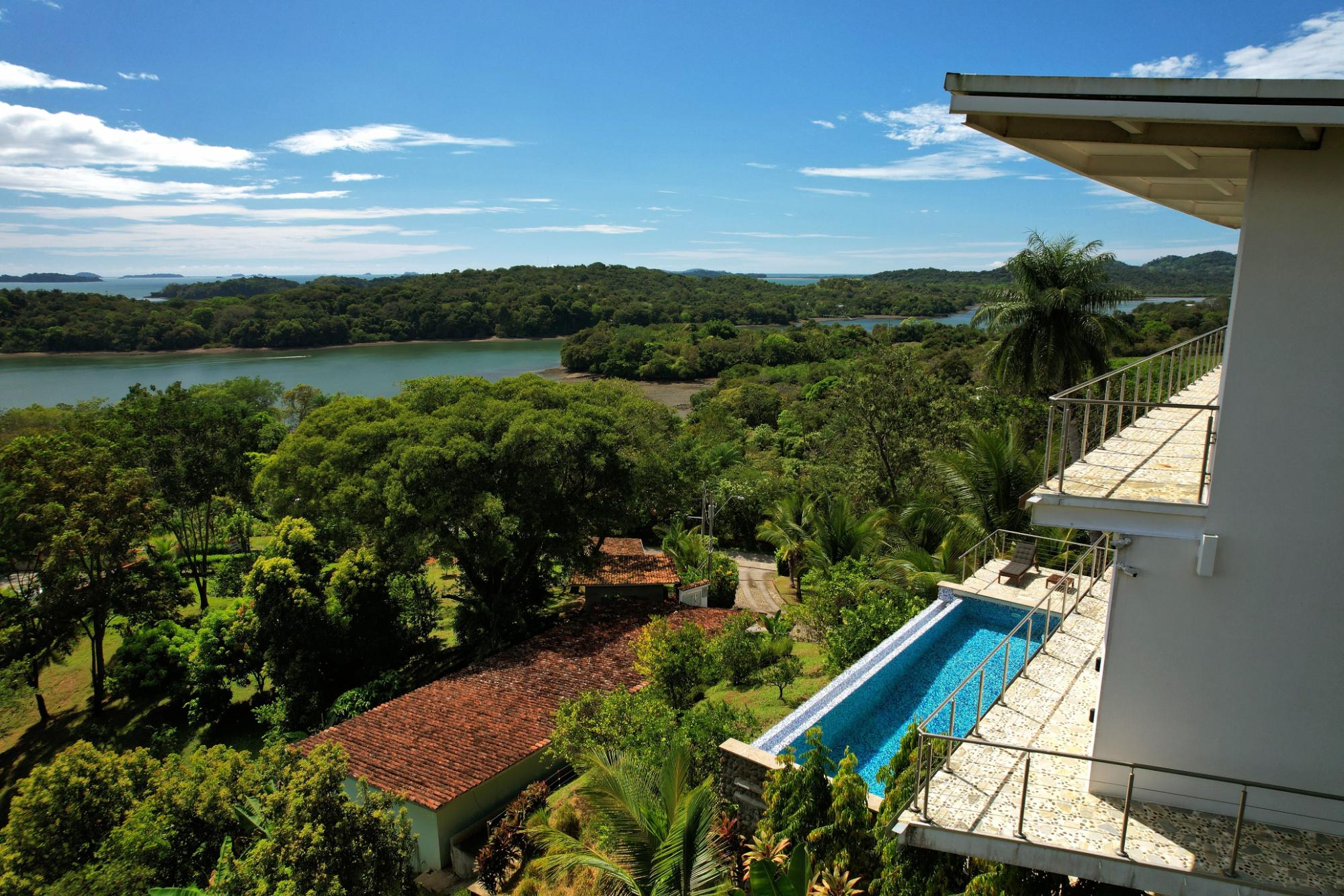 Casa Blanca in Boca Chica, Panama, is a stunning sanctuary perched atop one of the area’s highest points amid thriving orchards. This extraordinary bespoke estate boasts over 4,500 square feet of refined, multi-level living space, where innovative European designed construction and materials enhance the luxurious feeling of this home. The sunlit main level welcomes you with an open-concept gourmet kitchen, dining, and living area, where expansive glass walls blend indoor sophistication with the breathtaking natural surroundings. The first floor hosts two opulent master suites with en-suite baths and generous walk-in closets, while the lower level impresses with a 36‑foot infinity pool, additional bedrooms, a bar, and dedicated laundry facilities. Bathed in natural light and cooled by refreshing mountain breezes, Casa Blanca offers tranquil encounters with local wildlife and complete privacy among mature trees. Inspired by contemporary museums in Paris and New York, its pristine white walls and curated European furnishings create a warm, inviting backdrop—highlighted by a dining room featuring an elegant oval marble table beneath a clear roof that reveals a star‑studded sky. Completing this remarkable property are a detached garage, office, greenhouse, advanced outdoor security, and bonus amenities including a sport‑fishing boat and a well‑maintained pick‑up truck. Experience the perfect fusion of design, luxury, and natural beauty at Casa Blanca.
