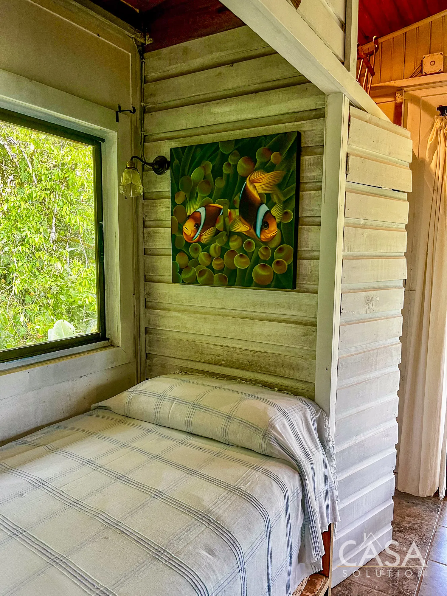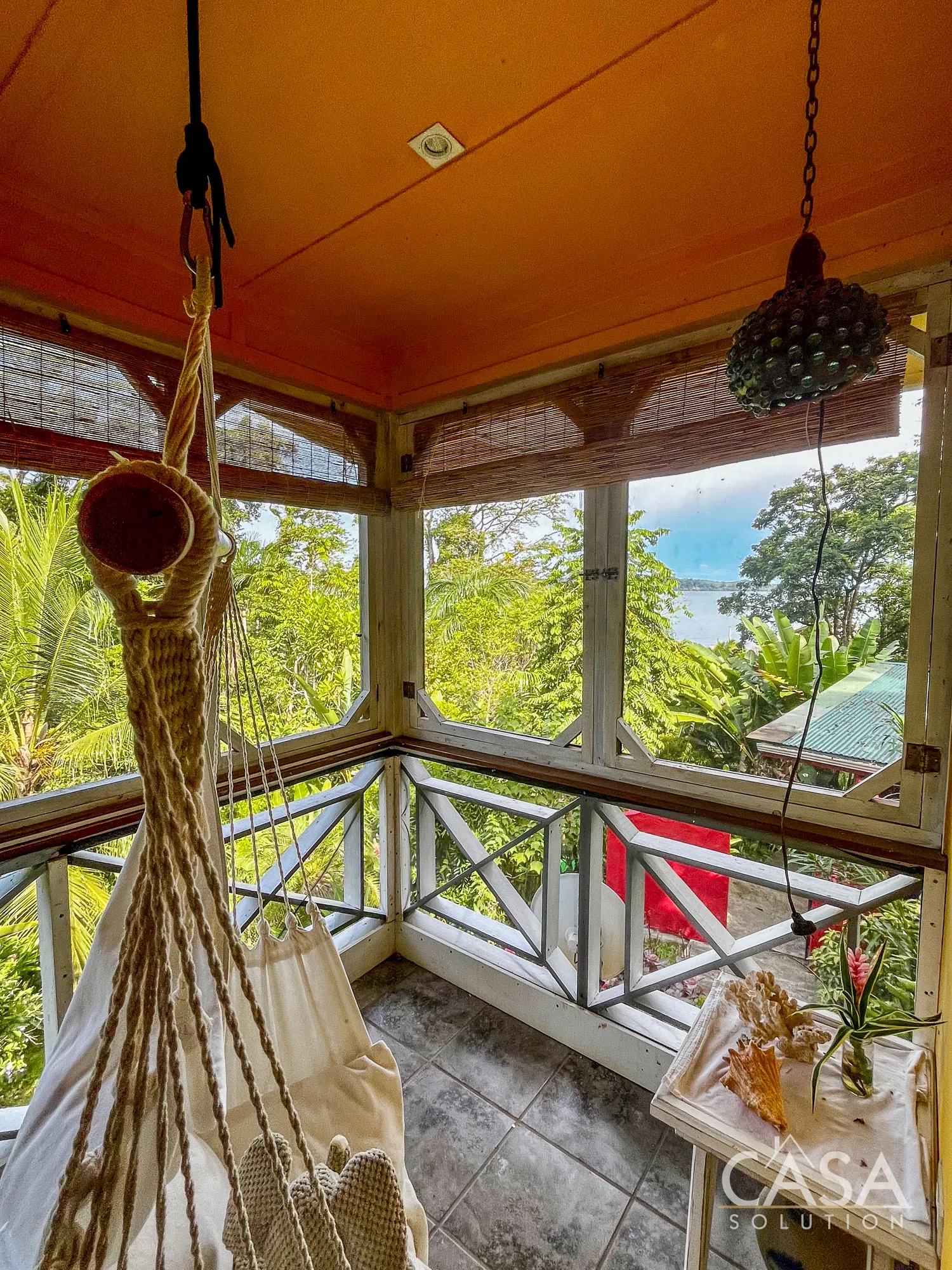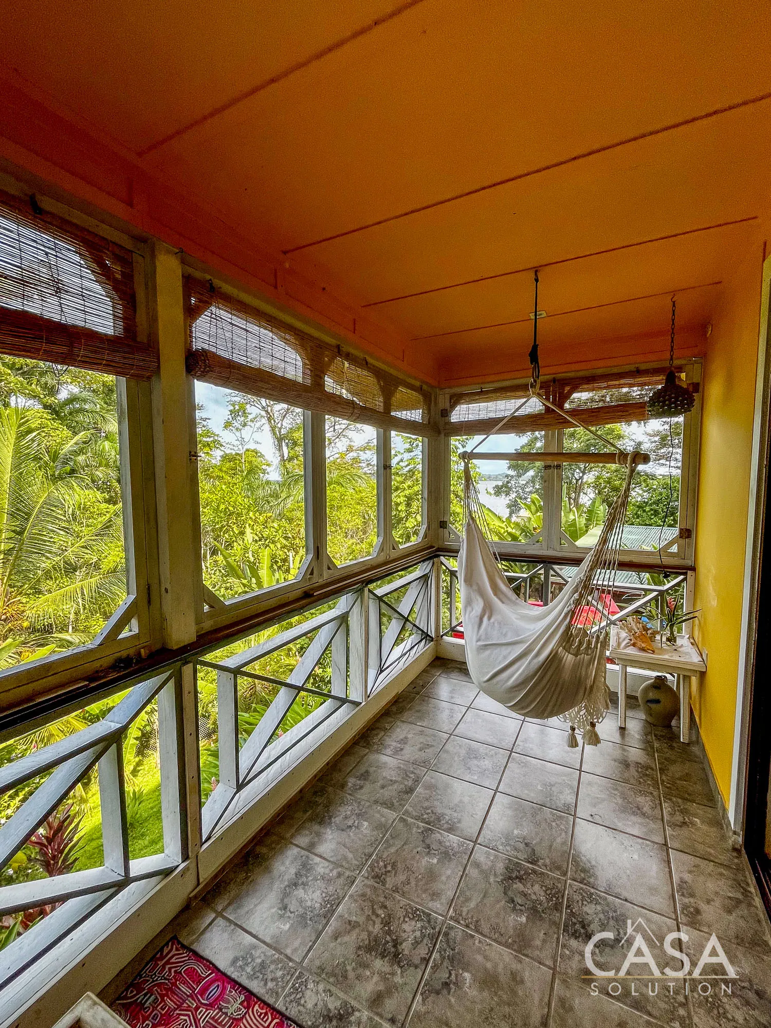 The second casita, built with concrete construction, has an open-concept layout with a porch facing the ocean. From here, you can enjoy views of the water and Bastimentos Island. The structure combines durability and functionality, with tiled floors and bright accent colors that reflect the Caribbean character of the region.