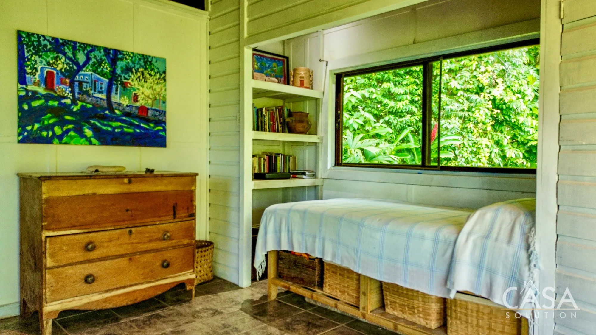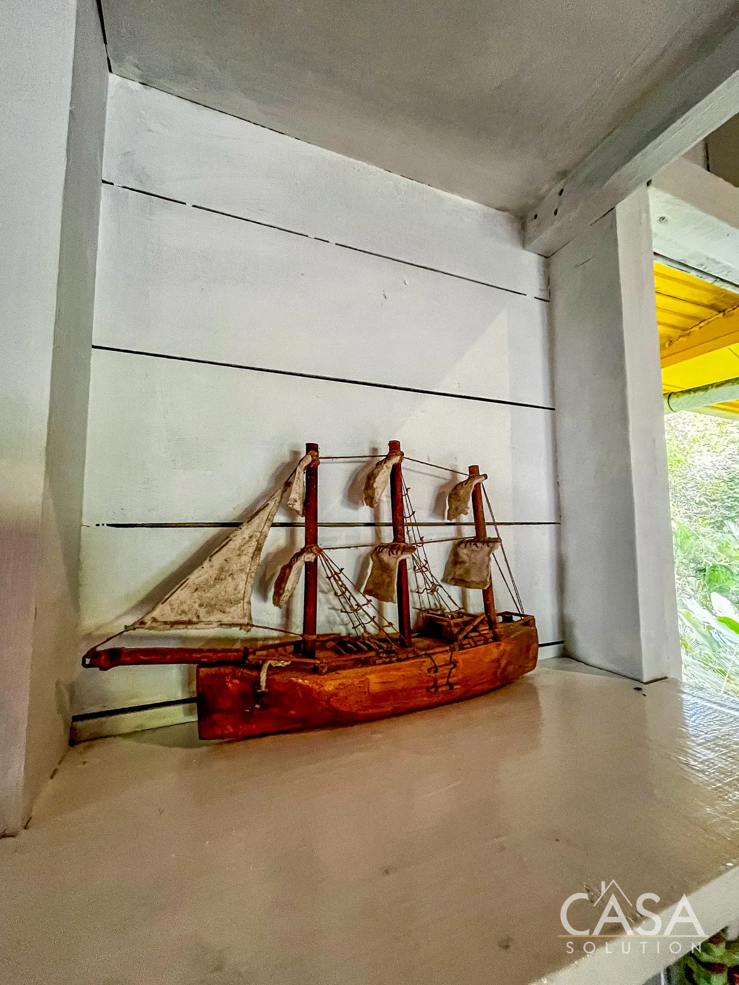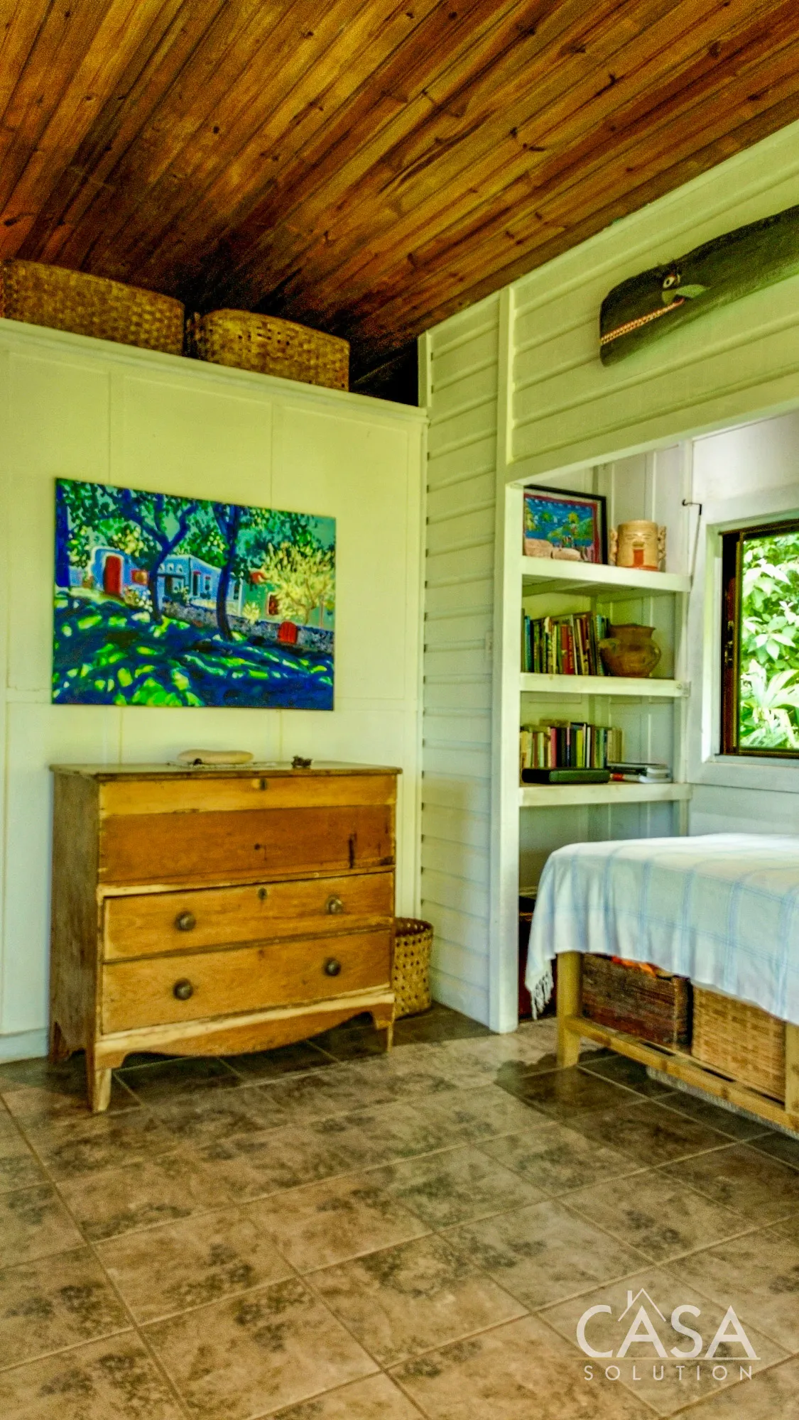 The second casita, built with concrete construction, has an open-concept layout with a porch facing the ocean. From here, you can enjoy views of the water and Bastimentos Island. The structure combines durability and functionality, with tiled floors and bright accent colors that reflect the Caribbean character of the region.