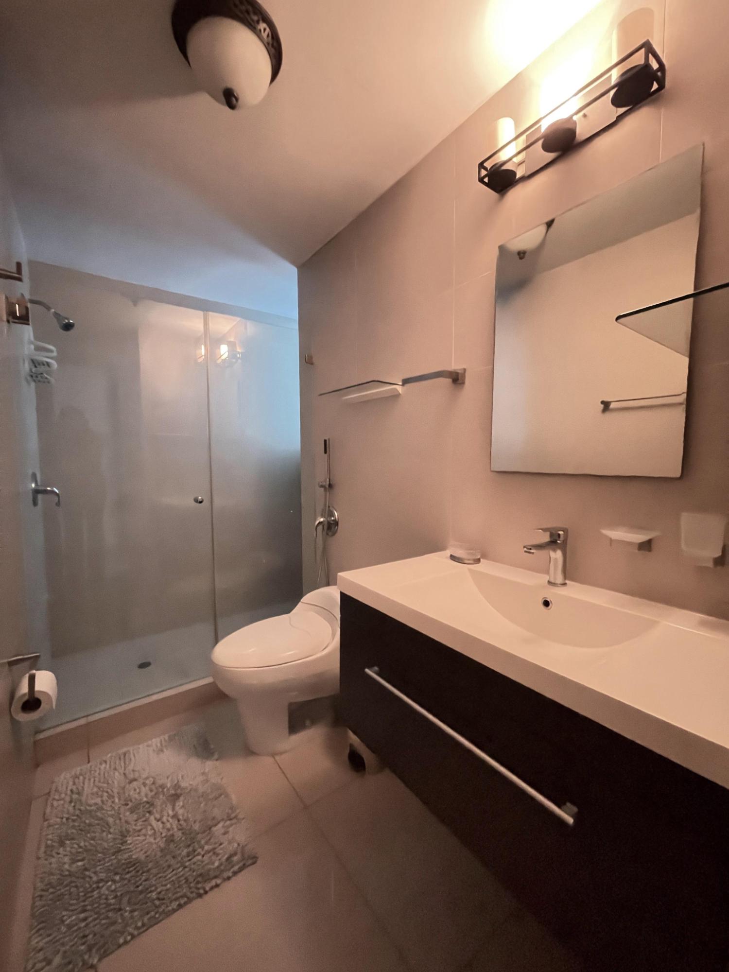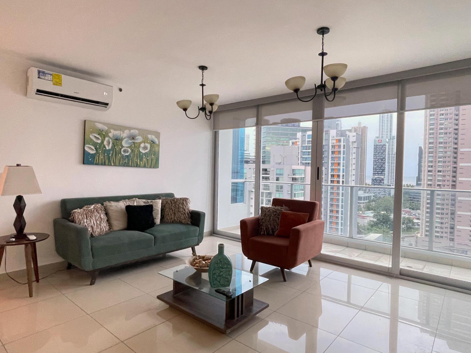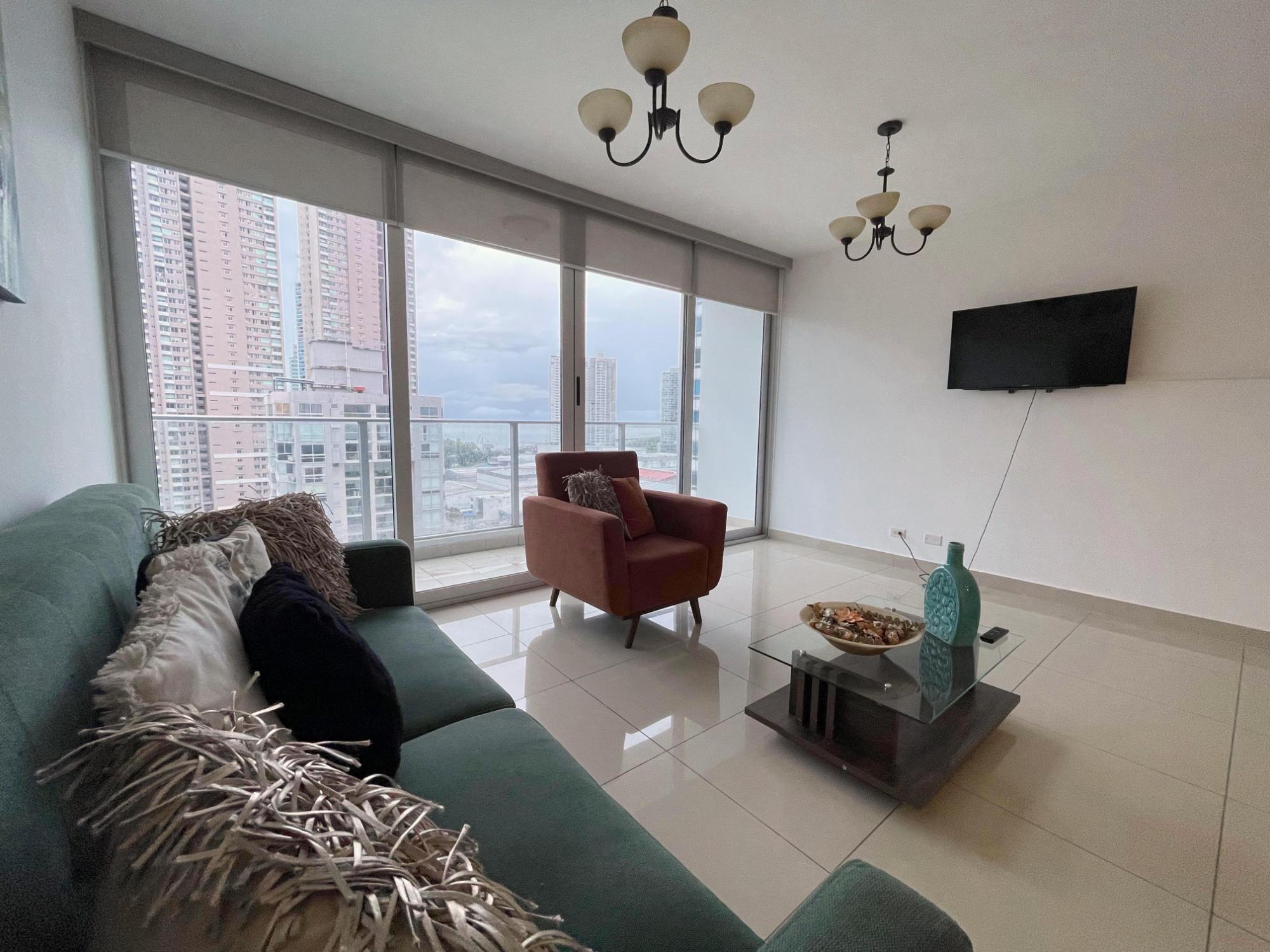 Beautiful, bright, and very comfortable apartment in Top Towers, Costa del Este. Enjoy spectacular views from this fully furnished apartment with a kitchenette and balcony. It features 106 m² (1,150 ft²) distributed across 2 bedrooms, 2 full bathrooms, a maid's quarters, 2 balconies (one in the living room and one in the master bedroom), and 1 parking space. The building offers luxury amenities, including high-speed elevators, a fully equipped power generator, 24-hour security, private parking, an extensive social area, a gym, a playground, 3 swimming pools, a Jacuzzi, a sauna, a movie theater, a squash court, a game room, and a solarium. An excellent opportunity to live in comfort, style, and with every convenience at your fingertips.
