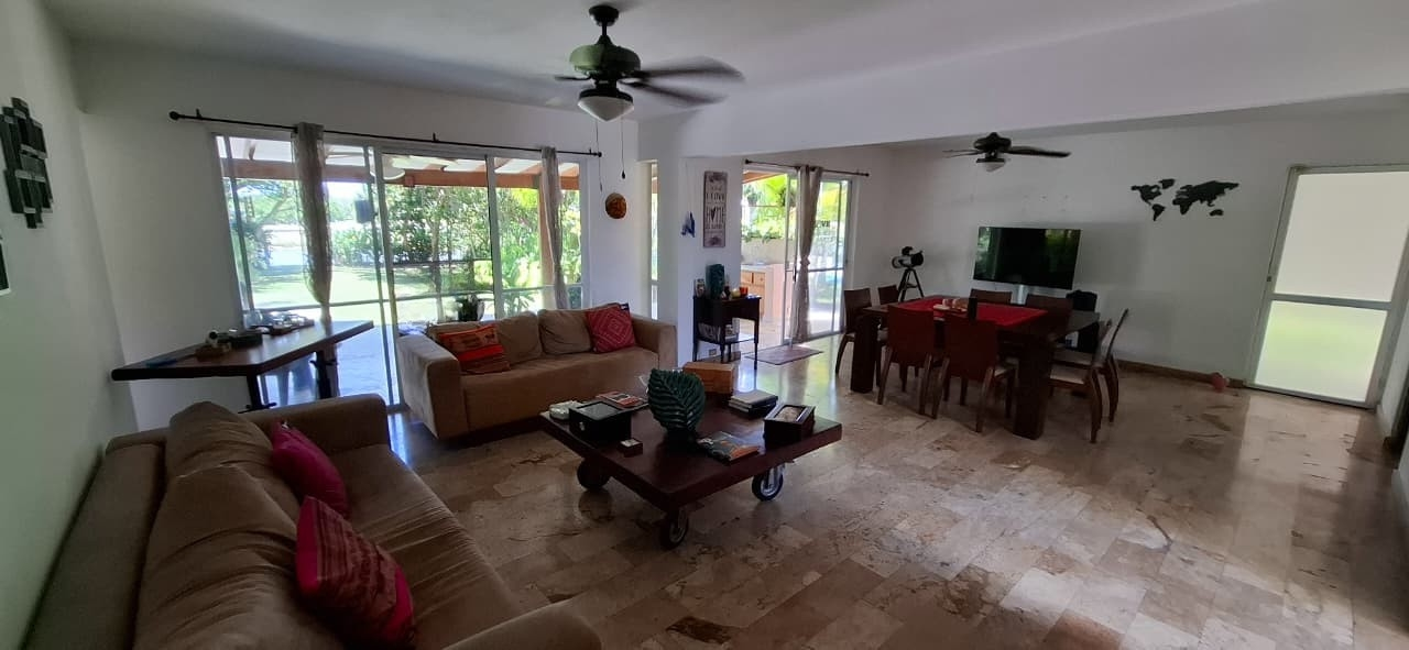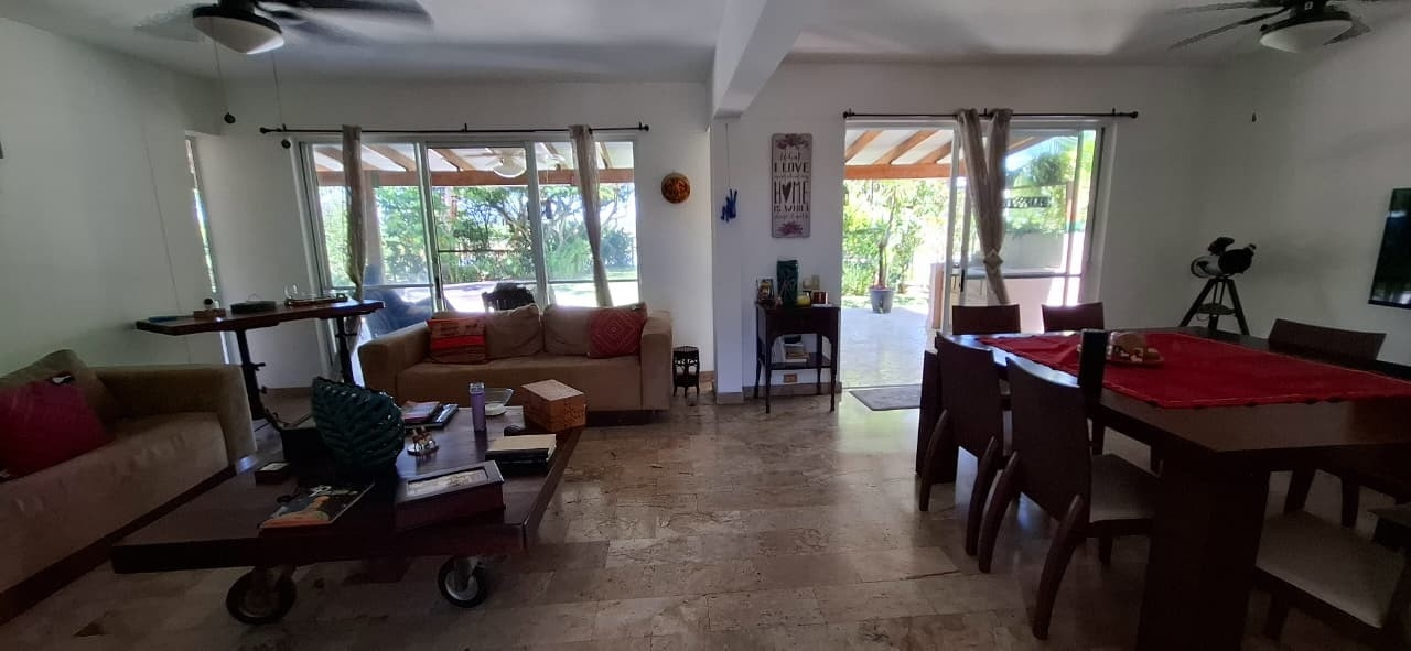 House for Sale – Villas del Decameron Enclosed Area – Ground Floor: Foyer Living room Dining room Kitchen (currently under renovation; will be delivered remodeled) Laundry area Storage room 1 bedroom 1 full bathroom ½ guest bathroom Marble floors Concrete slab ceiling with smooth finish and gypsum ceiling Concrete block walls, plastered and painted Sliding aluminum and glass windows Bathrooms with imported fixtures, marble wall finishes up to ceiling height in the shower area, and bathtub Enclosed Area – Upper Floor: Family room 3 bedrooms 2 full bathrooms Marble floors Gypsum ceiling Clay tile roof over exposed wooden structure In bathrooms: concrete slab with smooth plaster finish Sliding aluminum and glass windows Bathrooms with imported fixtures and marble finishes Description: The property offers a comfortable and functional layout, with excellent natural lighting and high-quality finishes throughout. The kitchen is currently under renovation and will be delivered fully remodeled. It is located within an exclusive and secure residential community in Villas del Decameron, with a privileged location near the sea, making it ideal as a permanent residence, beach home, or investment property.