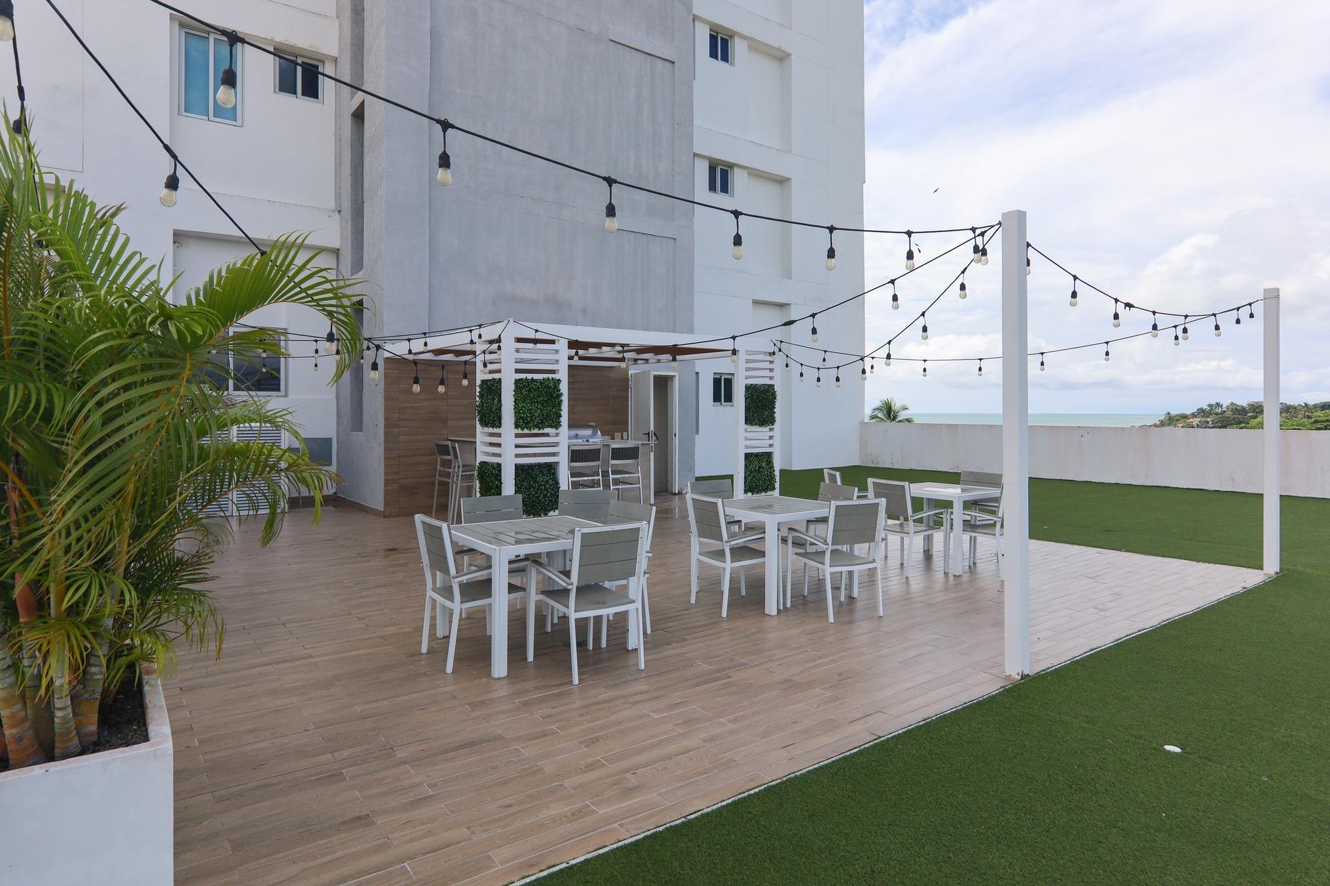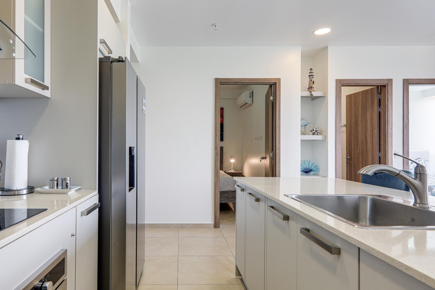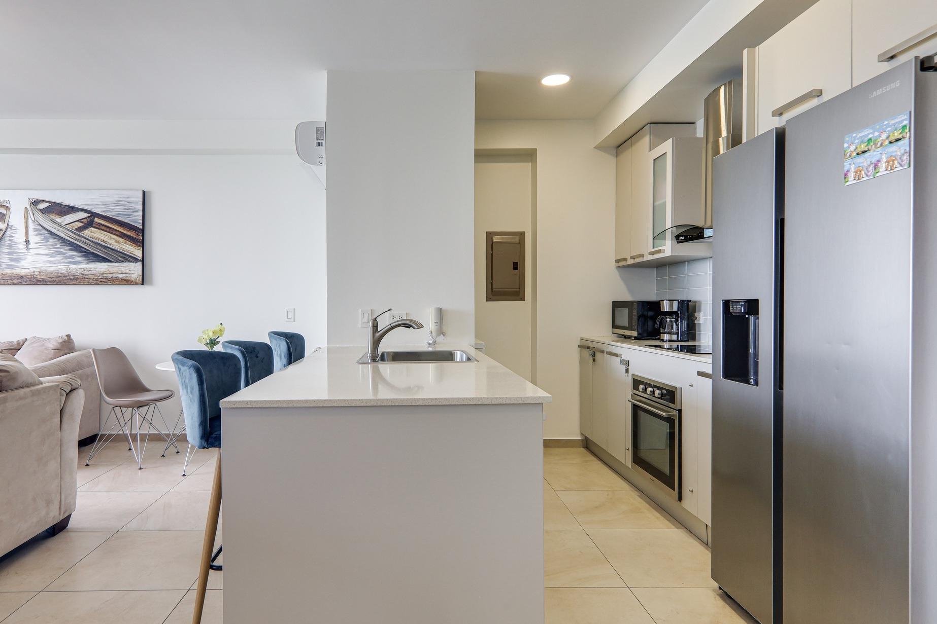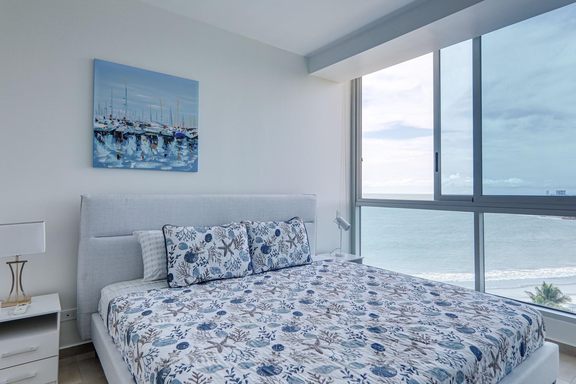 Features of this apartment include: 70 m2 of construction; stunning views of the tranquil fishing cove and the Pacific Ocean from the living/dining room and master bedroom; balcony with glass panels; open kitchen with stainless steel appliances; master bedroom with king bed; second bedroom with queen bed; full external bathroom; private laundry room with on-demand water heater; one assigned parking space; very low maintenance fee of only $140/month, which includes water and trash collection