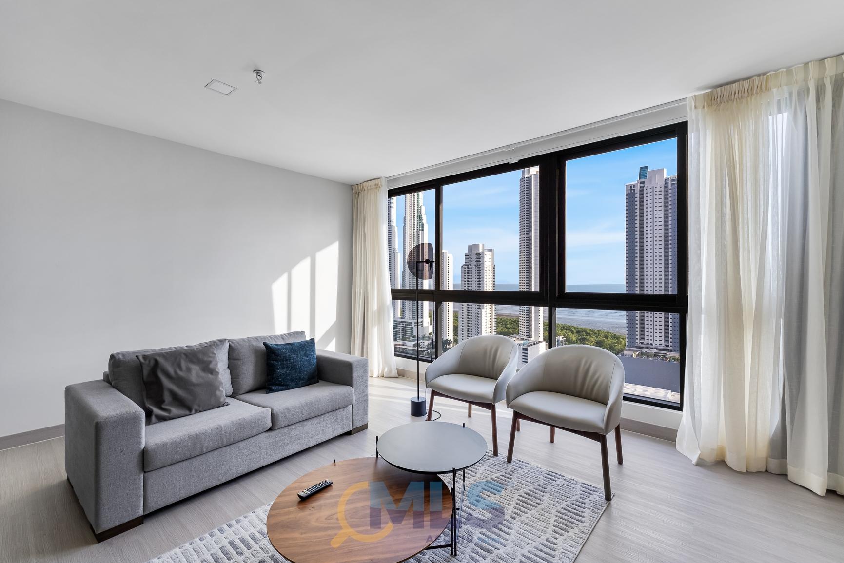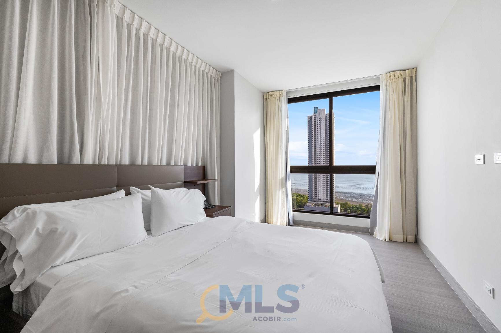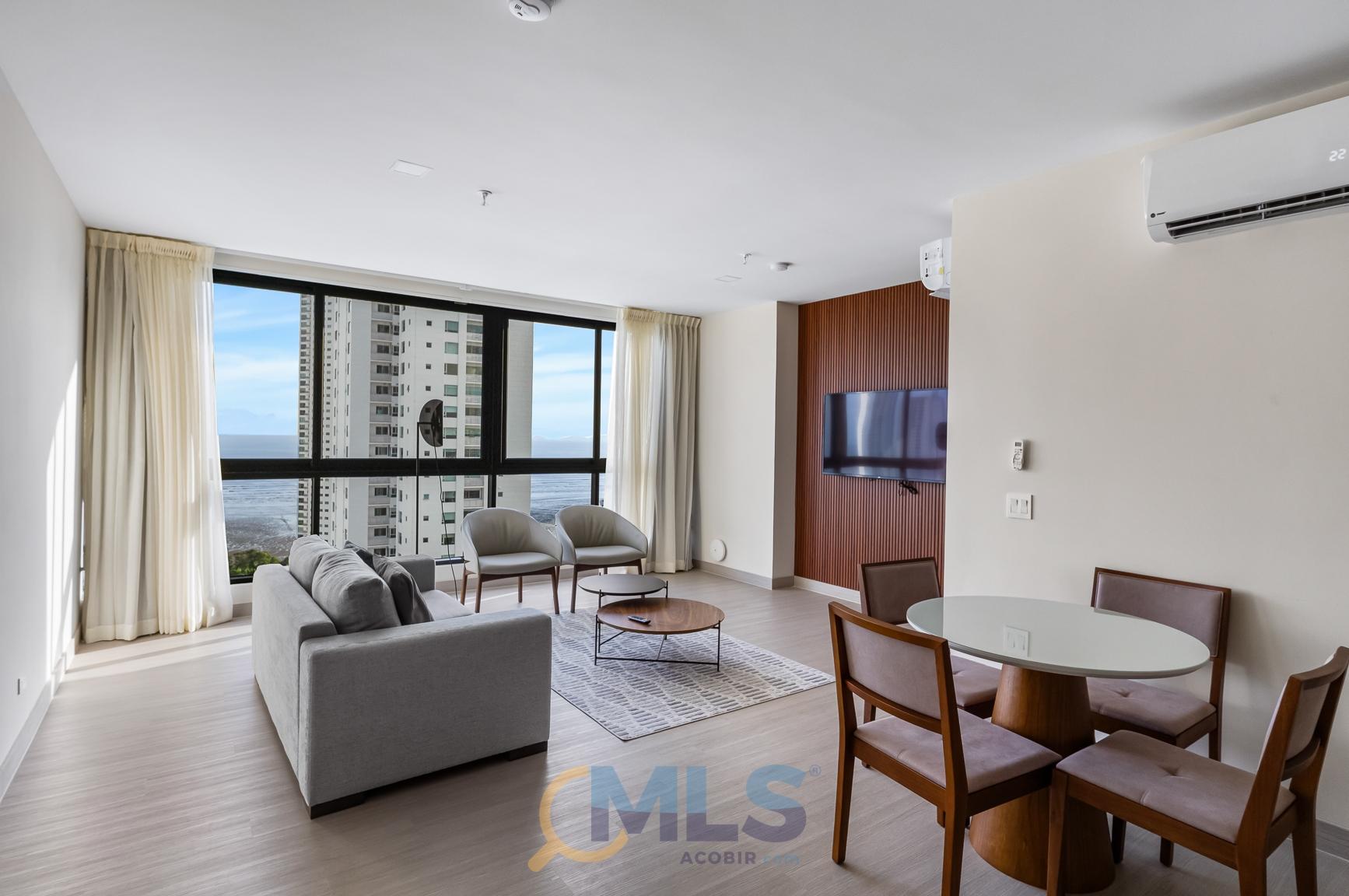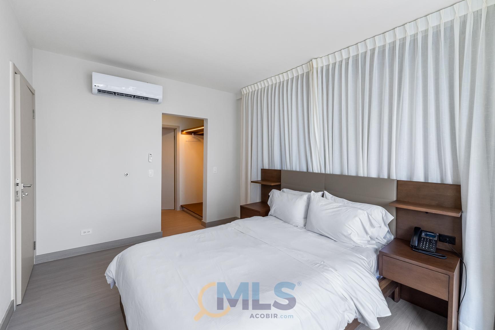 76 sq m (800 sq ft) apartment for sale, with one bedroom (convertible to two), two bathrooms, and fully equipped, ideal for investment. Currently, it features one bedroom with a walk-in closet, ocean views, two full bathrooms, a laundry closet, and is generating rental income. Includes: modern furniture, hotel-style curtains (blackout and sheer), appliances, kitchen equipment (including dishes, pots, utensils, etc.), three air conditioning units (ready for the second bedroom), a TV, and one parking space. The Arcadia del Este building is the only tower in Costa del Este with license for short-term rentals. It features a front desk, coffee shop in ground floor, and modern social areas including: a fully equipped gym, rooftop pool, terrace, squash court, coworking space, sauna, clubhouse, and game room.