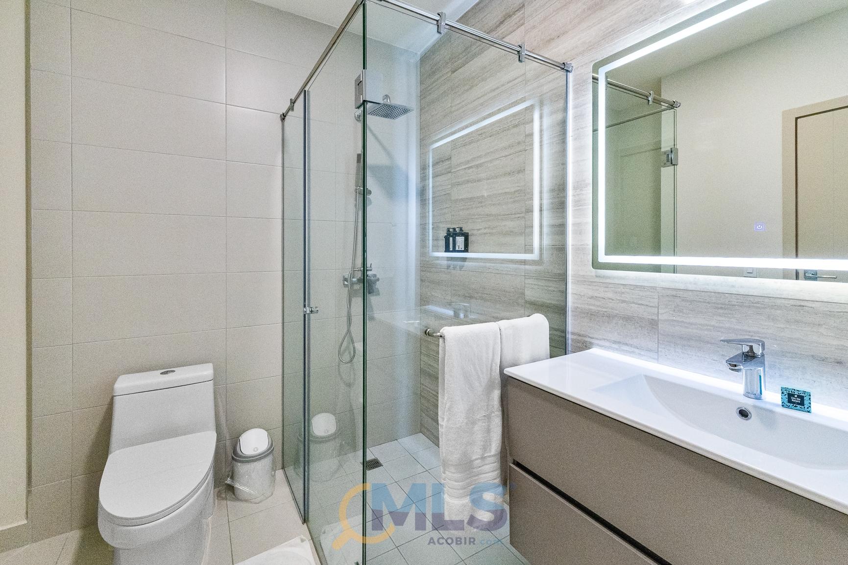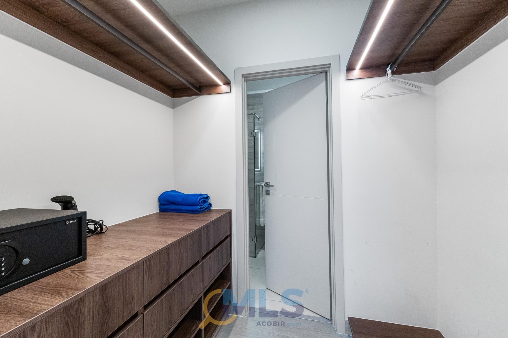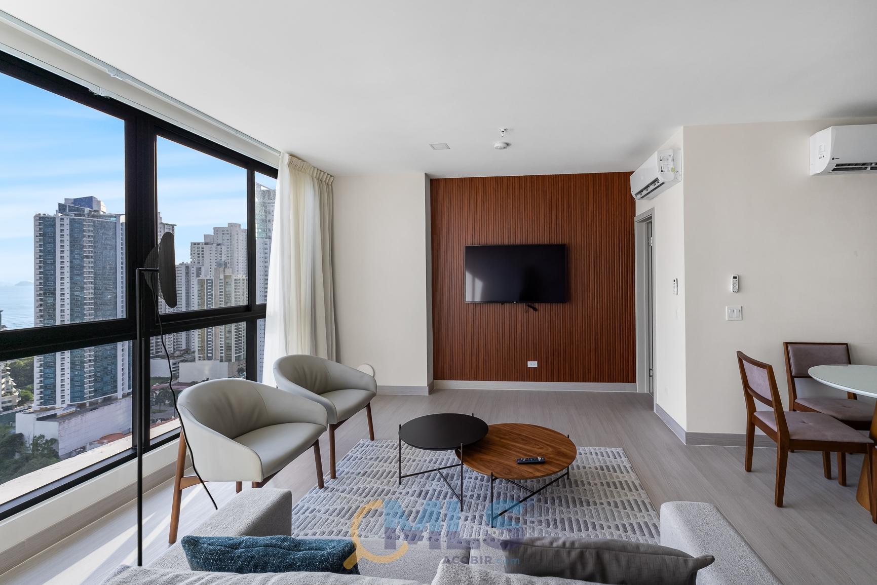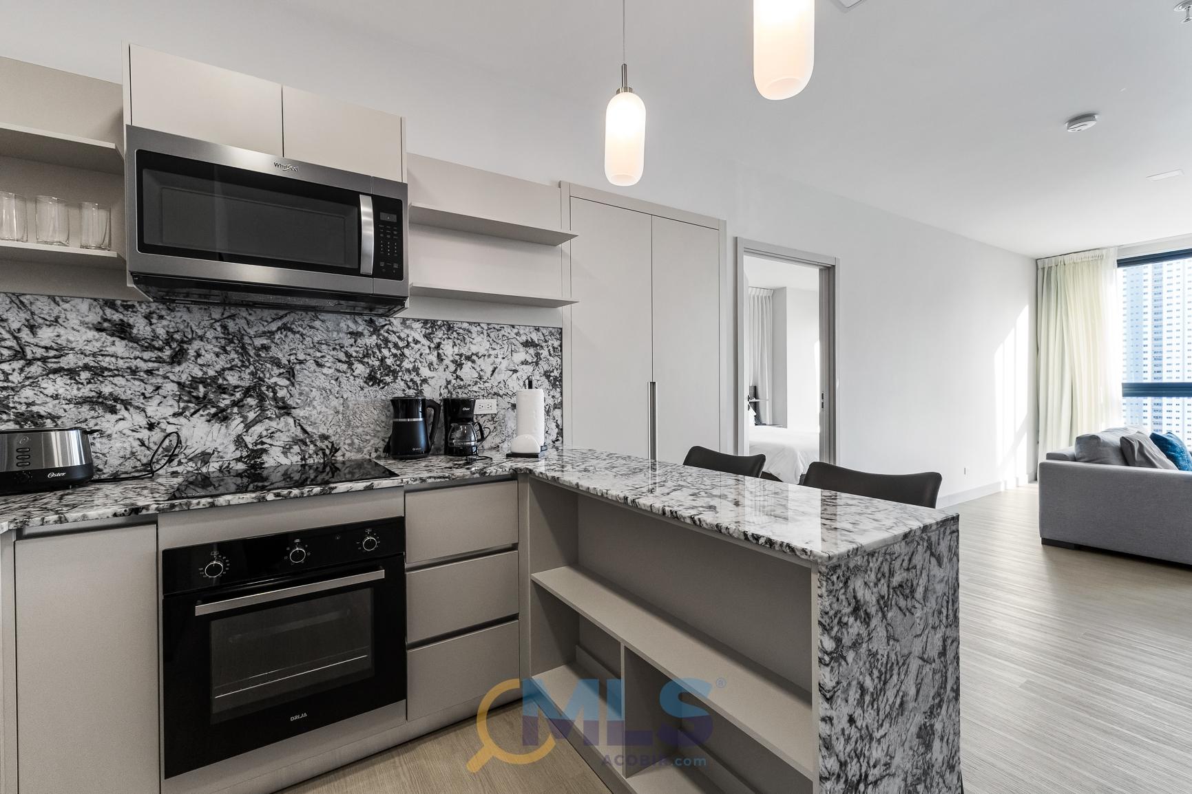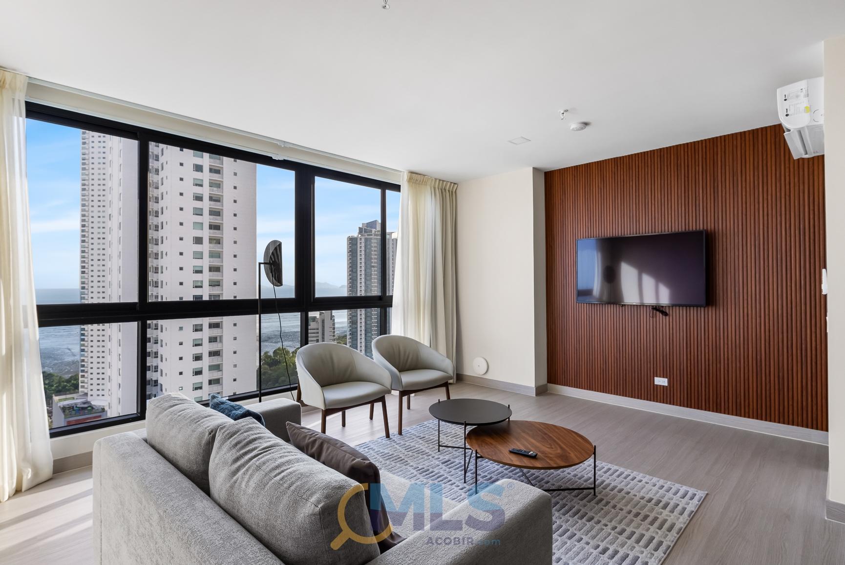 76 sq m (800 sq ft) apartment for sale, with one bedroom (convertible to two), two bathrooms, and fully equipped, ideal for investment. Currently, it features one bedroom with a walk-in closet, ocean views, two full bathrooms, a laundry closet, and is generating rental income. Includes: modern furniture, hotel-style curtains (blackout and sheer), appliances, kitchen equipment (including dishes, pots, utensils, etc.), three air conditioning units (ready for the second bedroom), a TV, and one parking space. The Arcadia del Este building is the only tower in Costa del Este with license for short-term rentals. It features a front desk, coffee shop in ground floor, and modern social areas including: a fully equipped gym, rooftop pool, terrace, squash court, coworking space, sauna, clubhouse, and game room.