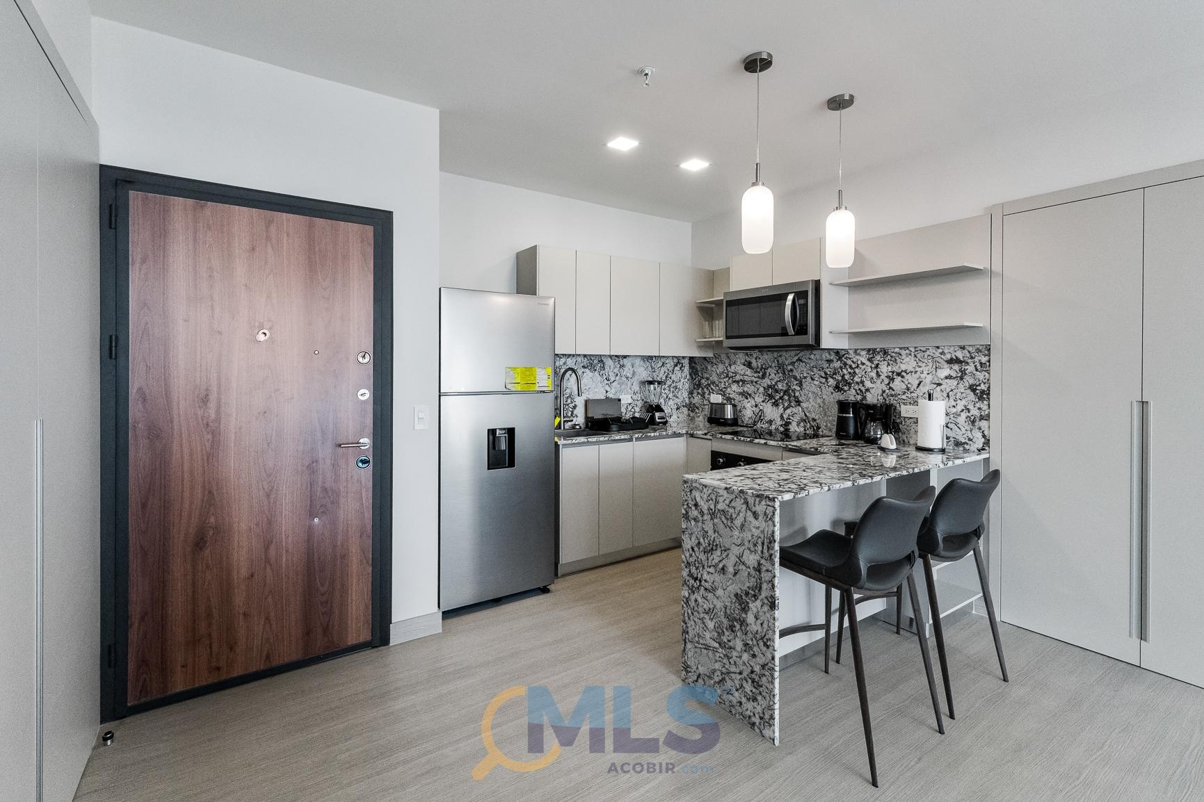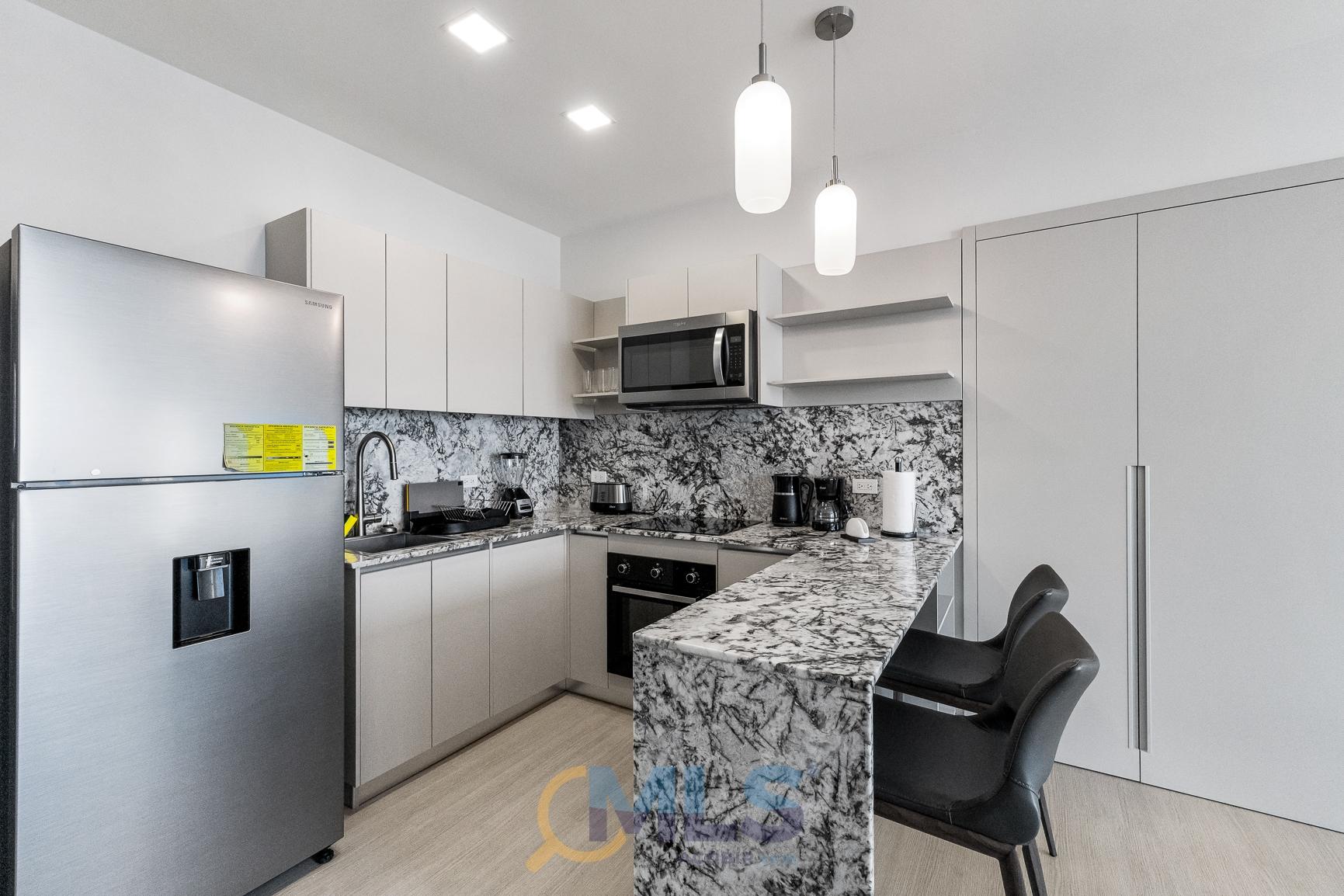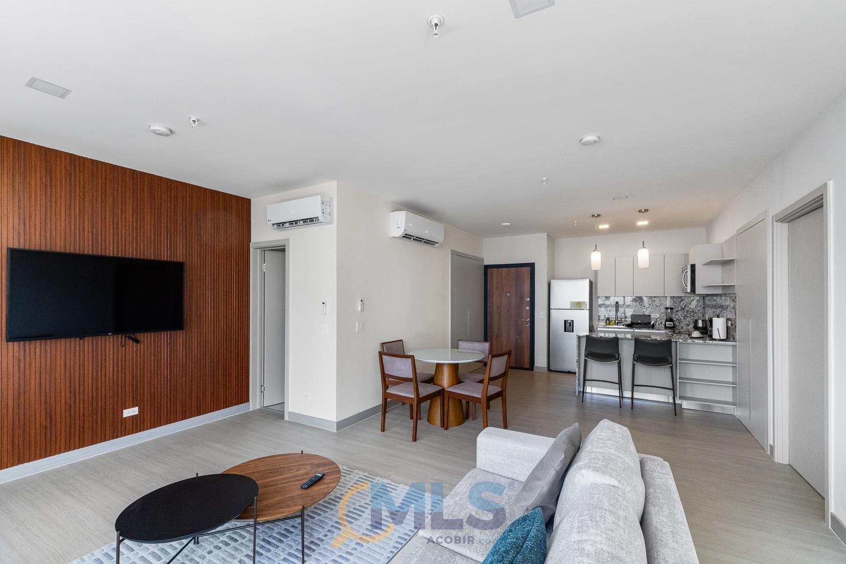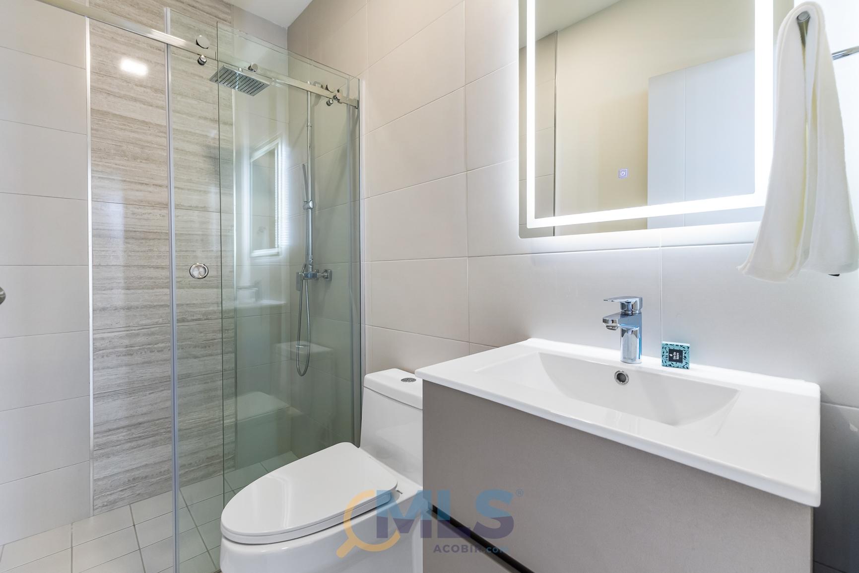 76 sq m (800 sq ft) apartment for sale, with one bedroom (convertible to two), two bathrooms, and fully equipped, ideal for investment. Currently, it features one bedroom with a walk-in closet, ocean views, two full bathrooms, a laundry closet, and is generating rental income. Includes: modern furniture, hotel-style curtains (blackout and sheer), appliances, kitchen equipment (including dishes, pots, utensils, etc.), three air conditioning units (ready for the second bedroom), a TV, and one parking space. The Arcadia del Este building is the only tower in Costa del Este with license for short-term rentals. It features a front desk, coffee shop in ground floor, and modern social areas including: a fully equipped gym, rooftop pool, terrace, squash court, coworking space, sauna, clubhouse, and game room.