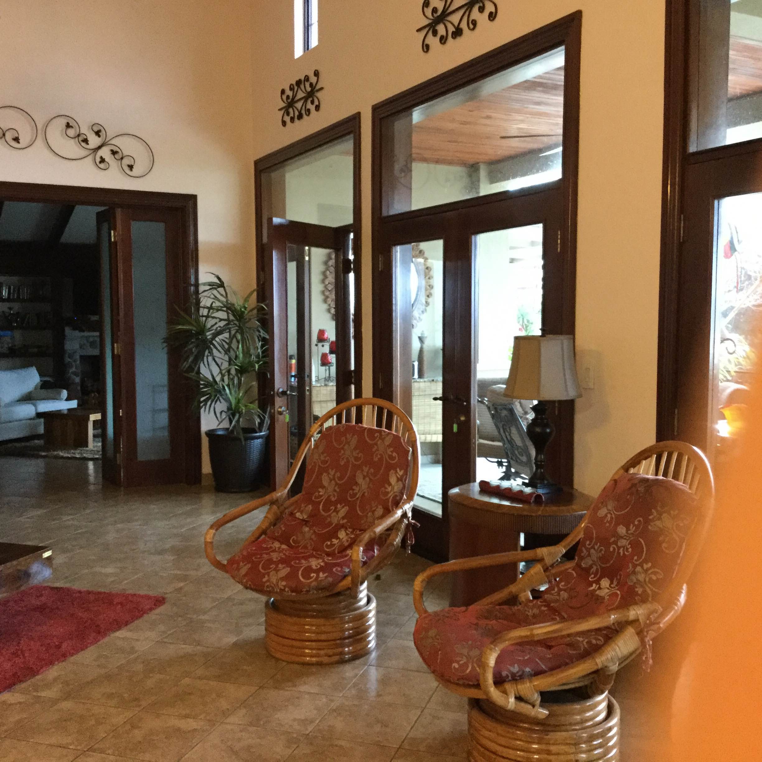 El principal balcón techado afuera de la sala ofrece asombrosas y panorámicas vistas a las montañas, el valle de Boquete y el océano Pacifico a la distancia. El otro balcón ofrece una vista cercana a los picos del Volcán Baru. Este sitio provee una vista intima al esplendor de Baru.