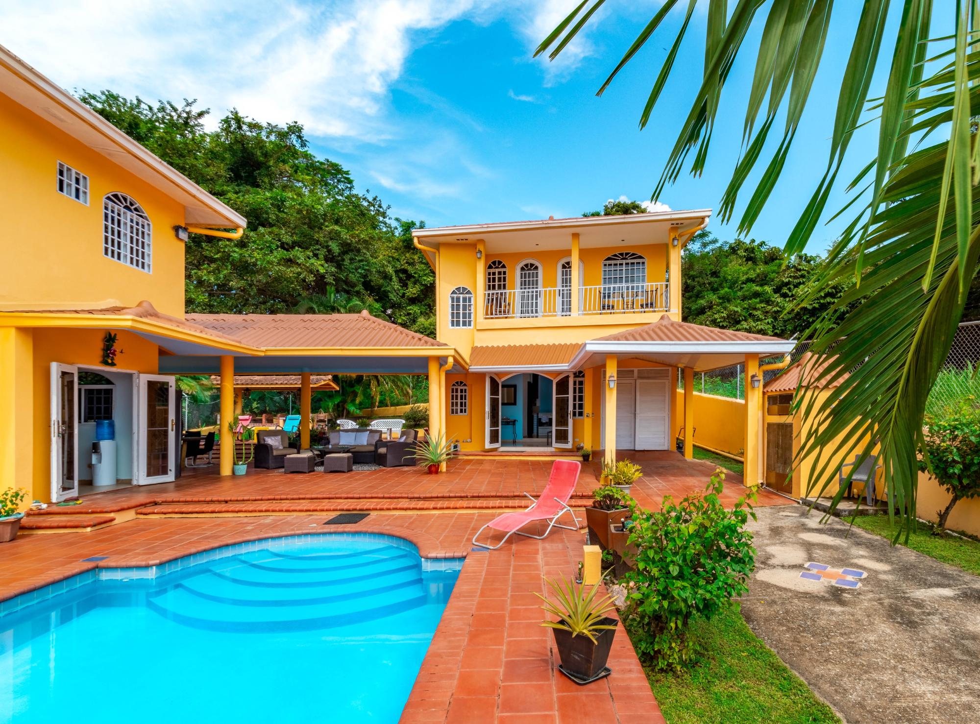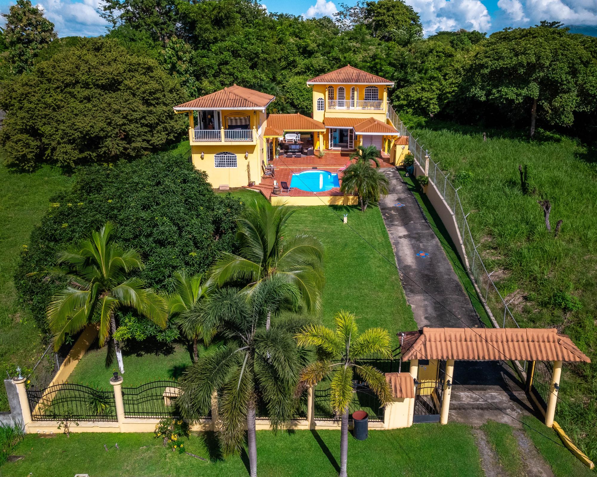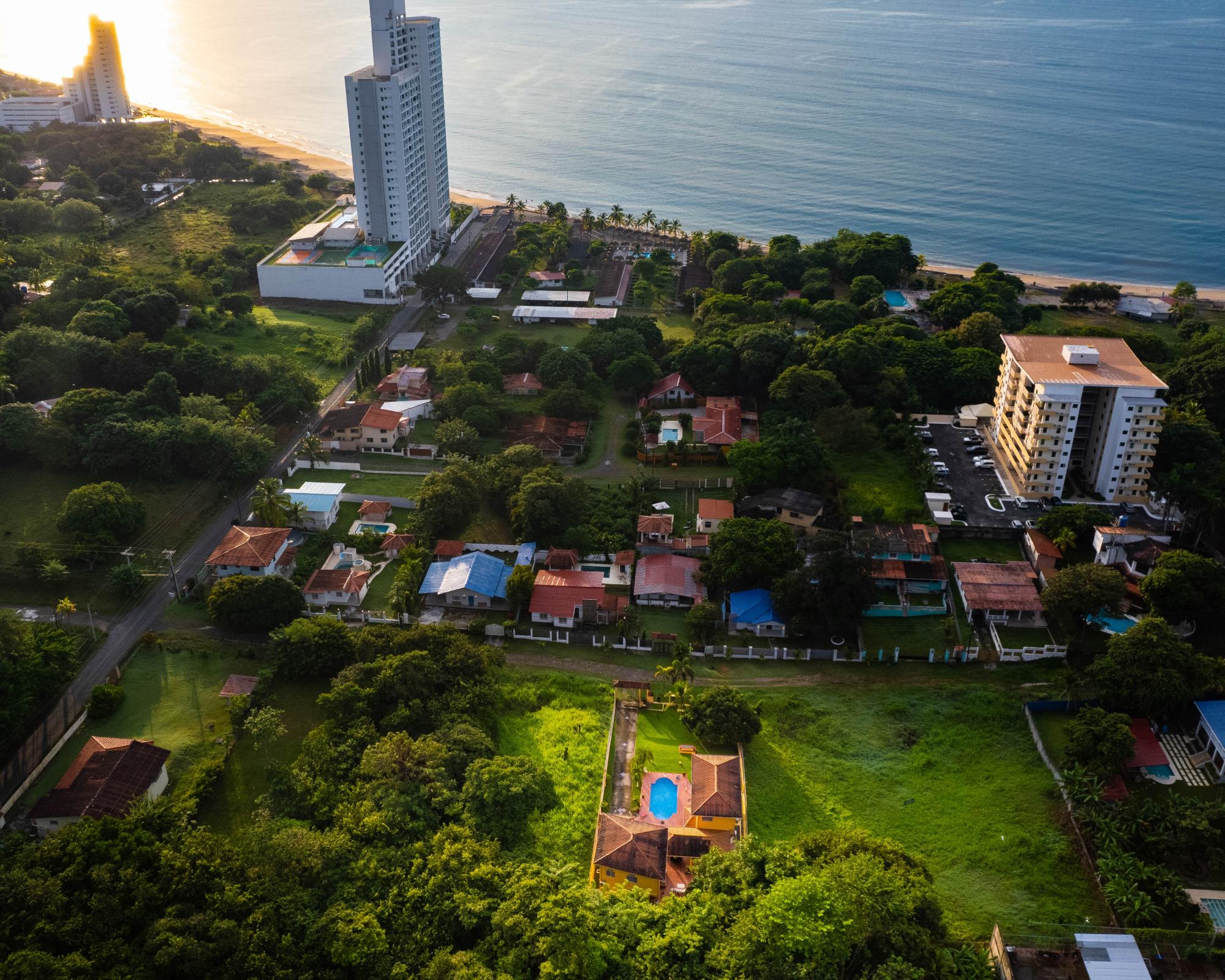 The property sits on a large, well-kept lot with mature trees and is fully fenced with an electric gate. Both buildings are two-story homes and between them is a large covered patio area and a large pool. With two private houses you will have great flexibility of uses: living, renting, hosting family, etc. Both houses come fully equipped with appliances, furniture, air conditioning, blinds, and many accessories. Located less than 500 meters from the beach, you and your guests will be able to easily walk the two blocks and jump into the ocean in less than 10 minutes. Enjoy total privacy in this quiet neighborhood, listen to the ocean waves from your poolside terrace, and never worry about co-ownership policies or special assessments because it is an independent lot. Features of this property include: Main House: 2 bedrooms 2 bathrooms Full and well equipped kitchen Air conditioning in bedrooms and living room Security doors and windows Balcony with ocean views Second House: 2 bedrooms 2 bathrooms Kitchenette Air conditioning in bedrooms and living room Security doors and windows Balcony with ocean views Land: 1,000 m2 of titled land Beautiful pool Two well-equipped kitchens Covered patio with outdoor furniture Hot water system Internet connection and cable TV Laundry room with washer/dryer Fully fenced land Automatic electric gate with remote control Pool pump room Storage room Many mature trees Secure off-street parking and walkway Water reserve tank Large gas tanks outside the house No maintenance fees or co-ownership restrictions Type of Possession: Corporation No mortgage