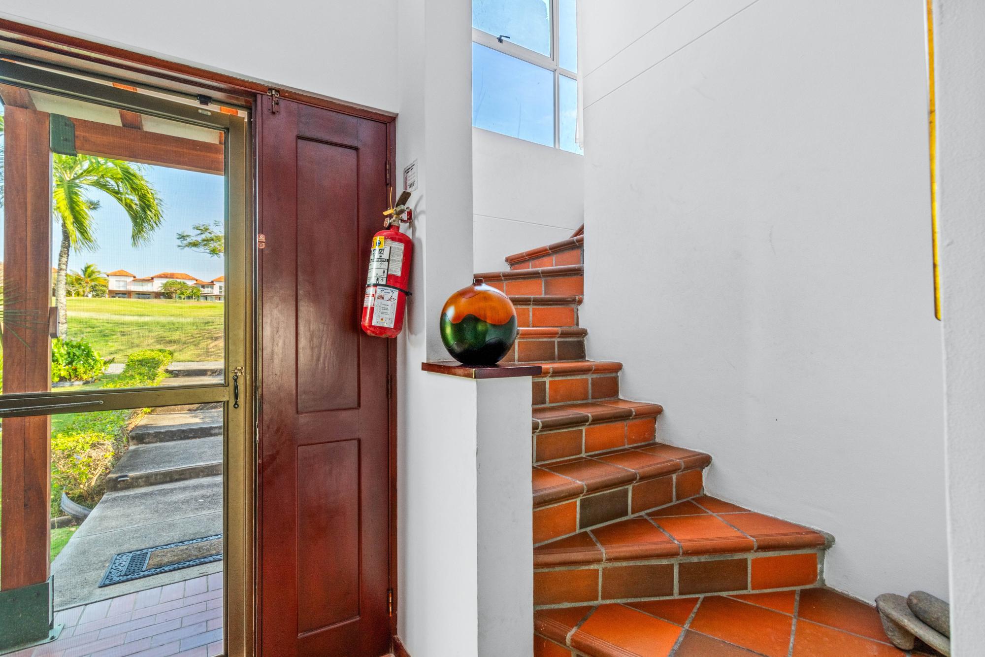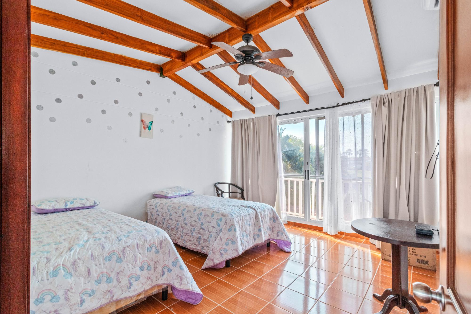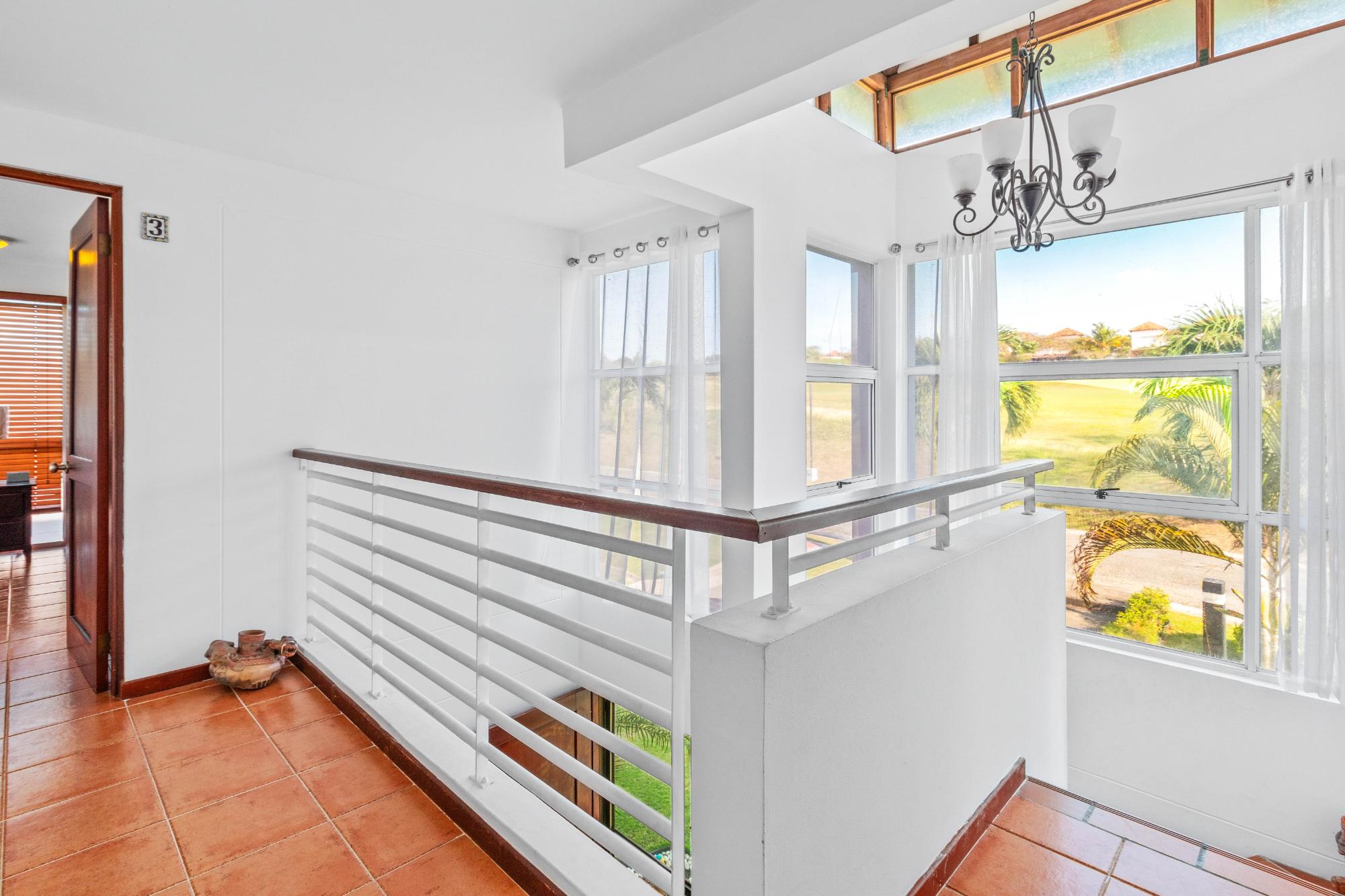 This two-story, 4-bedroom house is located at the Costa Blanca Golf & Beach Resort, within the Royal Decameron Resort in Rio Hato, Panama. Priced competitively, it offers exceptional views of the golf course and a private beach club. The house spans 232 m² (2,500 sqft) on a 665 m² (7,160 sqft) lot, with a spacious design perfect for large families or those looking for rental potential due to its lock-off design. Key features: - 4 bedrooms, 4.5 bathrooms - Master bedroom with king-size bed, balcony, and ensuite - Fully furnished, with new air conditioning and ceiling fans in every room - Open-plan kitchen with modern appliances - Large covered terrace with BBQ and bar, overlooking the golf course and lakes - Private entrance and 24-hour security - Extended carport and additional parking - HOA includes 3 golf memberships, beach club access, water, propane, and 24/7 security The property is situated in a peaceful area with only one neighbor and is minutes away from the beach club. It's part of the larger Decameron resort, offering access to golf, swimming, and dining. The house also comes with an opportunity for expansion, as all necessary infrastructure for a future pool is already in place. Ownership is through a dedicated corporation, with current tax exemptions until 2028, after which taxes will be approximately $900 annually. Ideal for those seeking a serene, well-equipped home with access to both nature and resort amenities.