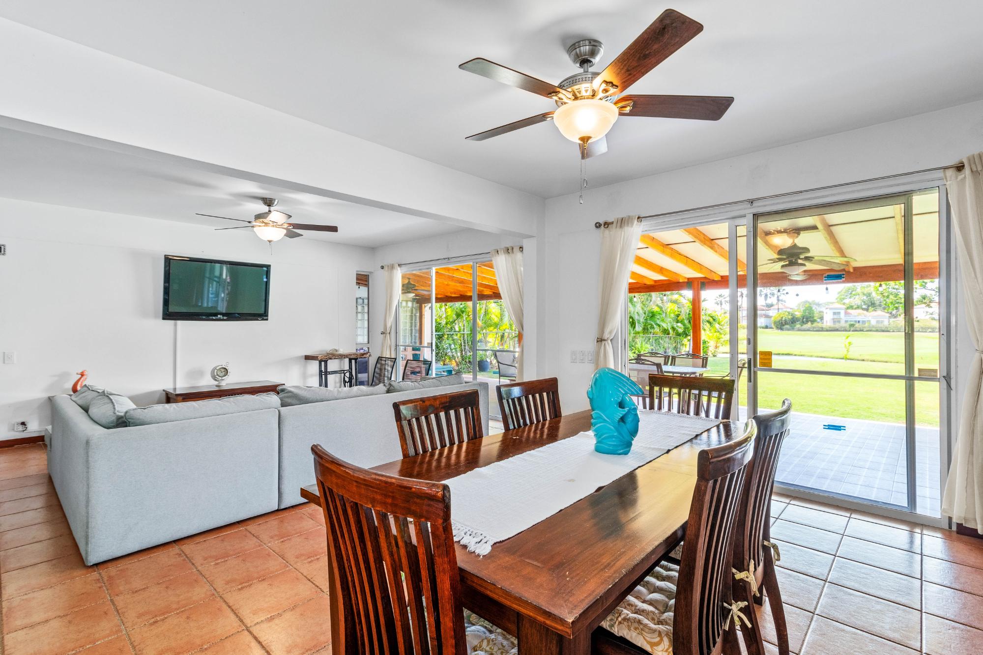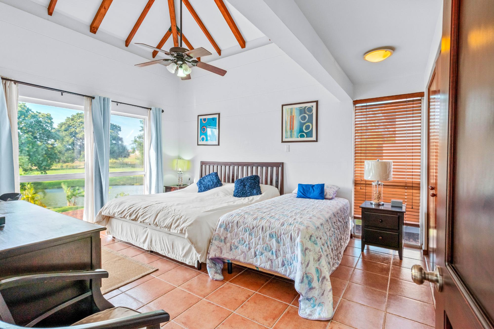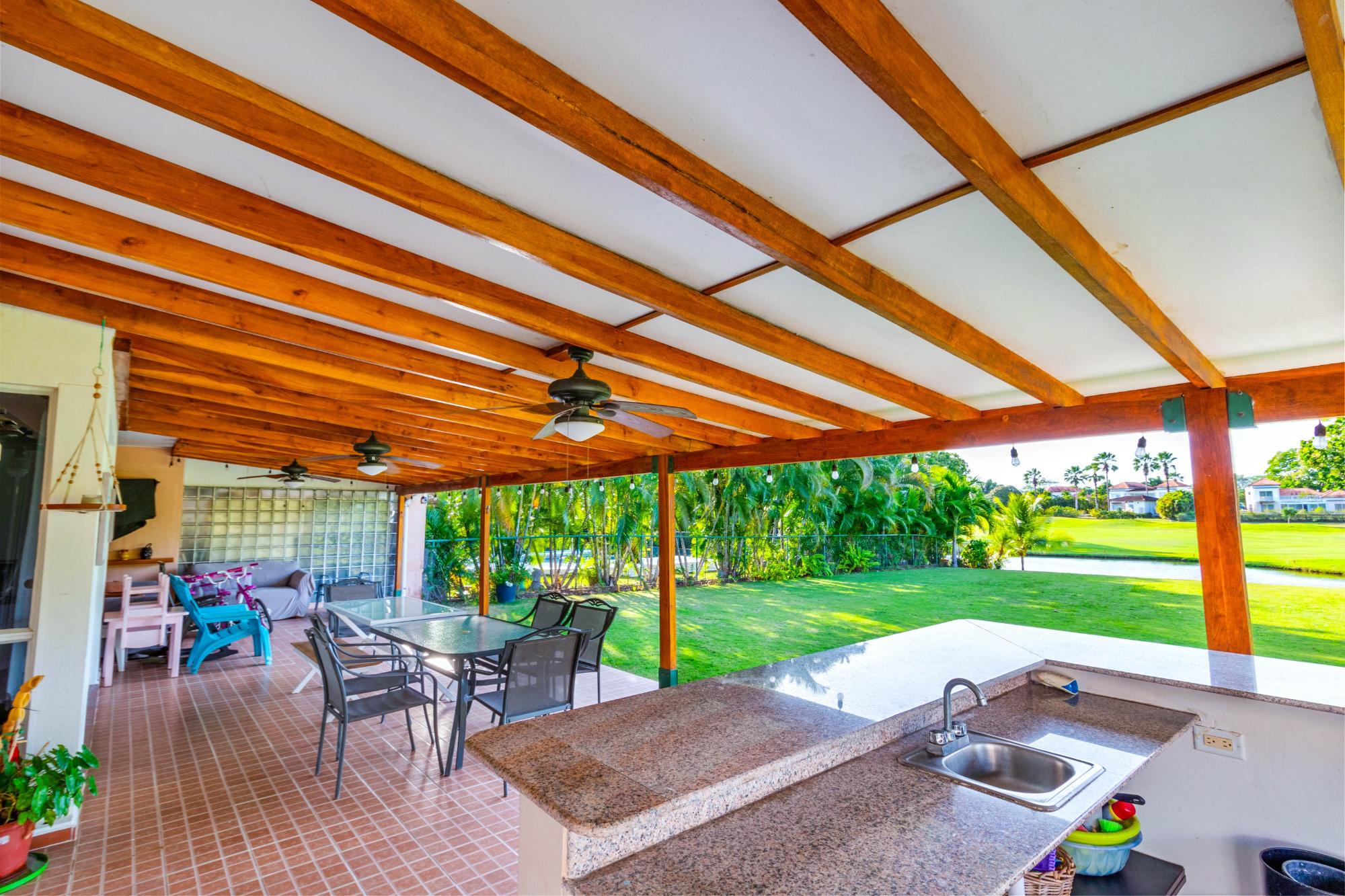 This two-story, 4-bedroom house is located at the Costa Blanca Golf & Beach Resort, within the Royal Decameron Resort in Rio Hato, Panama. Priced competitively, it offers exceptional views of the golf course and a private beach club. The house spans 232 m² (2,500 sqft) on a 665 m² (7,160 sqft) lot, with a spacious design perfect for large families or those looking for rental potential due to its lock-off design. Key features: - 4 bedrooms, 4.5 bathrooms - Master bedroom with king-size bed, balcony, and ensuite - Fully furnished, with new air conditioning and ceiling fans in every room - Open-plan kitchen with modern appliances - Large covered terrace with BBQ and bar, overlooking the golf course and lakes - Private entrance and 24-hour security - Extended carport and additional parking - HOA includes 3 golf memberships, beach club access, water, propane, and 24/7 security The property is situated in a peaceful area with only one neighbor and is minutes away from the beach club. It's part of the larger Decameron resort, offering access to golf, swimming, and dining. The house also comes with an opportunity for expansion, as all necessary infrastructure for a future pool is already in place. Ownership is through a dedicated corporation, with current tax exemptions until 2028, after which taxes will be approximately $900 annually. Ideal for those seeking a serene, well-equipped home with access to both nature and resort amenities.