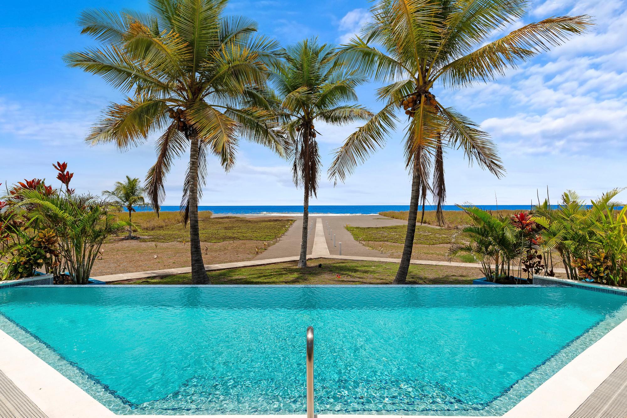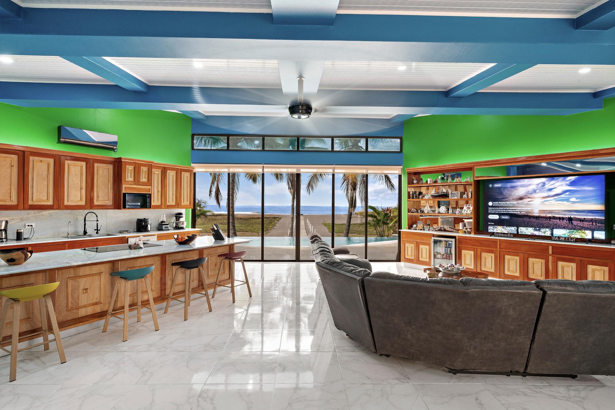 Experience luxury coastal living in this stunning contemporary beachfront home located in the exclusive gated community of The Villas at Playa Barqueta. Just 35 minutes from David on a newly paved road, this exceptional property offers privacy, security, and breathtaking oceanfront views. This residence sits on a spacious lot and features 4 bedrooms and 4.5 bathrooms. Designed with an open-concept layout, the home showcases floor-to-ceiling, wall-to-wall reflective privacy glass doors, allowing for uninterrupted views of the Pacific Ocean from every room while maintaining comfort and seclusion. The gourmet kitchen is a chef’s dream, equipped with top-of-the-line appliances including: •Double ovens •Electric range •Dishwasher •Microwave •Ice maker •Multiple refrigerators and freezers High-end finishes are found throughout, including elegant marble tile flooring and custom teak and mahogany cabinetry. Step outside to your private 5-foot-deep infinity pool, perfectly positioned to take in the sweeping views of Playa Barqueta and the Pacific horizon—ideal for entertaining or relaxing in total tranquility. Additional features include: •Sold fully furnished •Alarm and security system •Automatic propane Generac generator •PVC ceiling •Large pantry •Newly constructed (only 3 years old) Conveniently located near the airport, shopping, and essential services, this home offers the perfect blend of luxury, comfort, and accessibility. A rare opportunity to own a one-of-a-kind beachfront retreat in one of Chiriquí’s most desirable coastal communities.