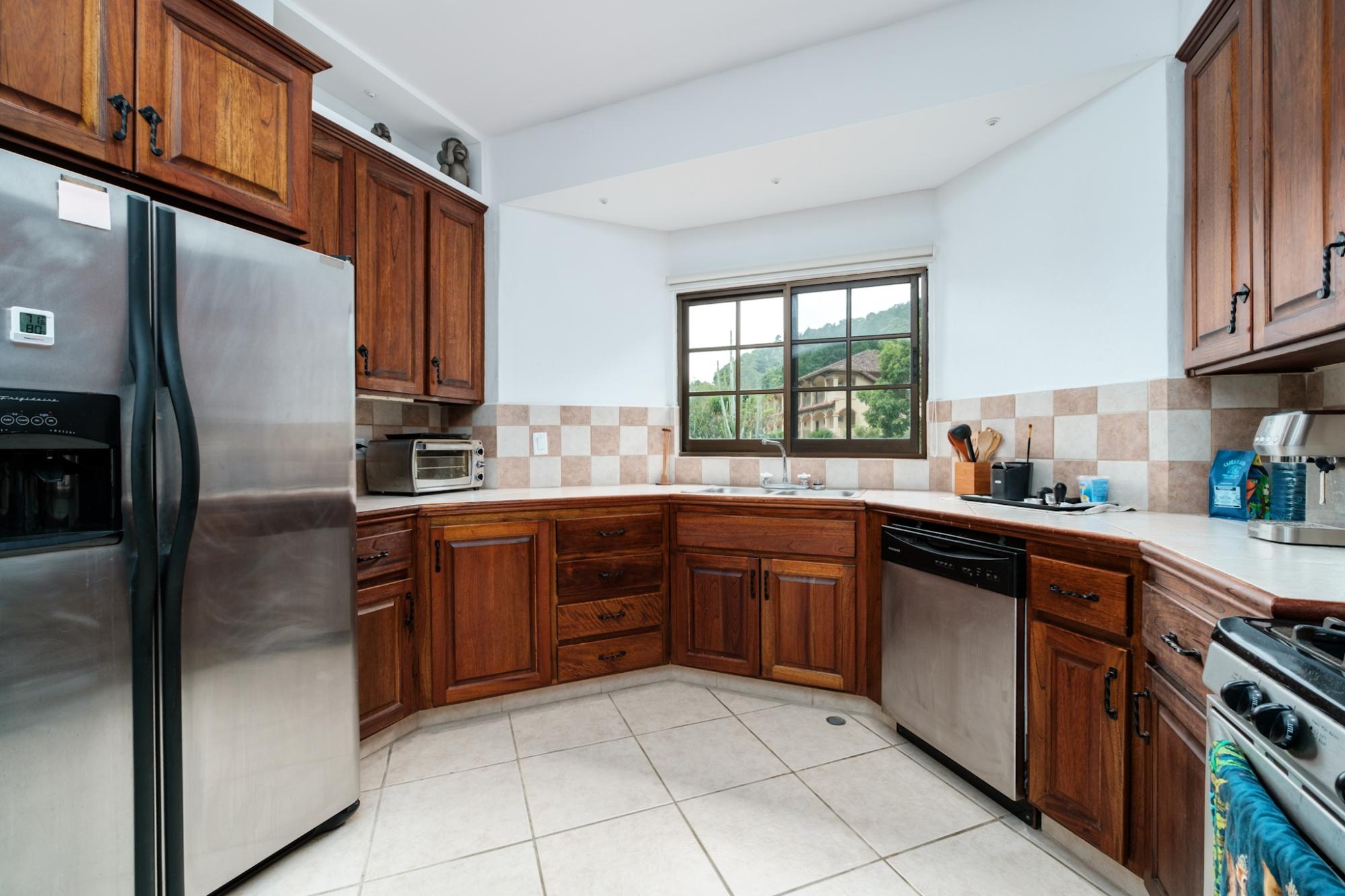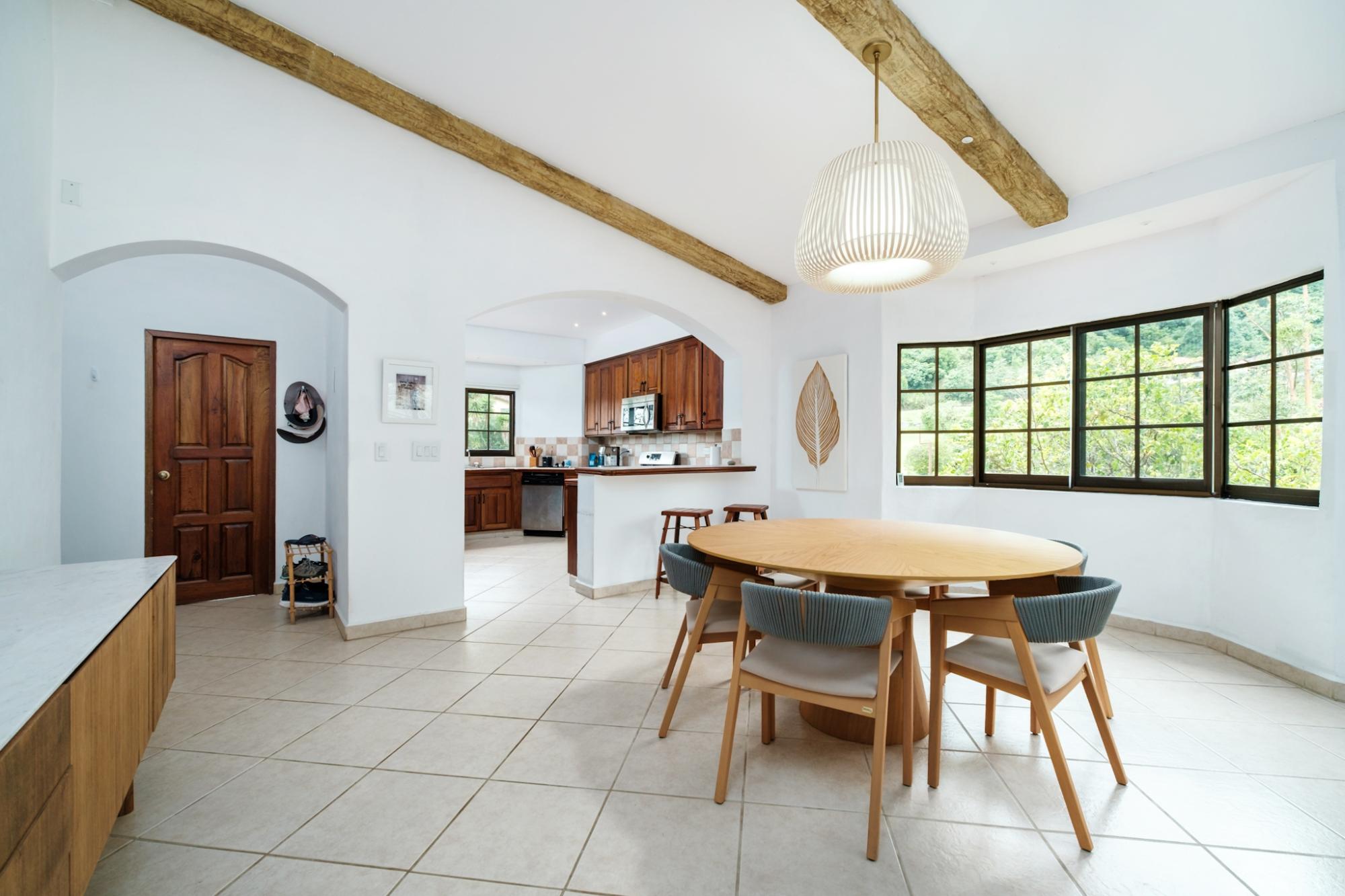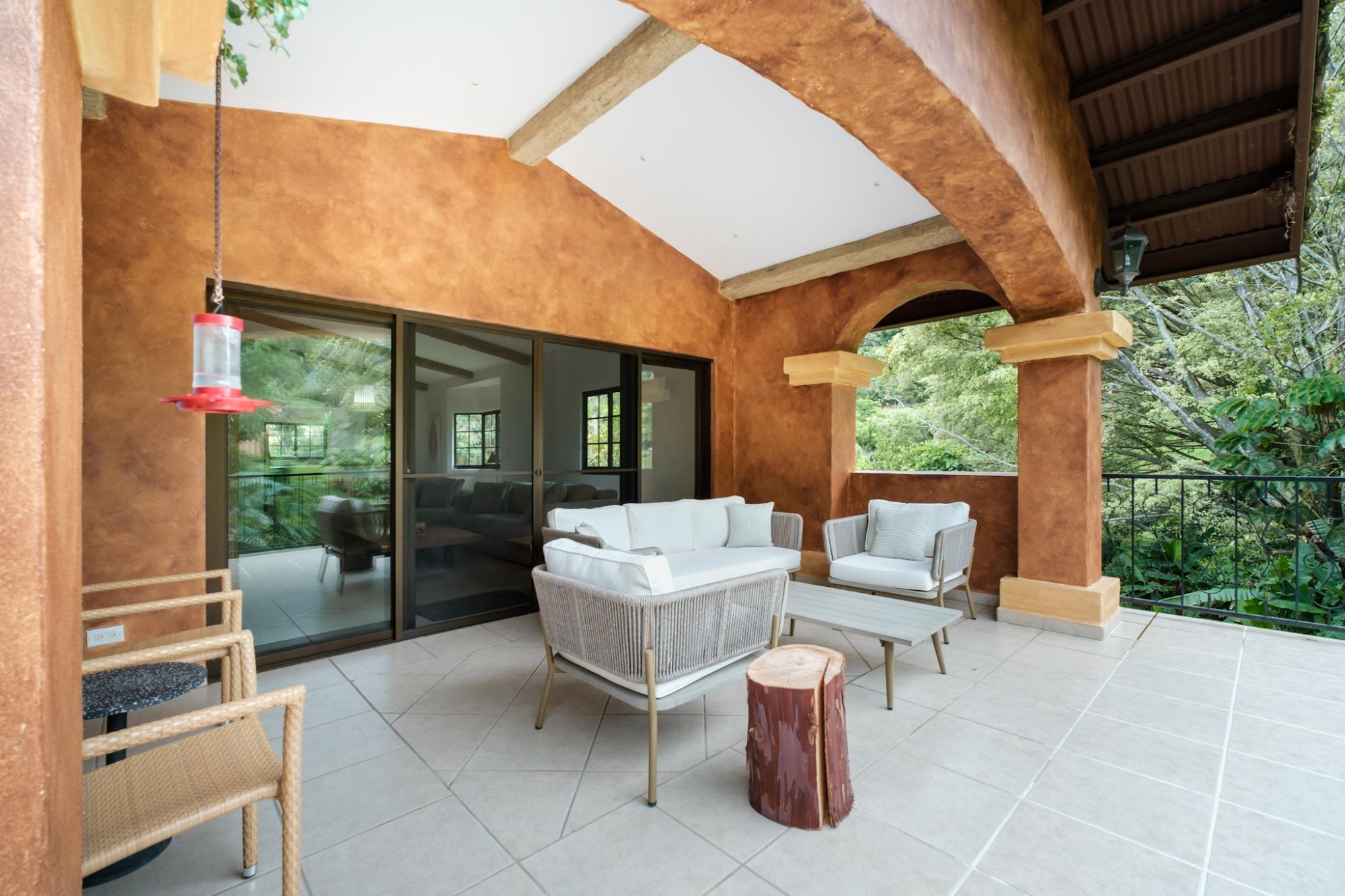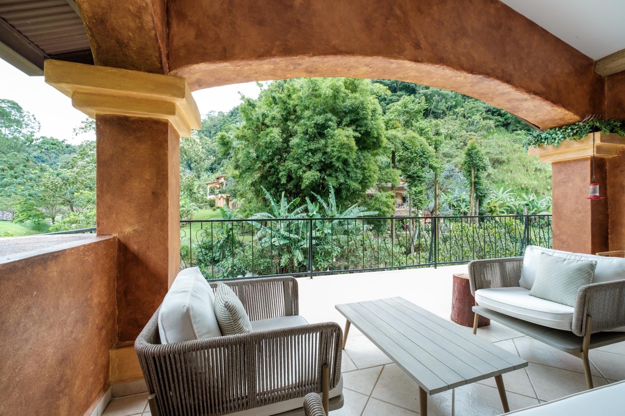 Located in Boquete’s premier gated community of Valle Escondido, this beautiful upper-level 2-bedroom, 2-bath condo offers stunning views and the peaceful sound of the river below. With soaring beamed ceilings and large windows, the fully furnished unit is filled with natural light. The spacious kitchen features ample storage, generous counter space, and a breakfast bar that opens to a large dining area—perfect for entertaining. The primary suite is oversized with an ensuite bath, while the guest bedroom includes a built-in wardrobe and easy access to the second bathroom. Off the living room, enjoy a covered terrace ideal for relaxing and taking in the natural surroundings. Just a short walk to downtown Boquete’s shops, restaurants, and entertainment, this condo offers the perfect blend of privacy and convenience. Immediate possession available.
