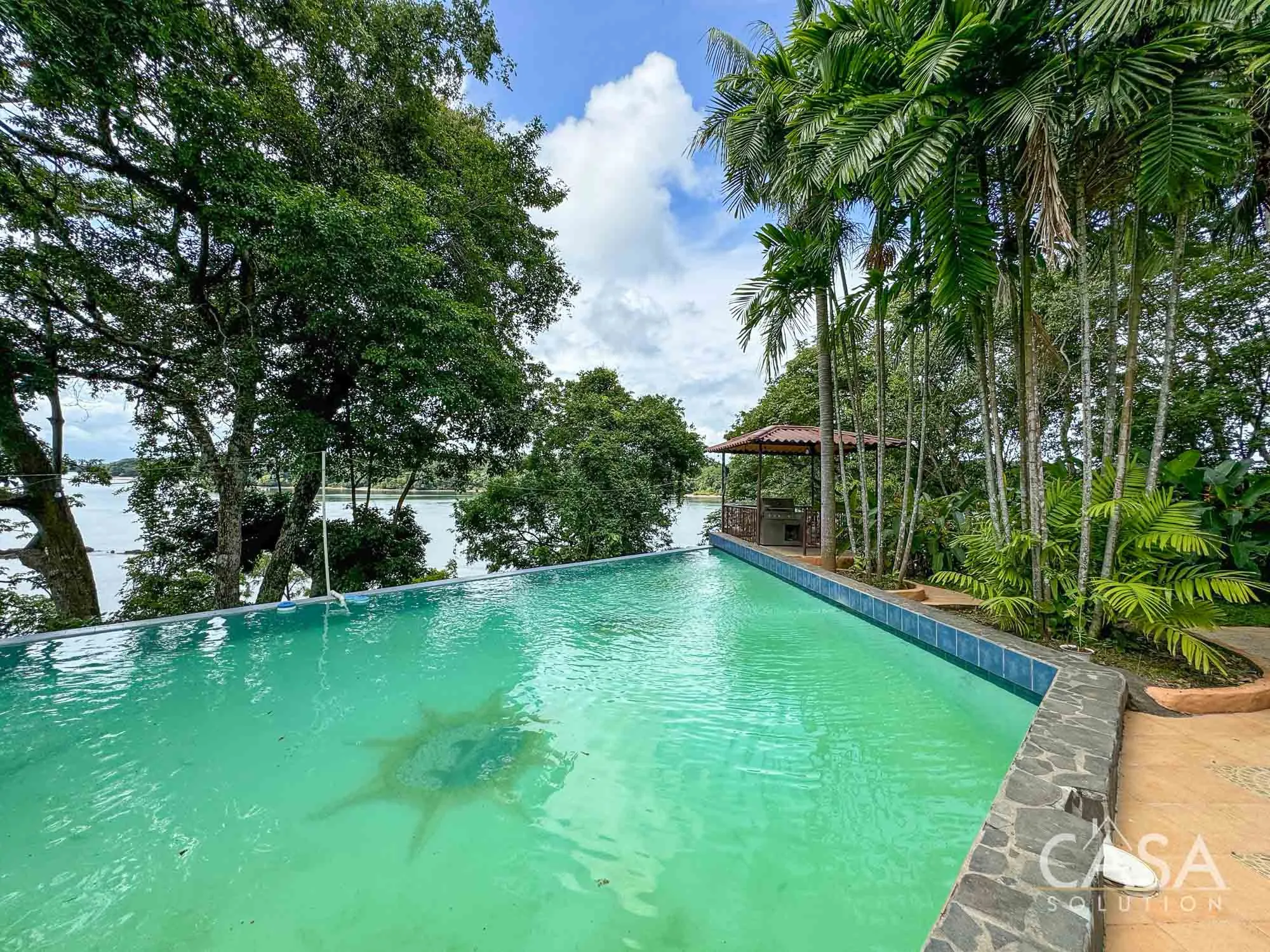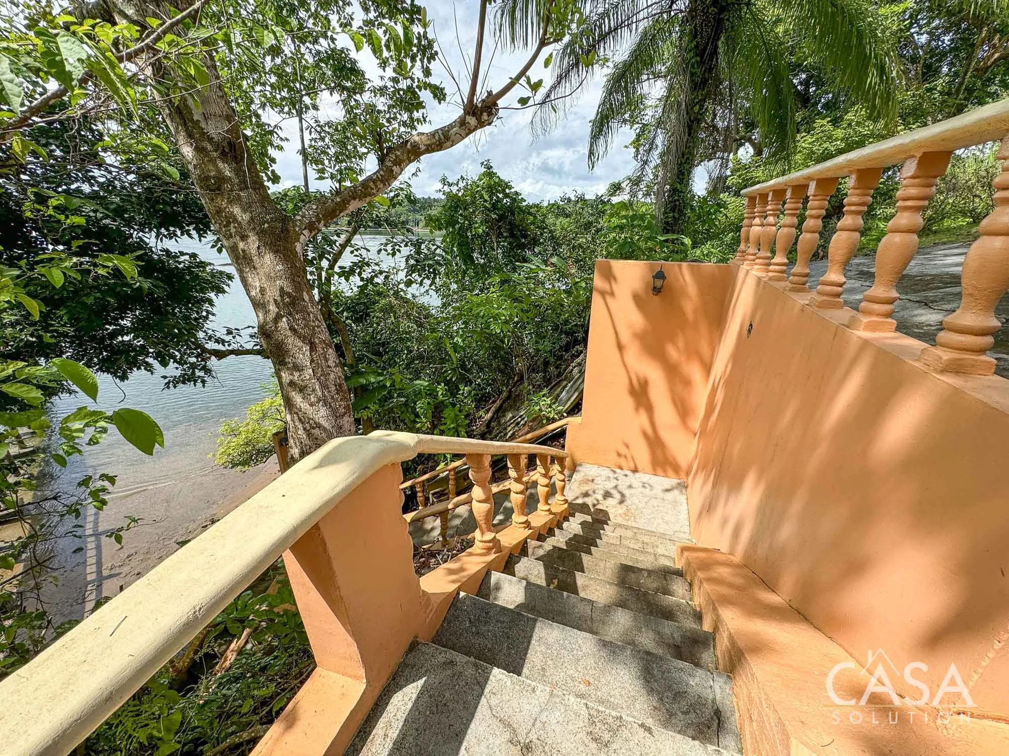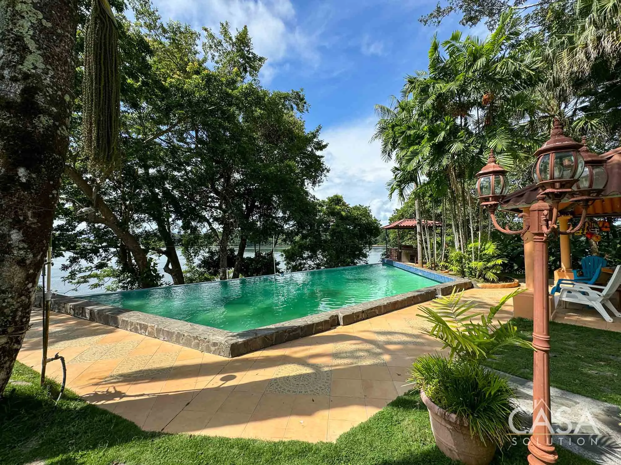 For boating enthusiasts, there is a concrete ramp for hauling boats, along with a dry storage facility, offering practical options for marine activities. All teak doors, cabinets, and custom-built teak furnishings are included, adding a touch of elegance to every room. The sale also includes a Panamanian corporation, making it easier to transition ownership and operate the property as a business.