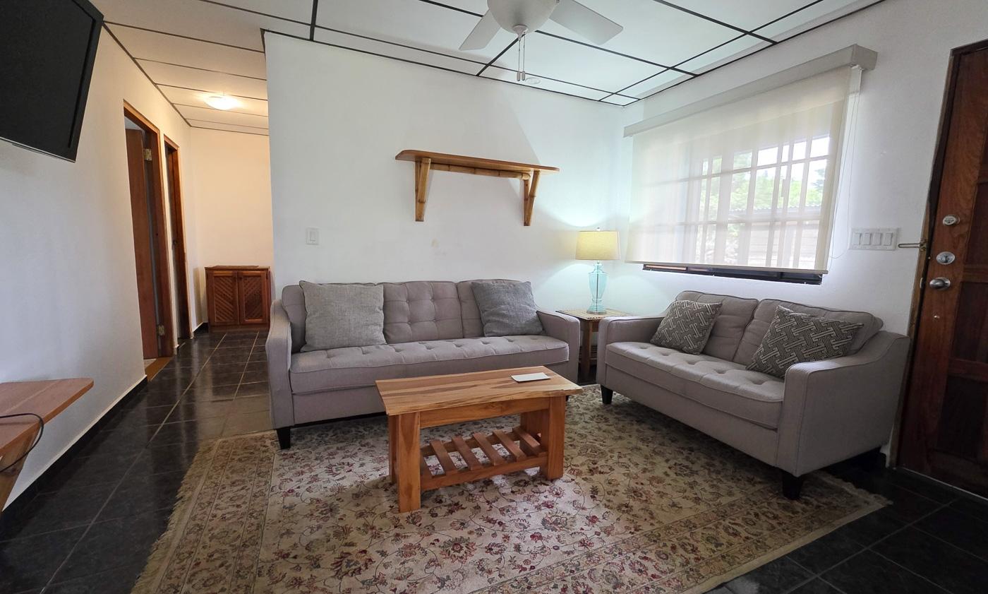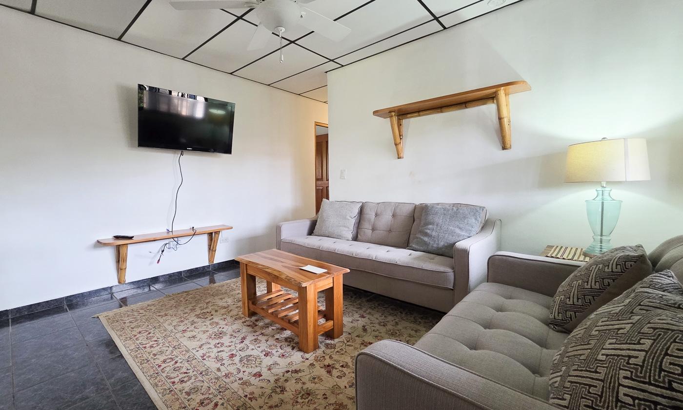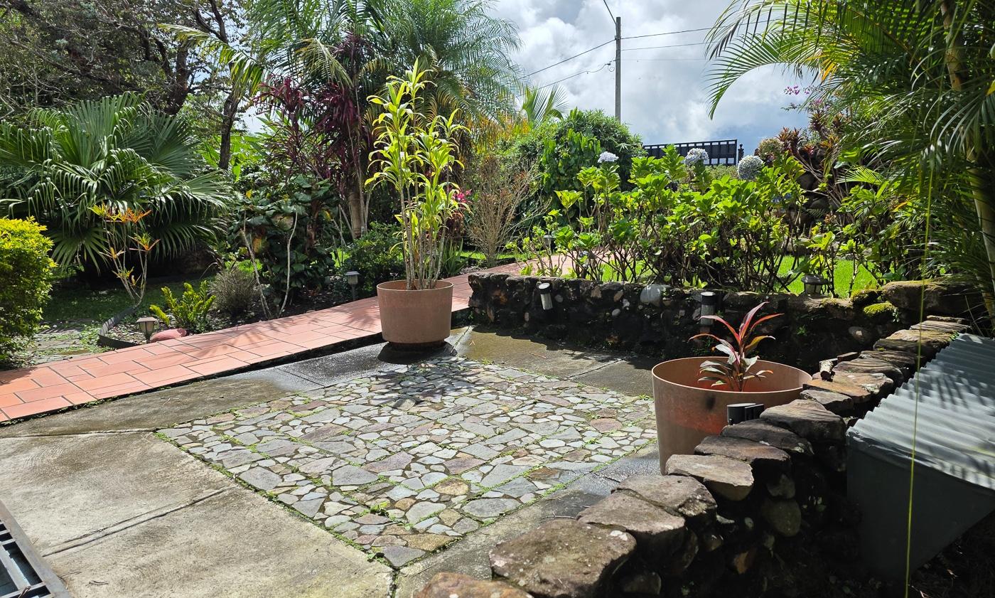 Step inside from a covered patio space into the open living, dining and kitchen area- a door through the kitchen invites you to a beautiful solarium, which begs you to linger a little longer with your coffee. The kitchen was thoughtfully designed with a pass through to the Solarium as well as a bar counter facing the living room. Down the hall you’ll find a bedroom and a bathroom, then the master bedroom and ensuite bathroom. Outside, the mature garden is a living fairytale—lush, colorful, and brimming with life. Butterflies dance through blossoms, hummingbirds hum their tiny songs, and fruit trees stretch lazily toward the sky. Just across from a quiet park, the canyon unfolds like a storybook at your doorstep. Beyond the park, the majestic Barú Volcano rises in the distance, adding to your garden view.