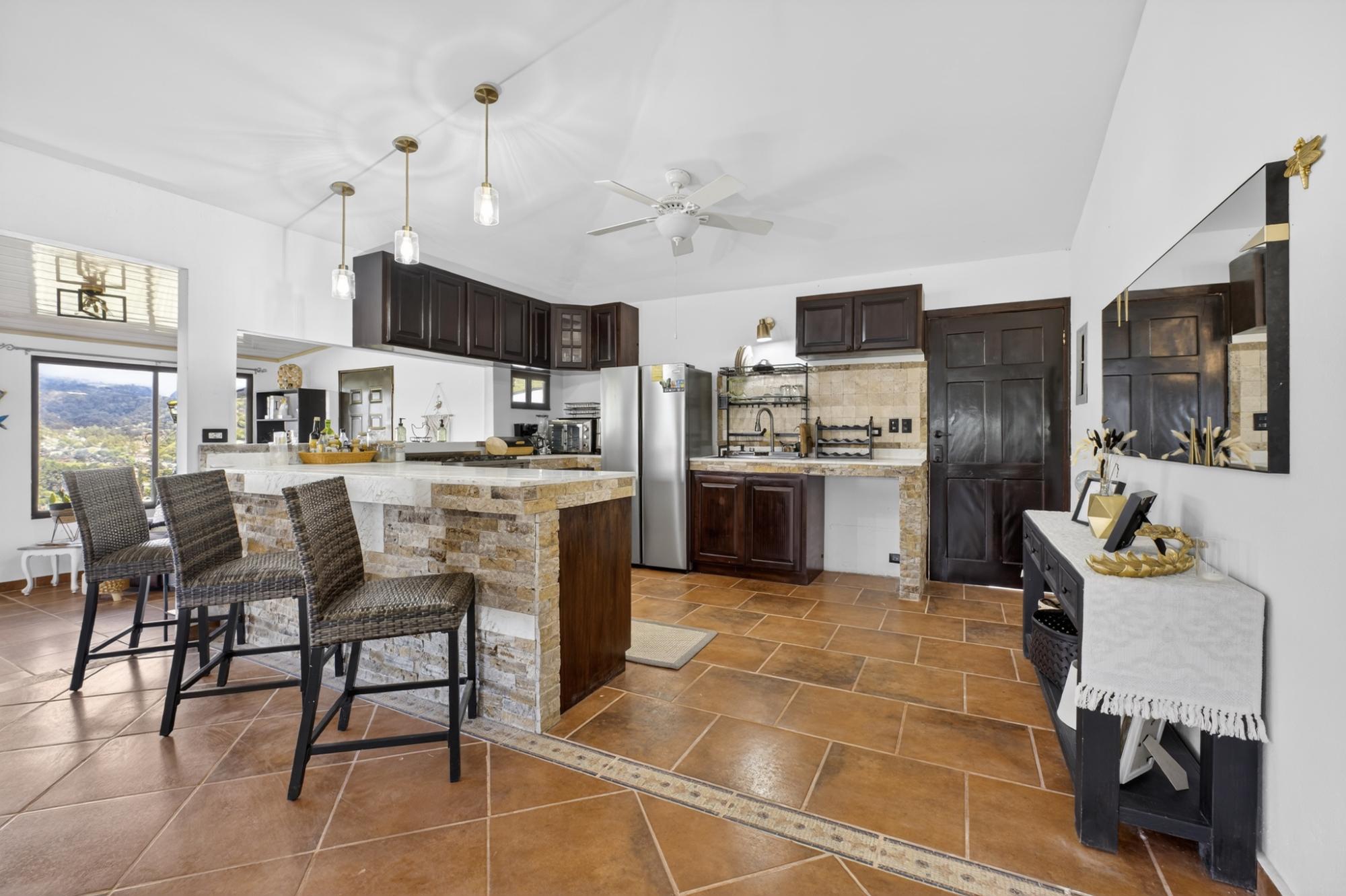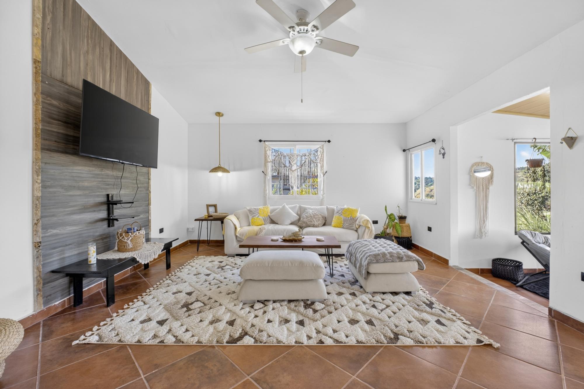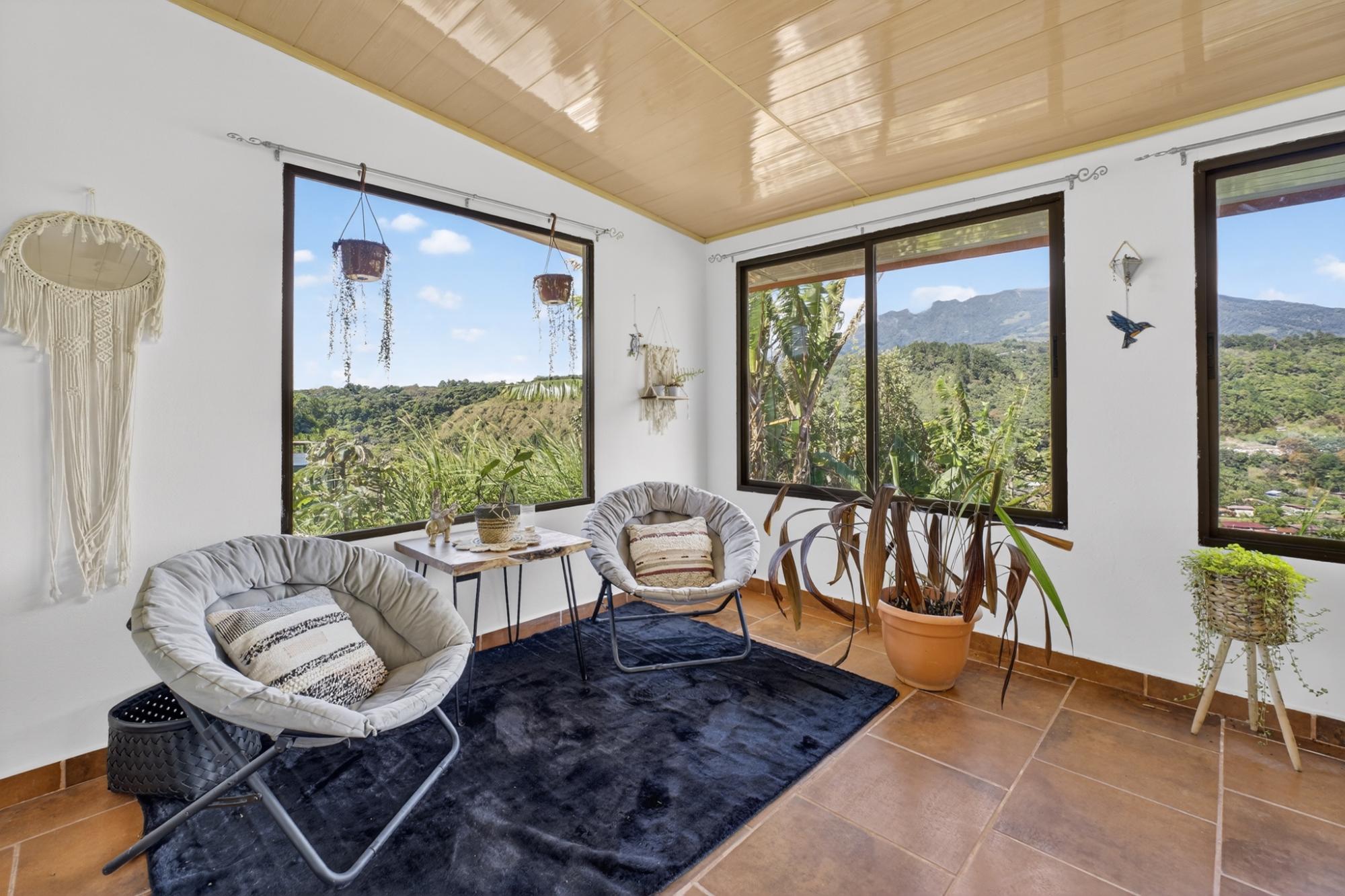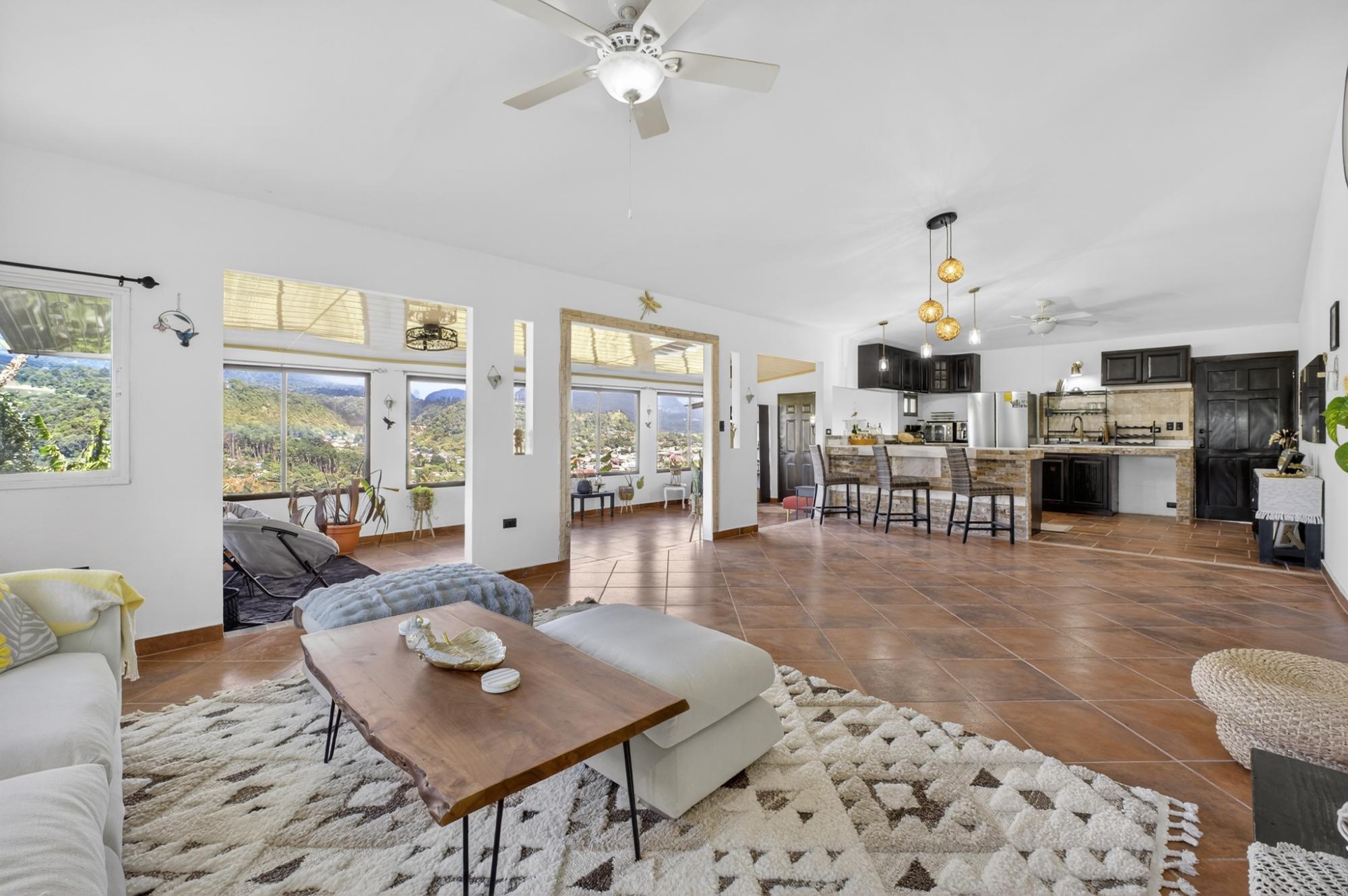 Located in the desirable hills of Jaramillo Abajo, just minutes from downtown Boquete, this refreshed mountain home offers comfort, modern styling, and a peaceful setting. Set on a 1,390 m² lot, the property enjoys privacy, elevation, and lovely natural surroundings. The open, light-filled living area features high ceilings, modern finishes, and abundant natural light. The home offers two spacious bedrooms and two modern bathrooms. Freshly painted inside and out, the home has been well maintained and presents beautifully. A covered terrace provides an inviting space for relaxing or dining while enjoying the mountain atmosphere. Well located and thoughtfully cared for, this property offers a comfortable blend of tranquility and convenience close to town, making it ideal for full-time living or a Boquete retreat.