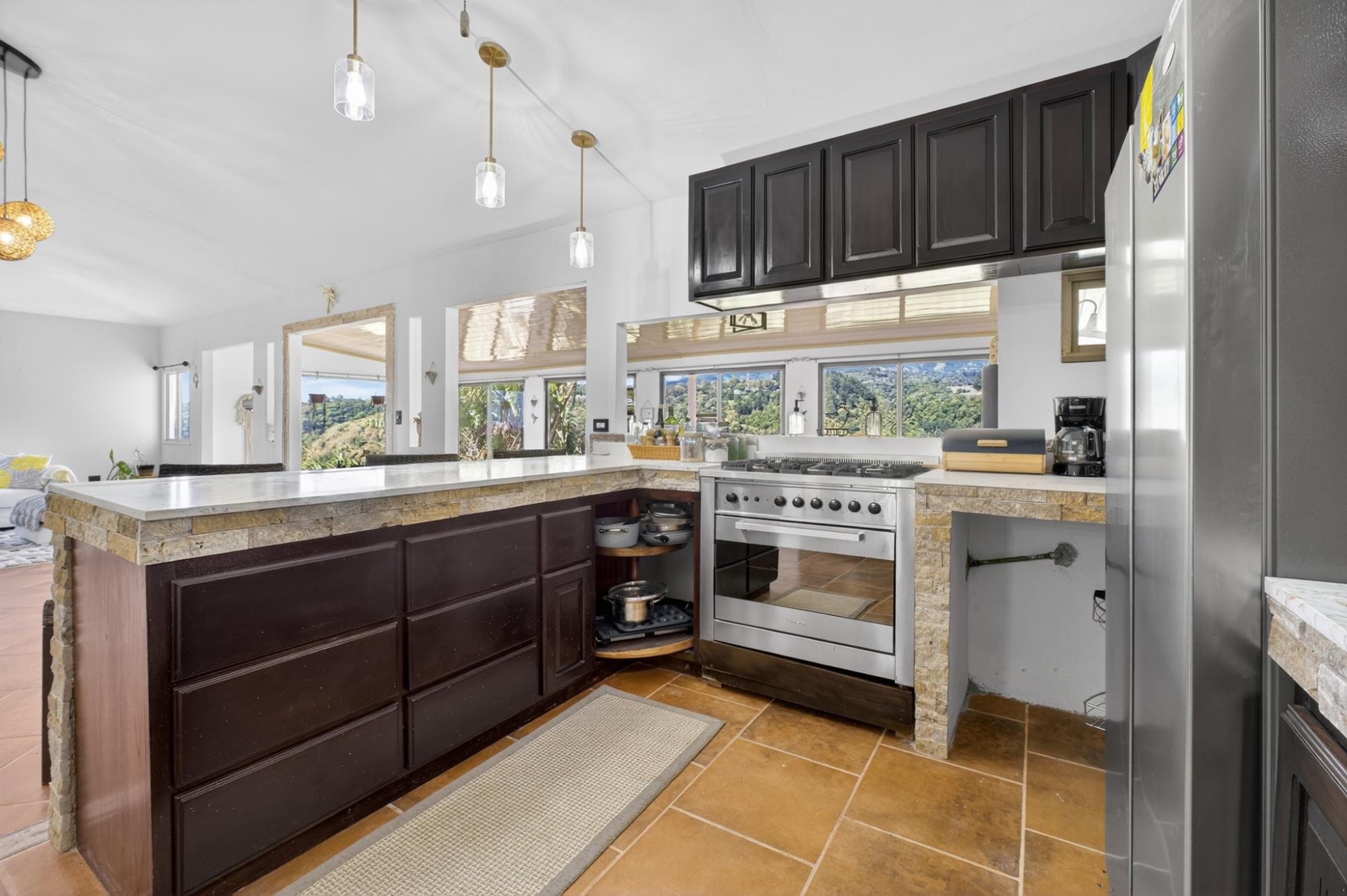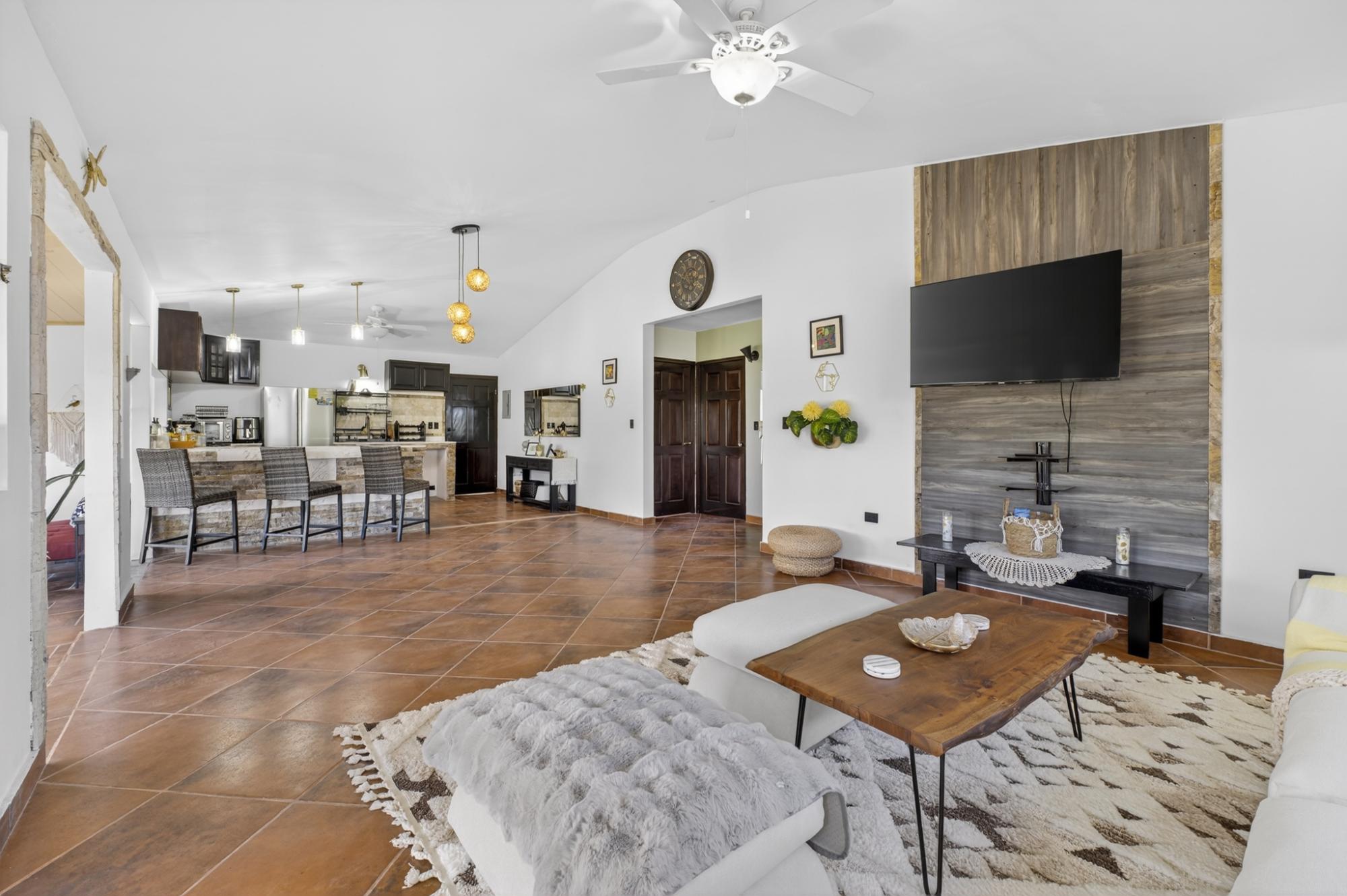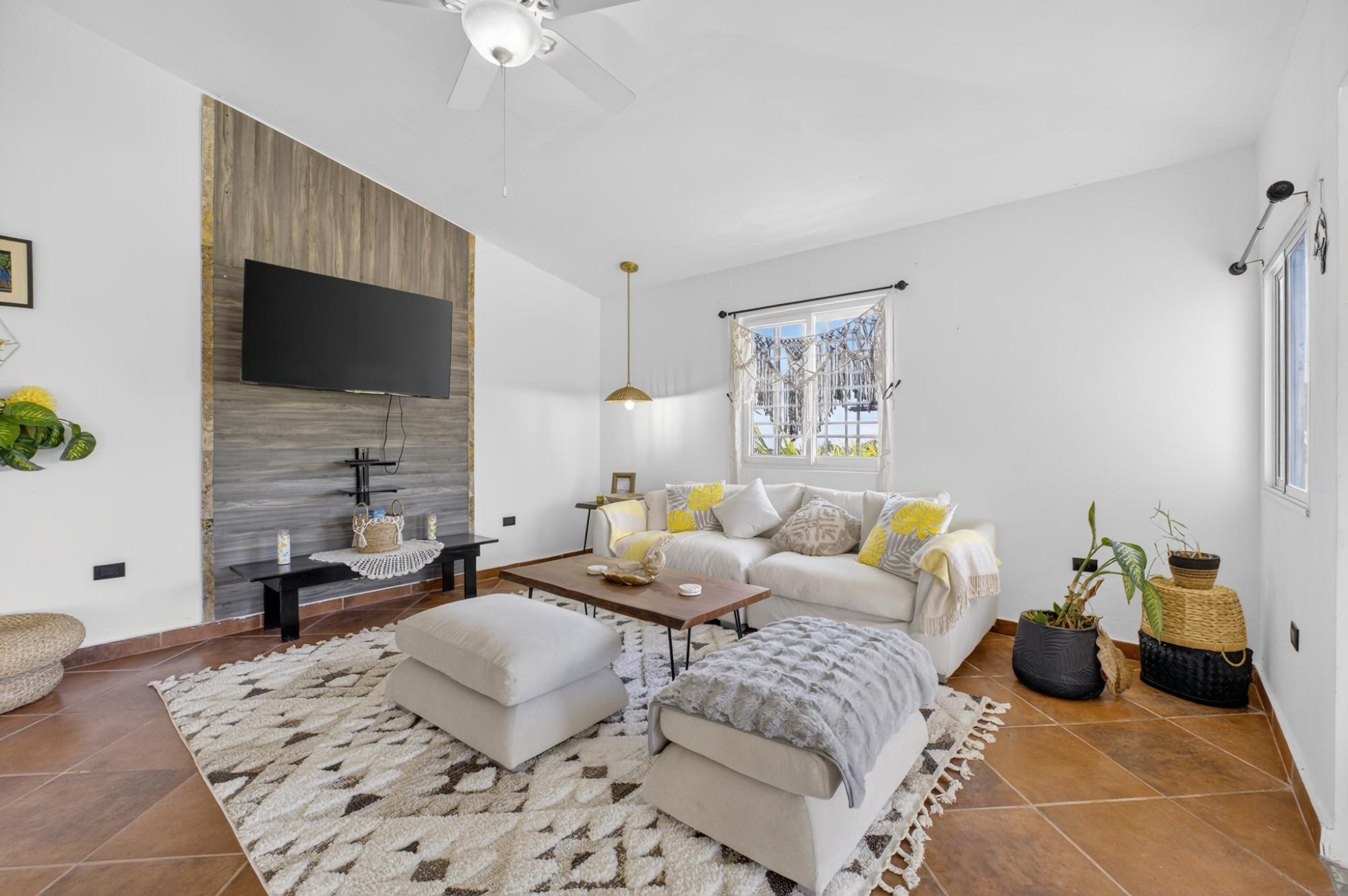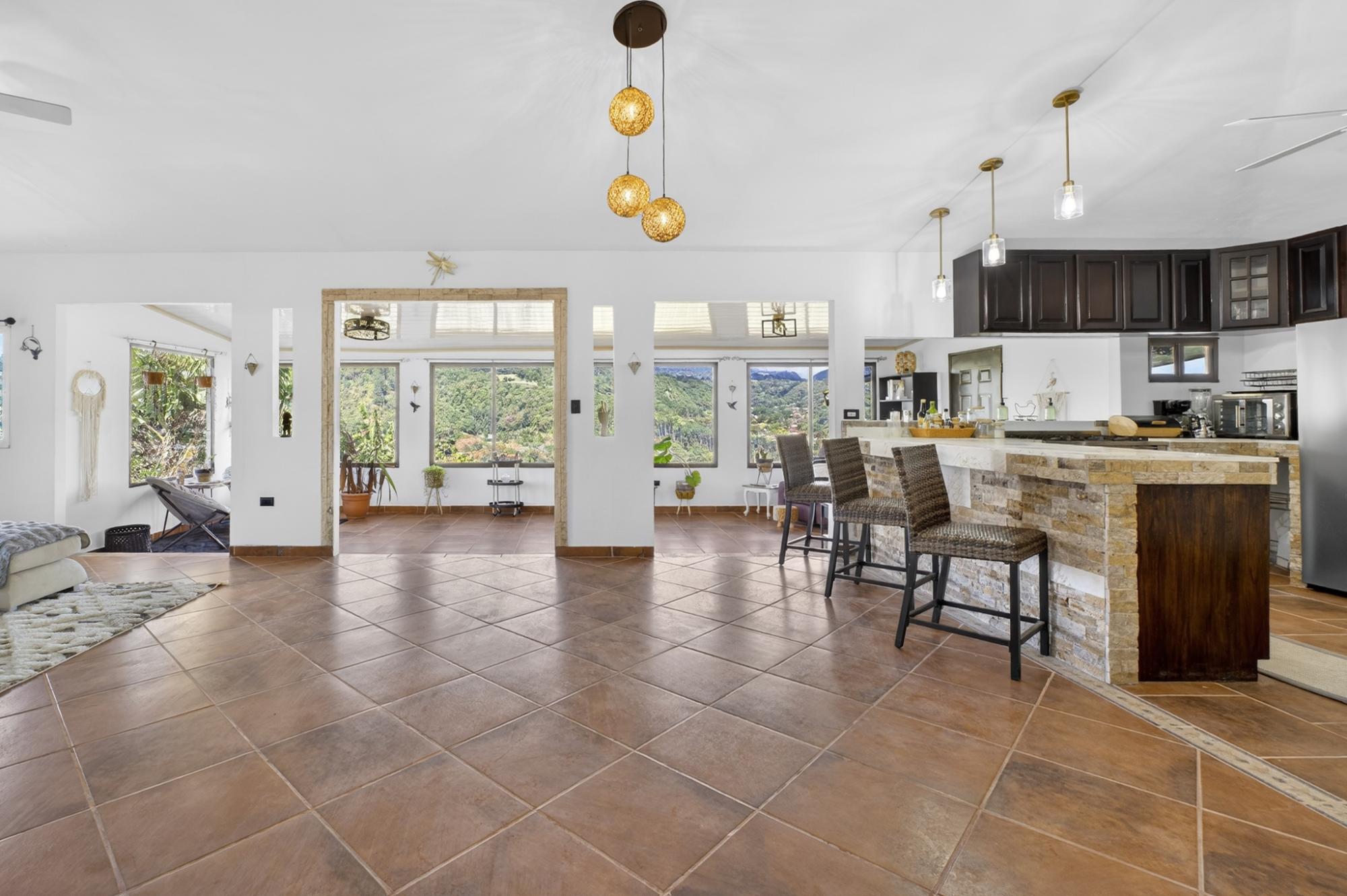 Located in the desirable hills of Jaramillo Abajo, just minutes from downtown Boquete, this refreshed mountain home offers comfort, modern styling, and a peaceful setting. Set on a 1,390 m² lot, the property enjoys privacy, elevation, and lovely natural surroundings. The open, light-filled living area features high ceilings, modern finishes, and abundant natural light. The home offers two spacious bedrooms and two modern bathrooms. Freshly painted inside and out, the home has been well maintained and presents beautifully. A covered terrace provides an inviting space for relaxing or dining while enjoying the mountain atmosphere. Well located and thoughtfully cared for, this property offers a comfortable blend of tranquility and convenience close to town, making it ideal for full-time living or a Boquete retreat.