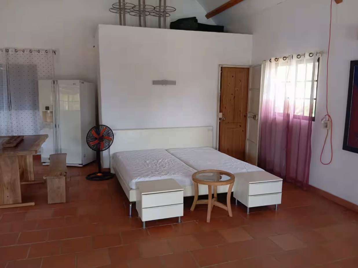The home itself is a studio-style layout with an open interior that combines sleeping, living, and kitchen areas into one straightforward space. It is not a luxury build, but rather a practical and honest structure designed for comfortable everyday living. The materials and finishes are simple and durable, making it easy to maintain over time. This makes the property especially appealing to retirees or anyone seeking a slower pace of life without unnecessary complexity.